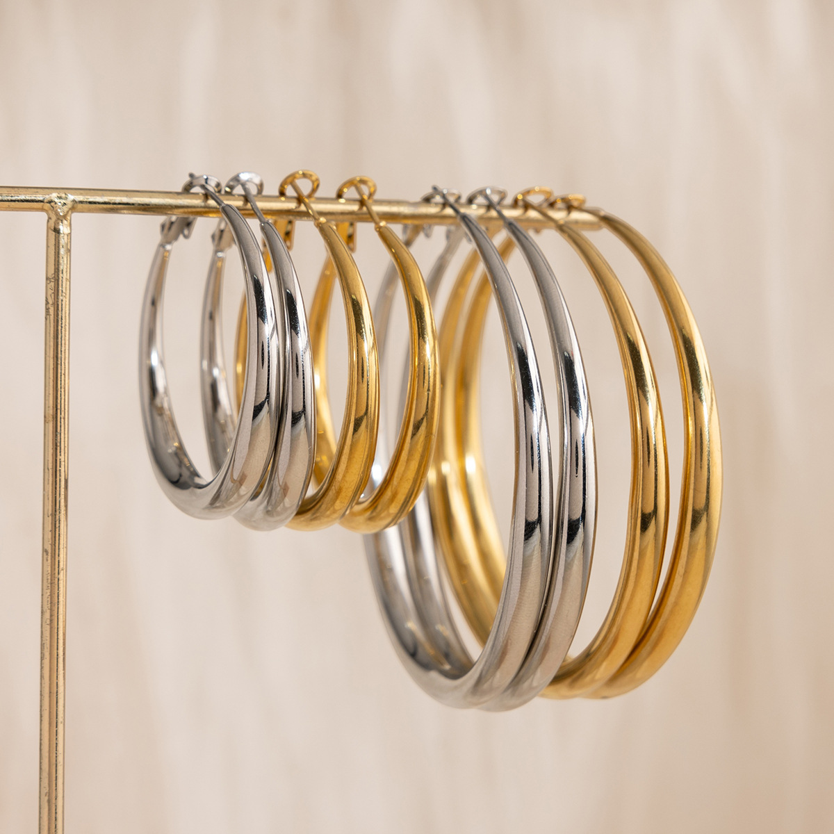 B廠 歐美款經典時尚圈鈦鋼鍍18K金耳環批發 折扣@洽客服 26.03.W2「JDE0305019-S-40 」