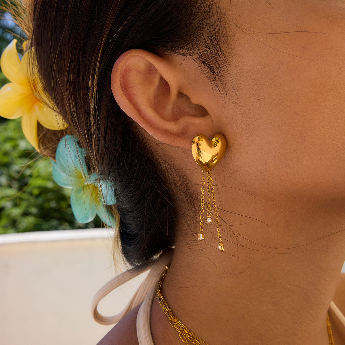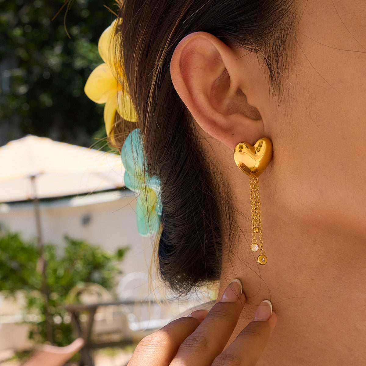 B廠 歐美款 JUANAI 愛心流蘇鈦鋼鍍18K金耳環 批發 折扣@洽客服 25.09.W4「JDE0305083」