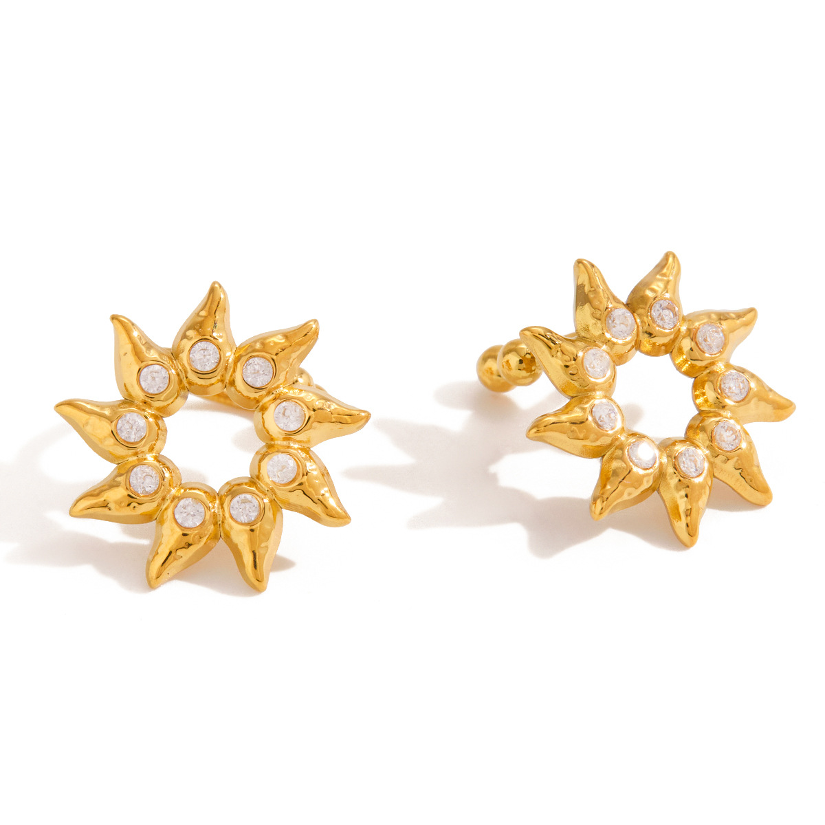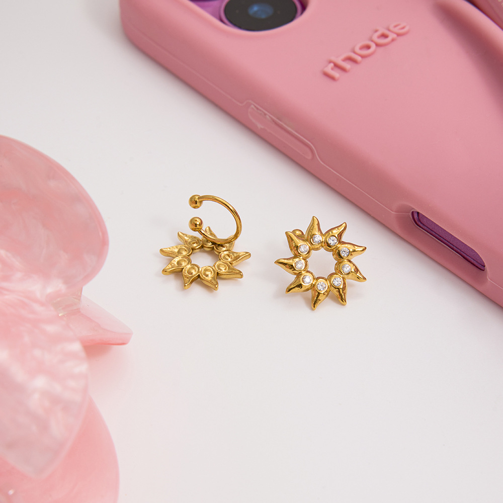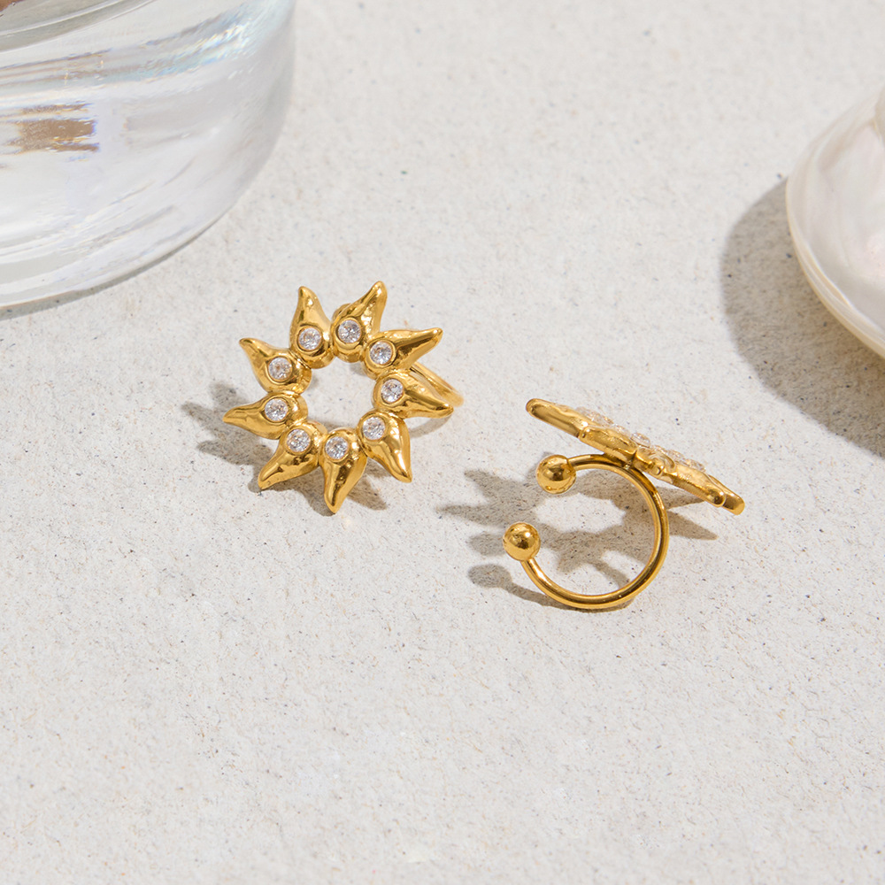 B廠 歐美款 水鑽太陽耳夾 鈦鋼鍍18K金耳環 批發 折扣@洽客服 25.10.W5「JDE0306052」