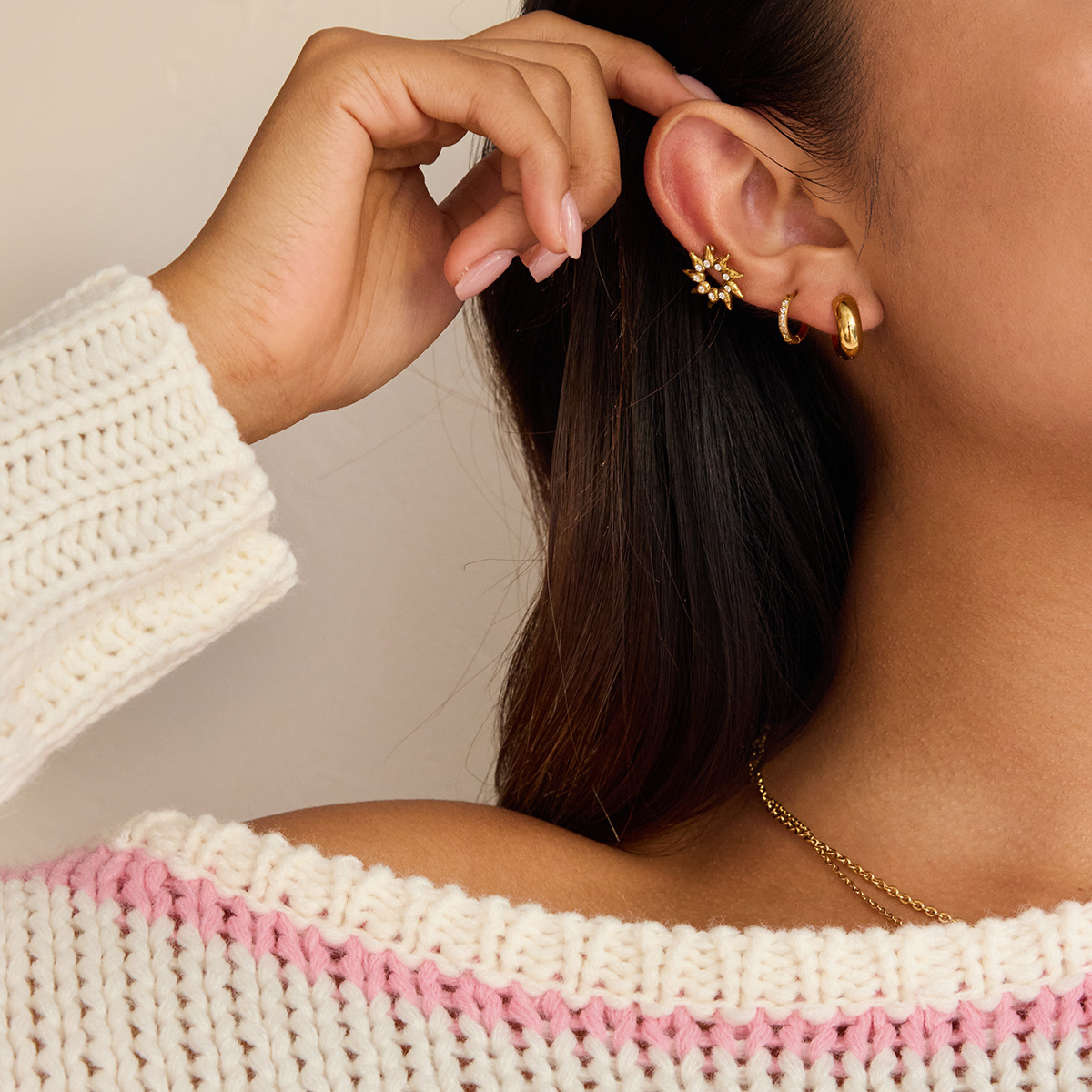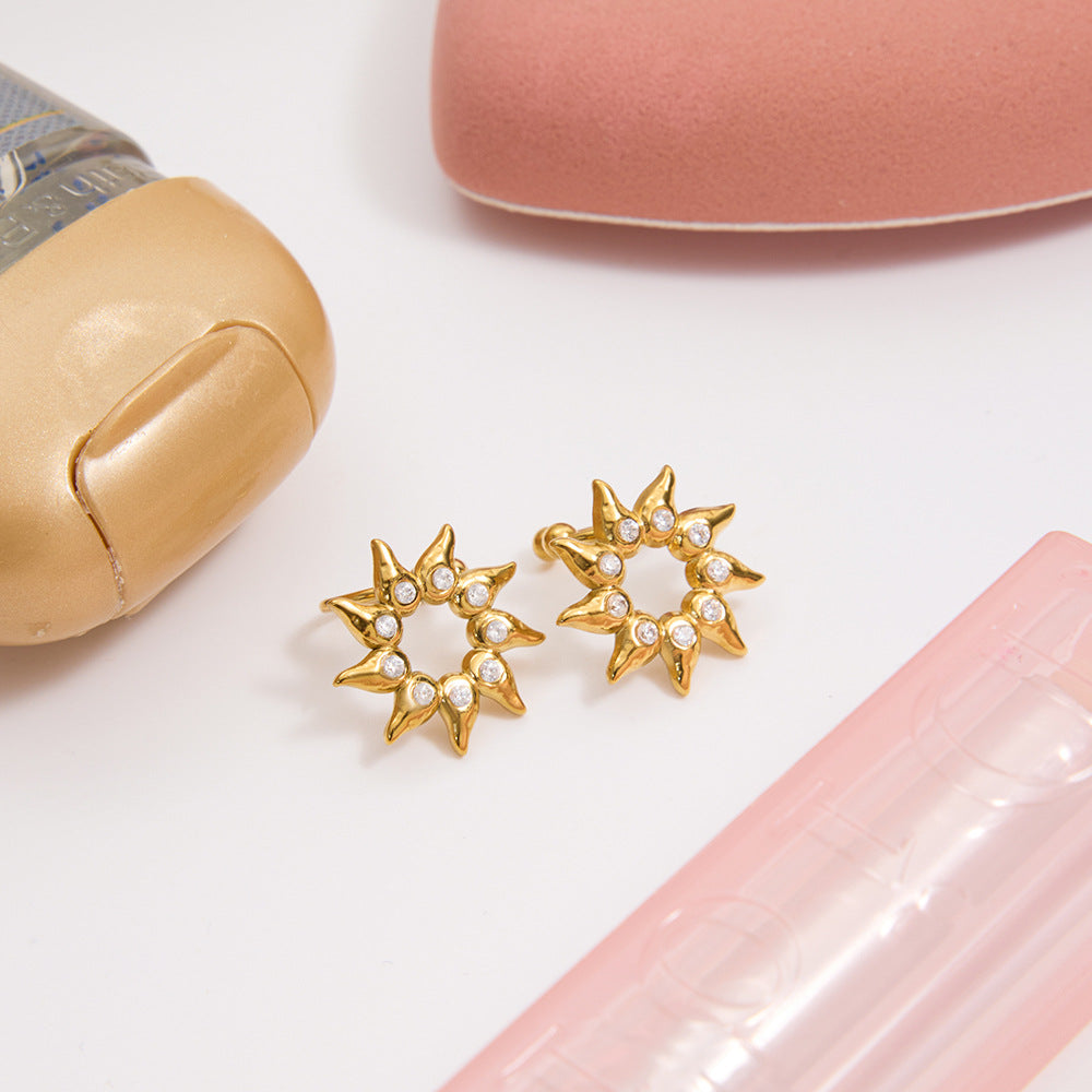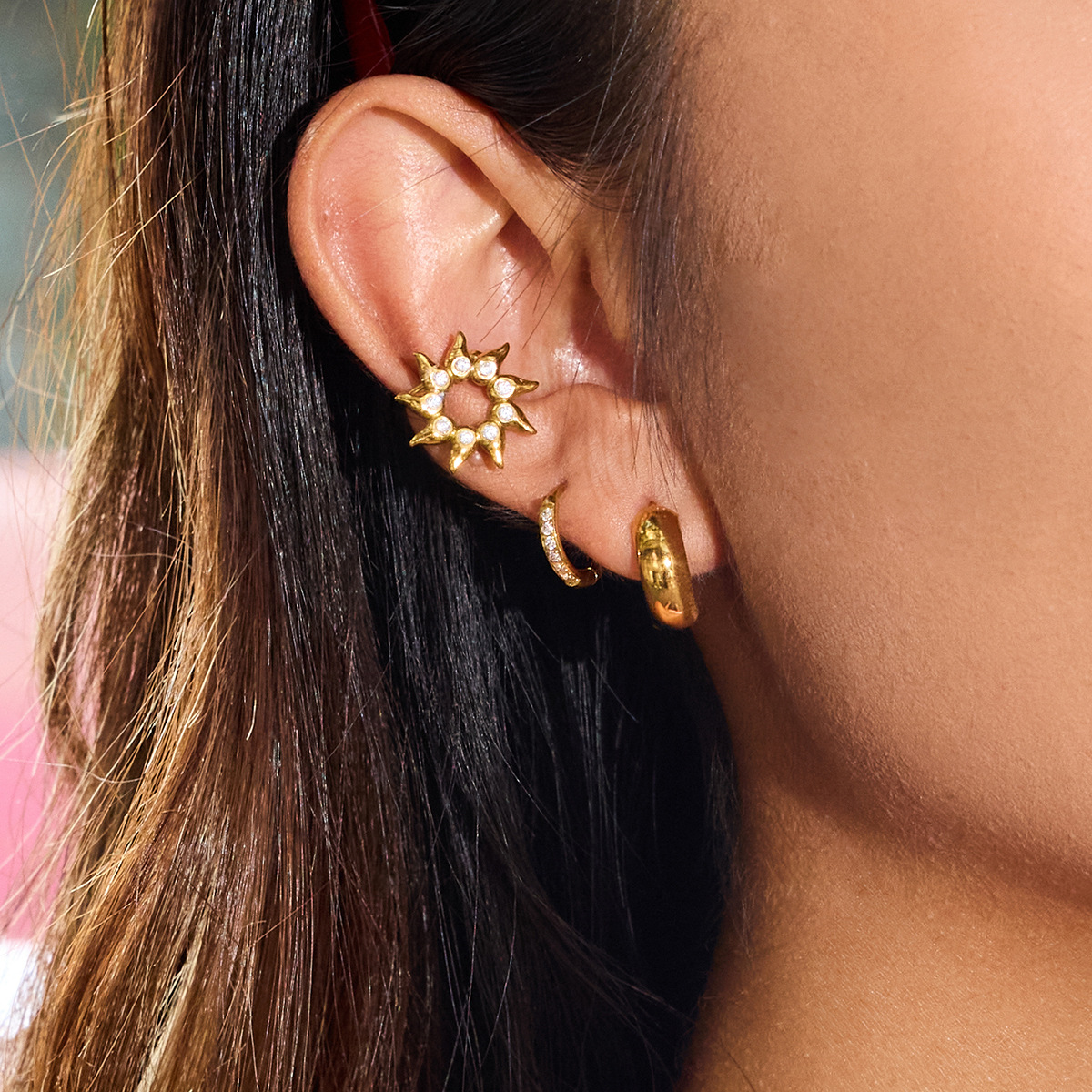 B廠 歐美款 水鑽太陽耳夾 鈦鋼鍍18K金耳環 批發 折扣@洽客服 25.10.W5「JDE0306052」