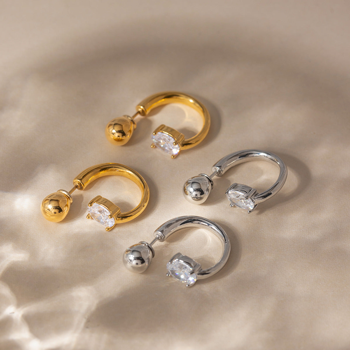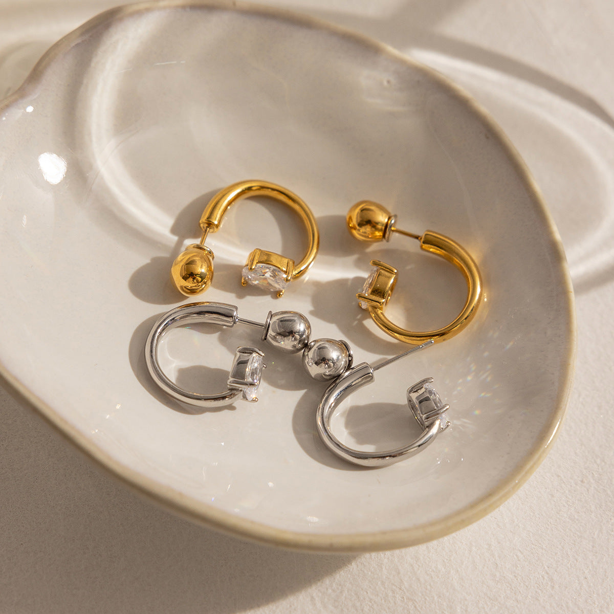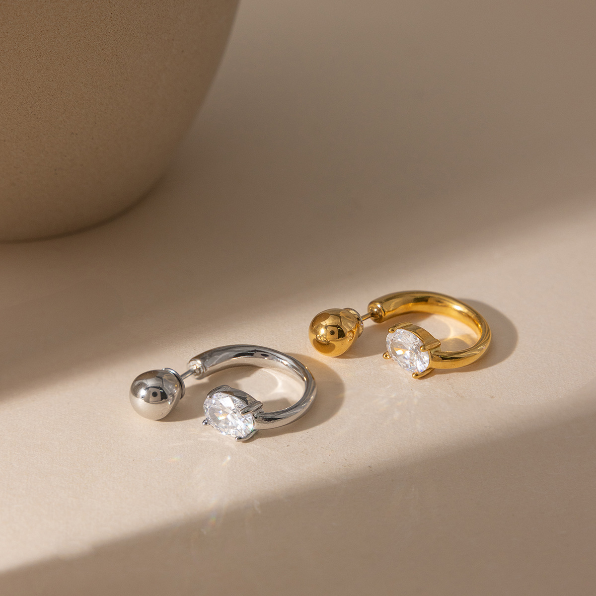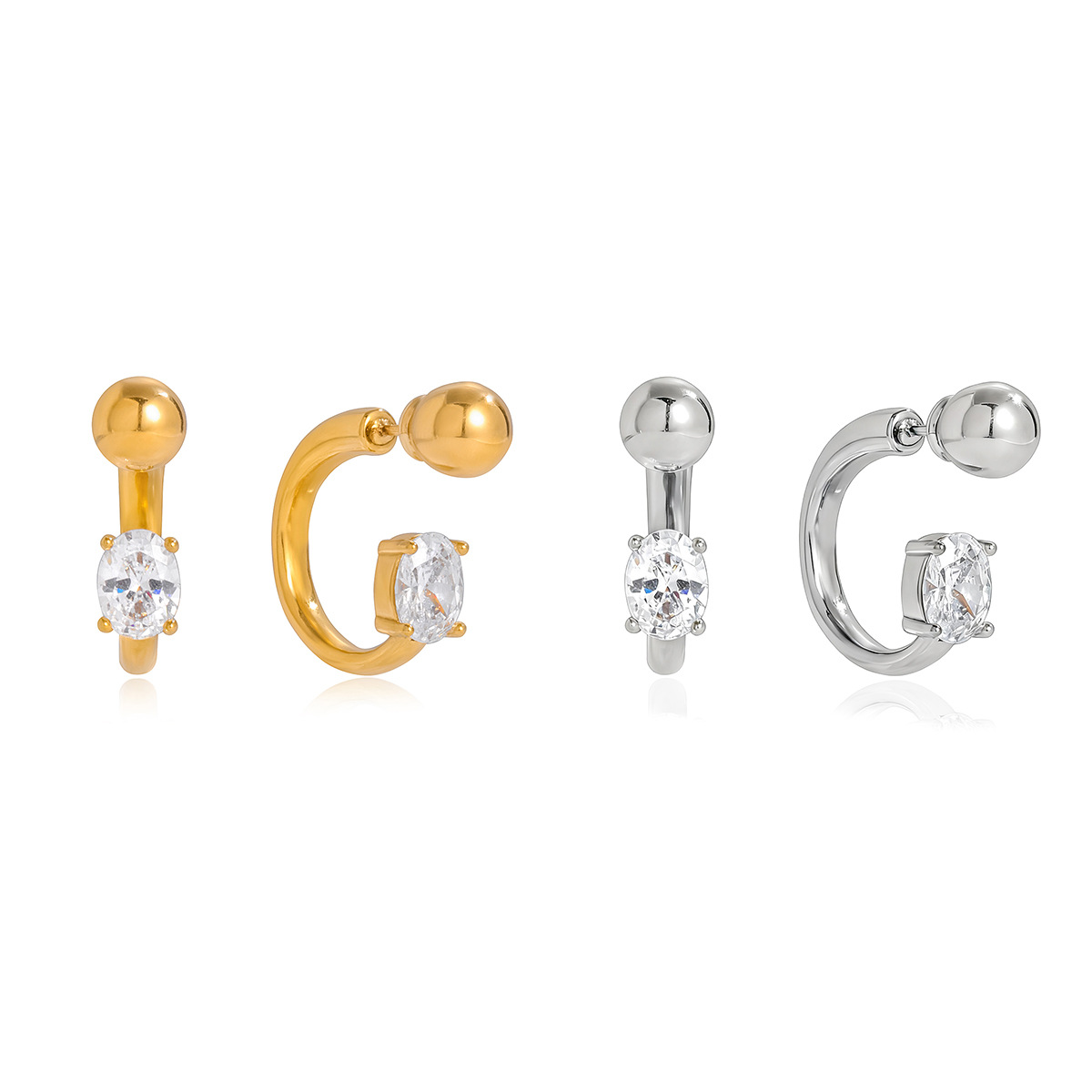 B廠 歐美款 白色鋯石C圈鈦鋼鍍18K金耳環 批發 折扣@洽客服 26.03.W1「JDE0307046」