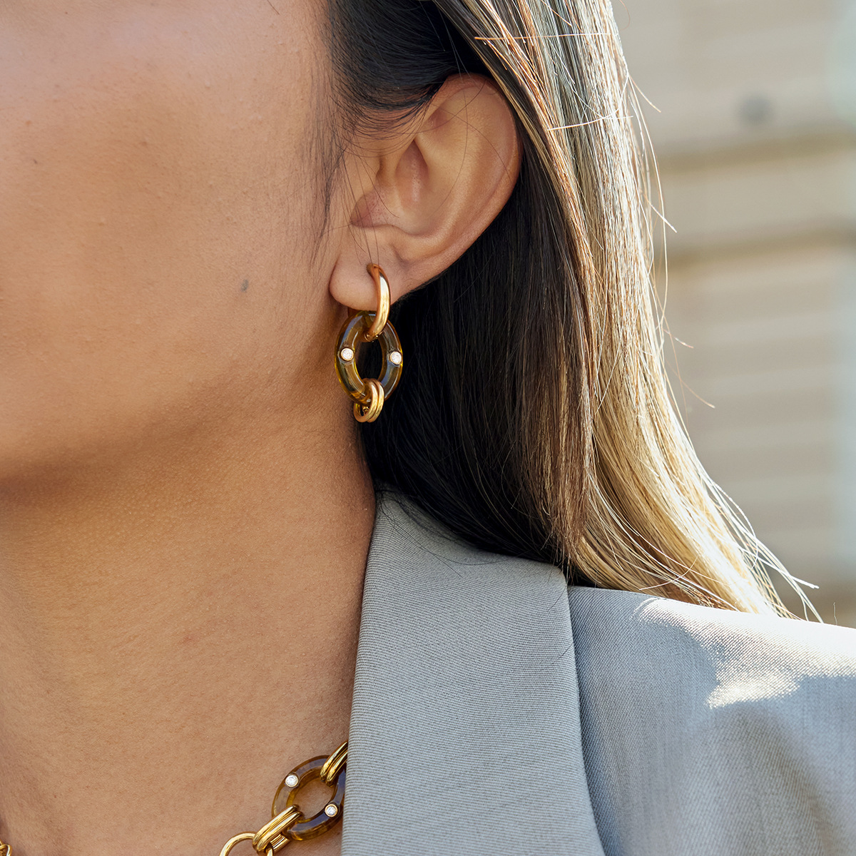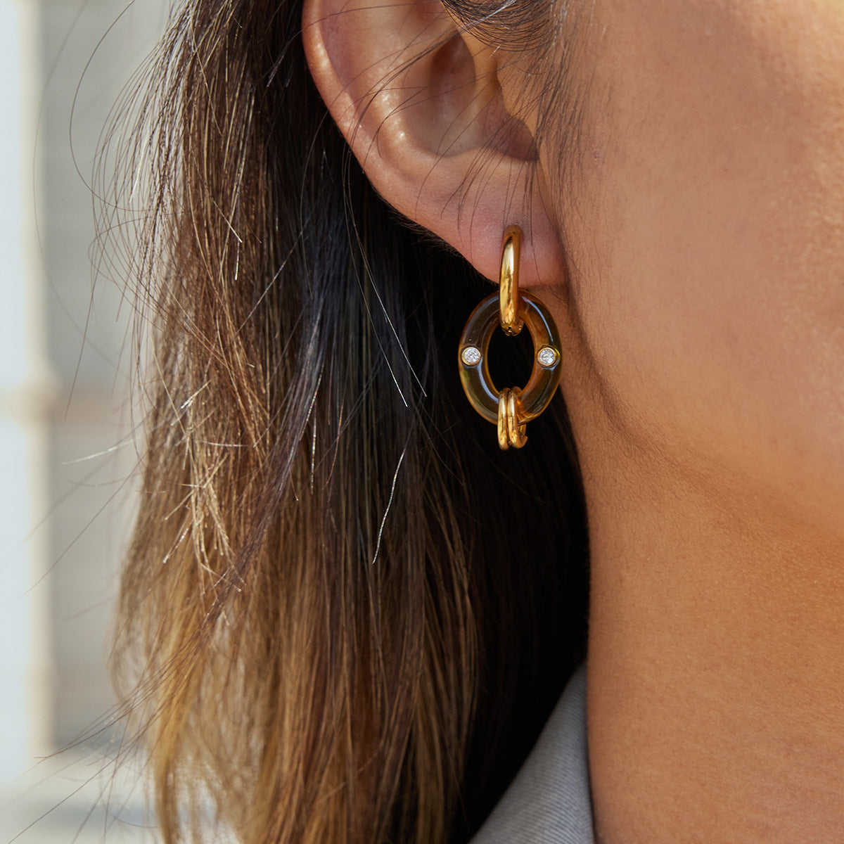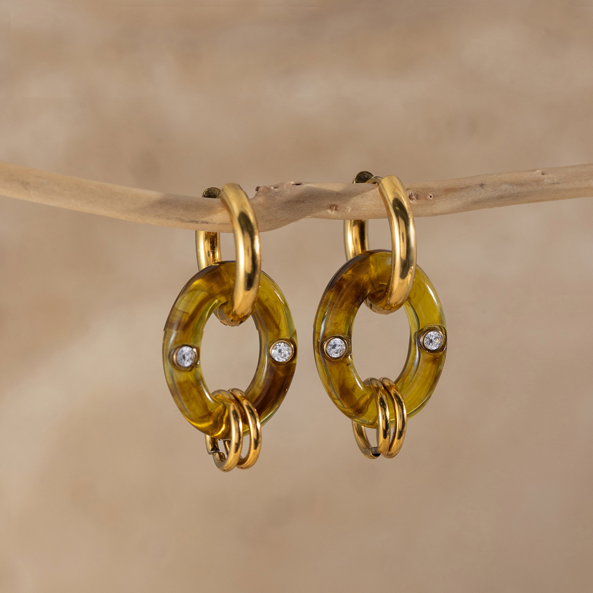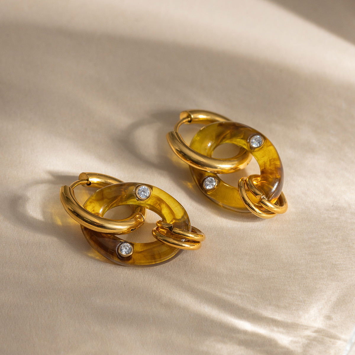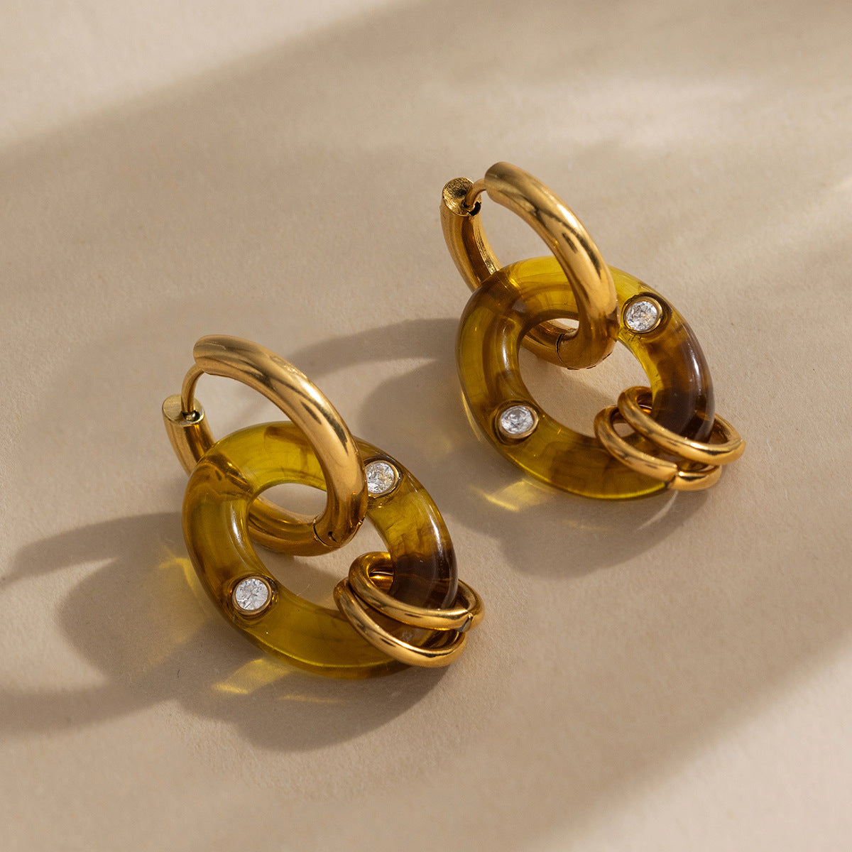 B廠 鈦鋼鍍18K金| 琥珀色樹脂耳環 批發 折扣@洽客服 26.01.W2「JDE0310032」
