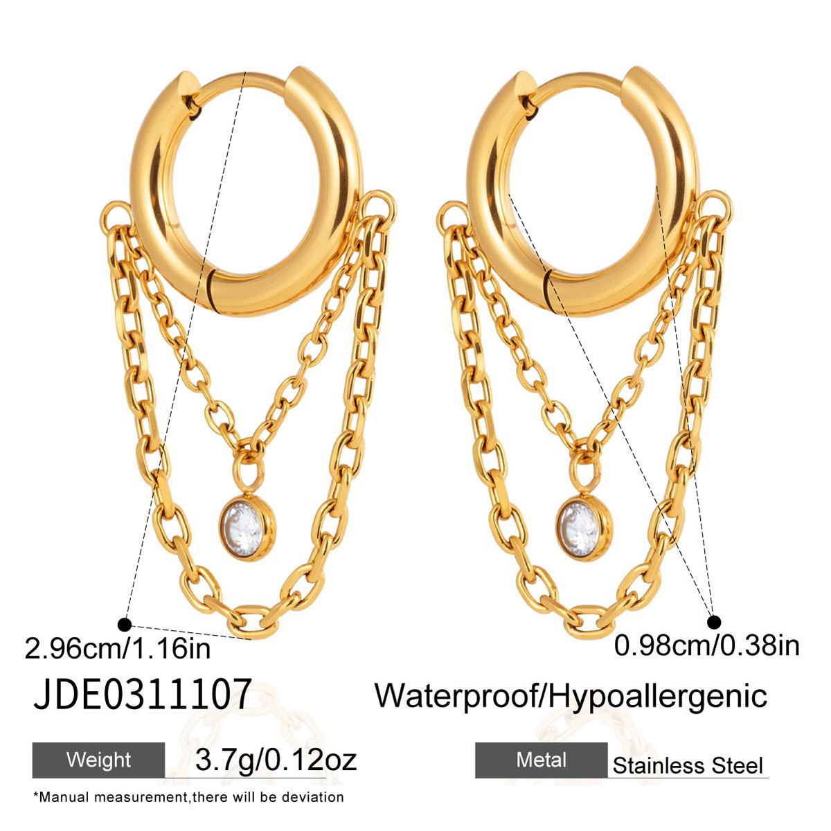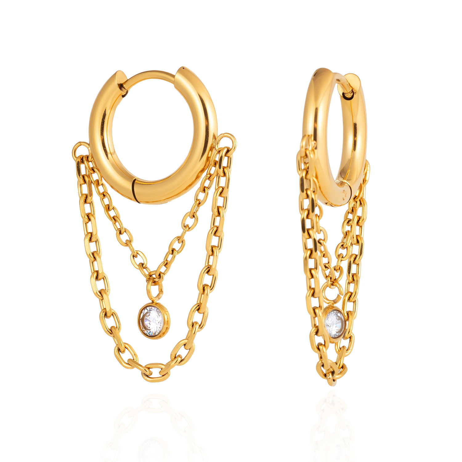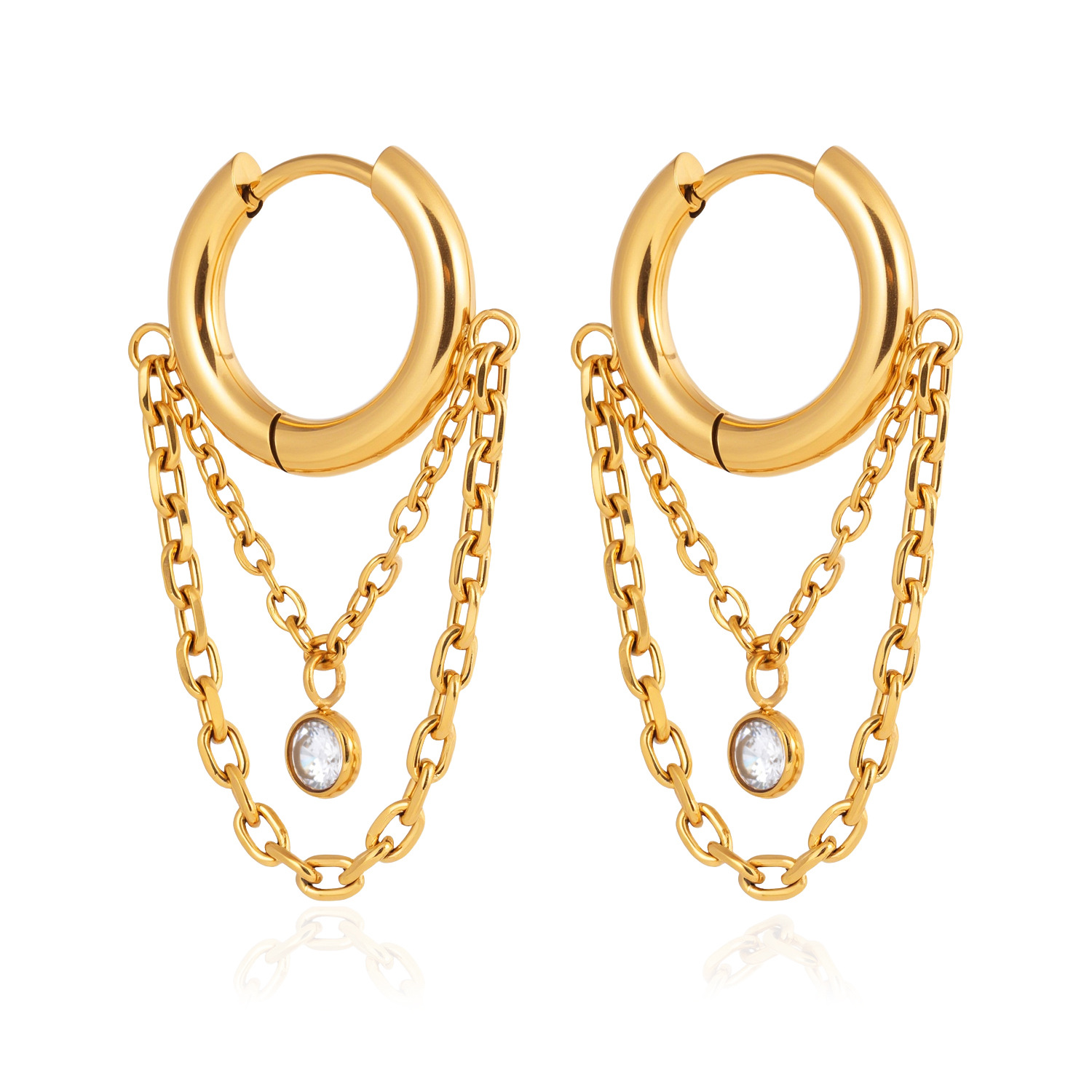 B廠 鈦鋼鍍18K金| 圓形鋯石鏈耳環 批發 折扣@洽客服 26.01.W2「JDE0311107」