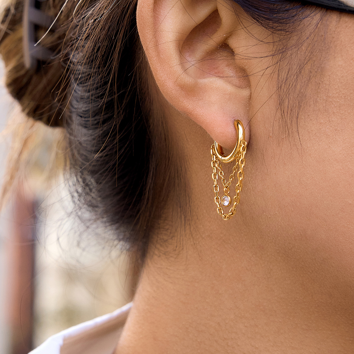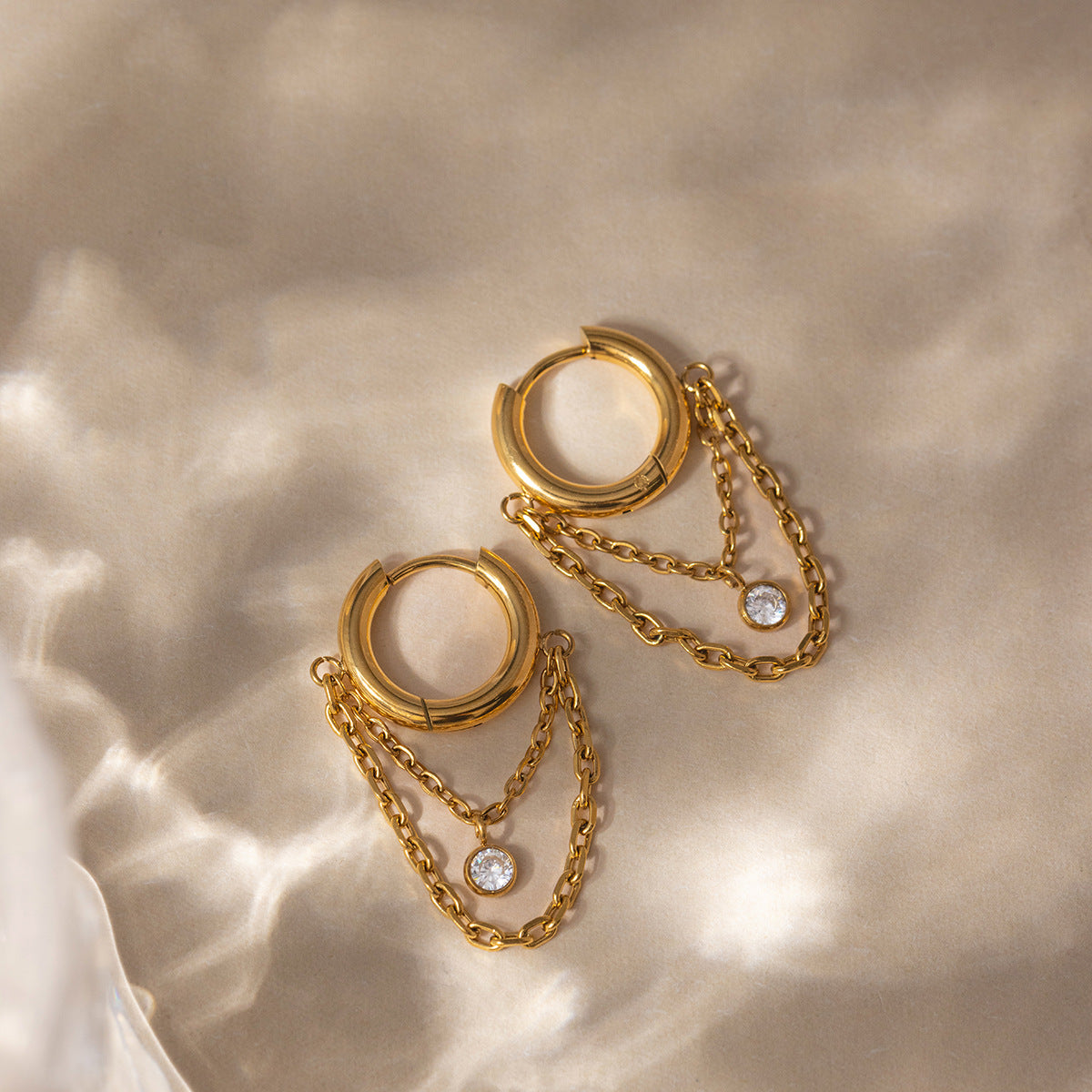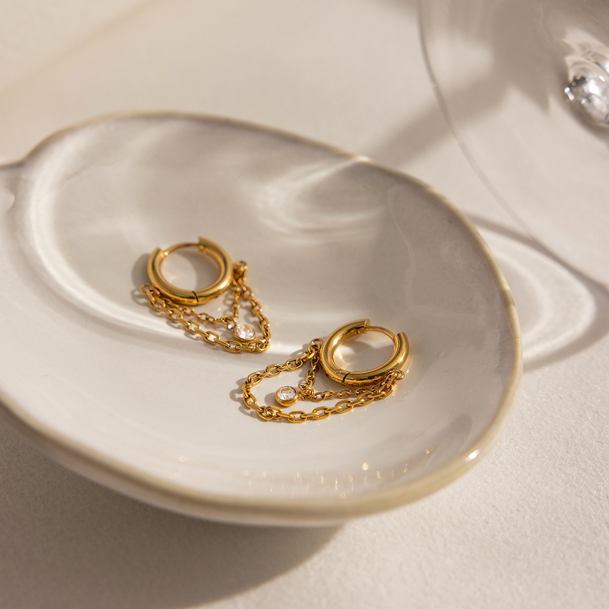 B廠 鈦鋼鍍18K金| 圓形鋯石鏈耳環 批發 折扣@洽客服 26.01.W2「JDE0311107」