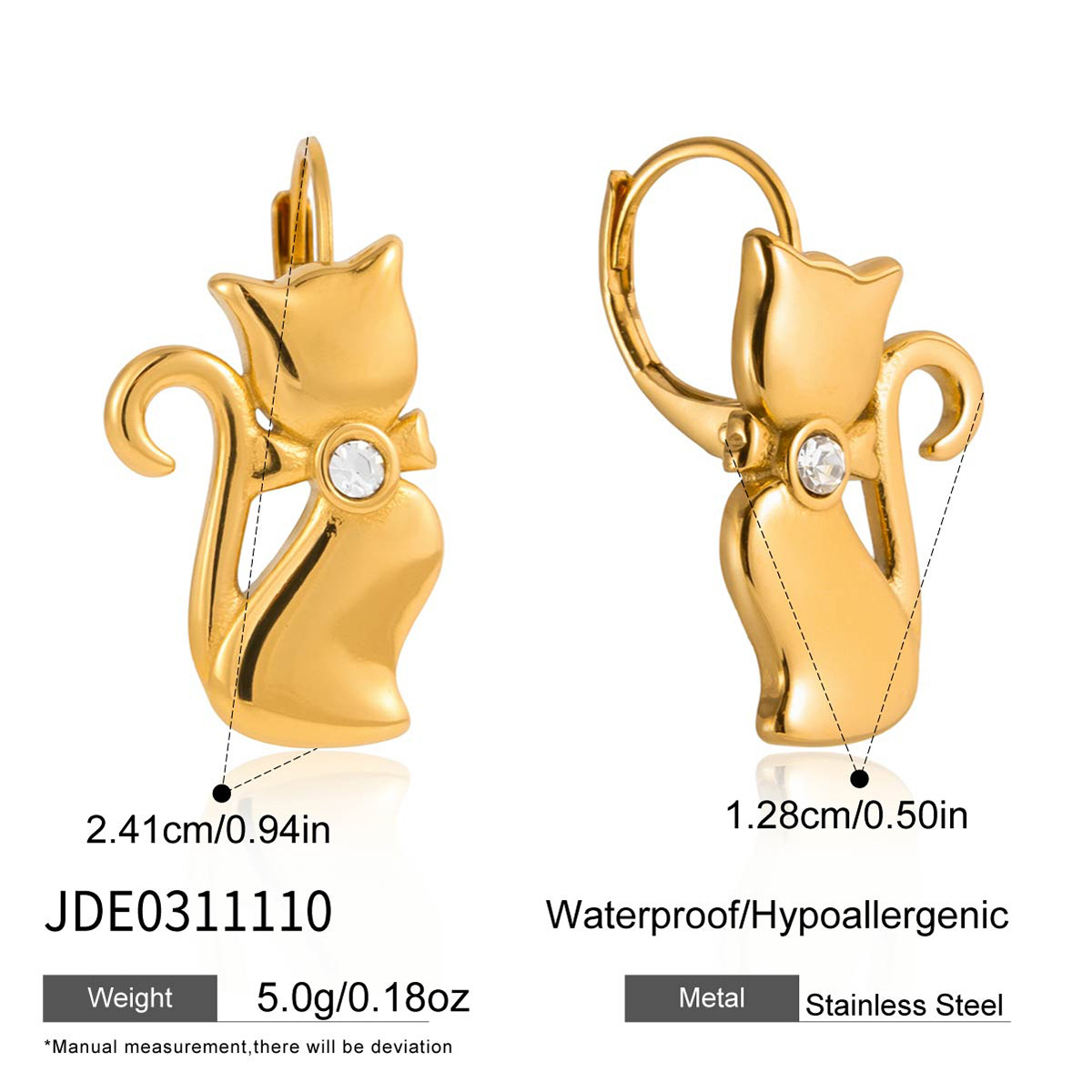 B廠 歐美款 貓咪鈦鋼鍍18K金耳環 批發 折扣@洽客服 26.03.W1「JDE0311110」
