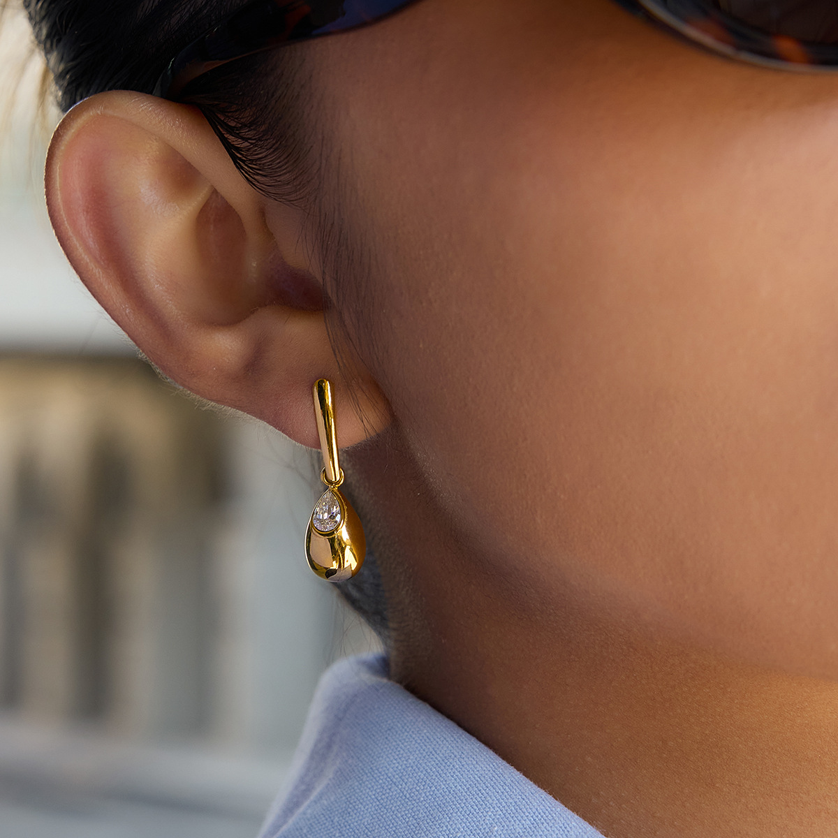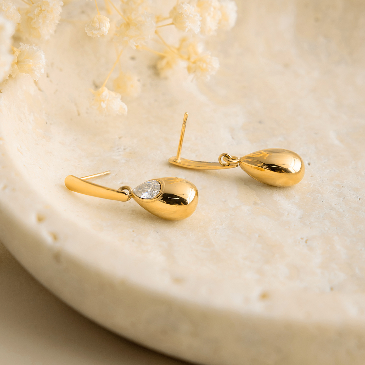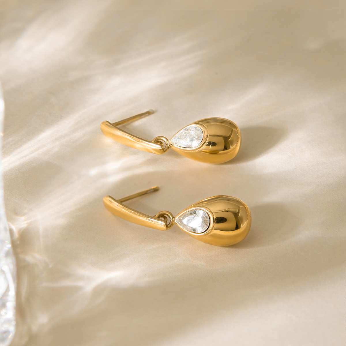 B廠 歐美款 鋯石水滴形鈦鋼鍍18K金耳環 批發 折扣@洽客服 26.02.W3「JDE0311118」