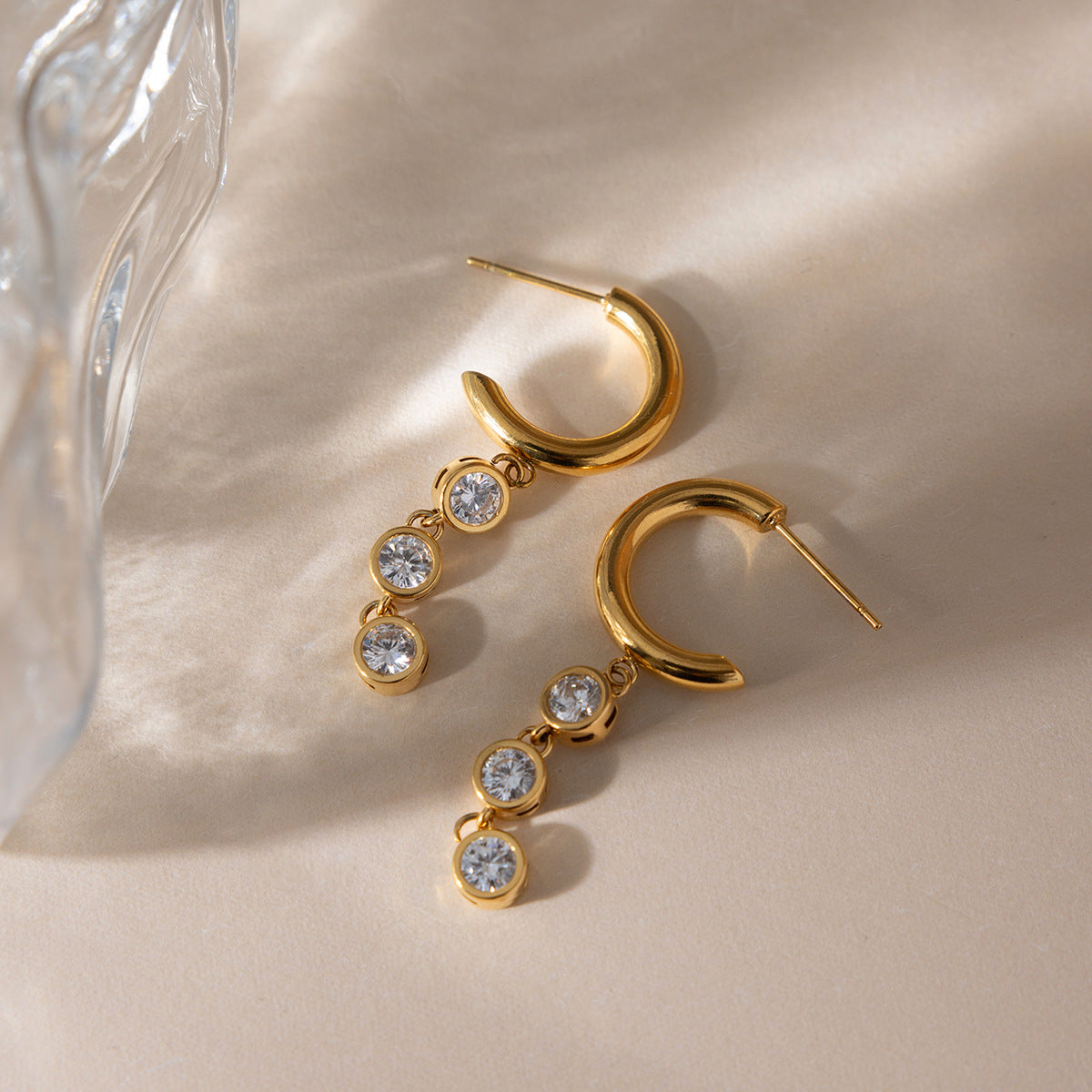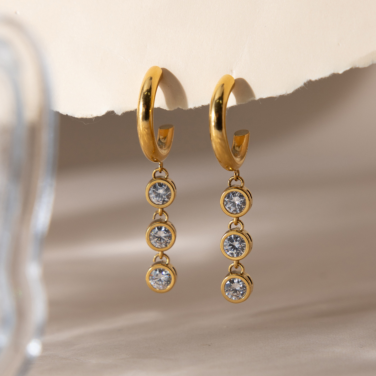 B廠 歐美款 白色鋯石流蘇鈦鋼鍍18K金耳環 批發 折扣@洽客服 26.03.W1「JDE0311184」
