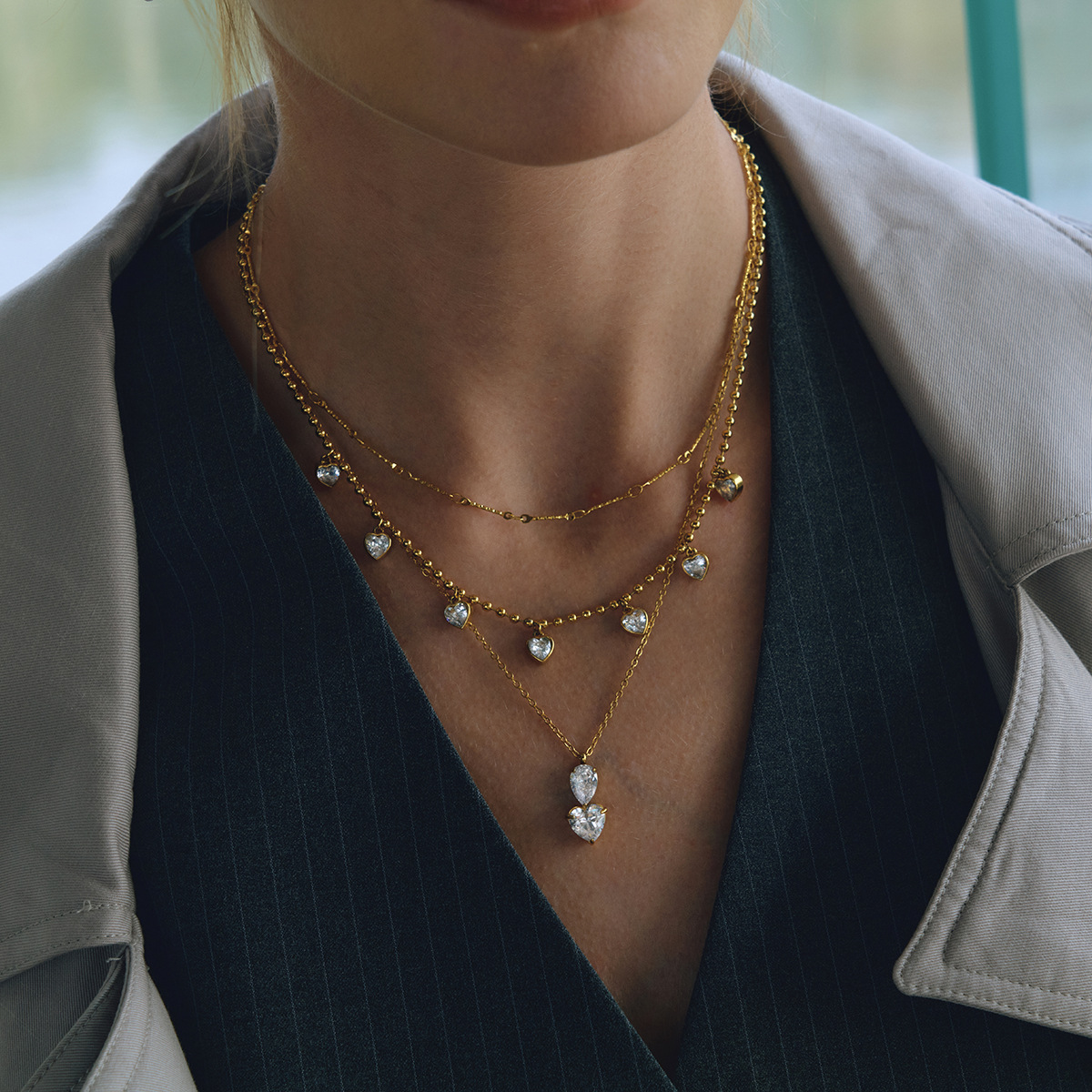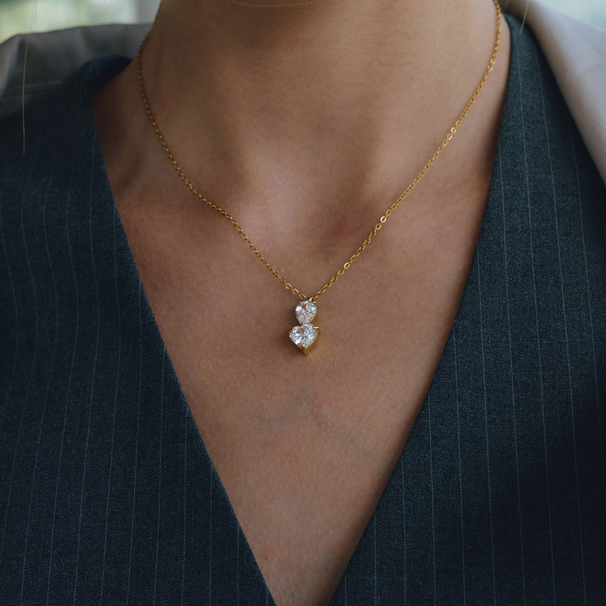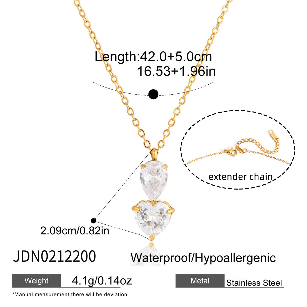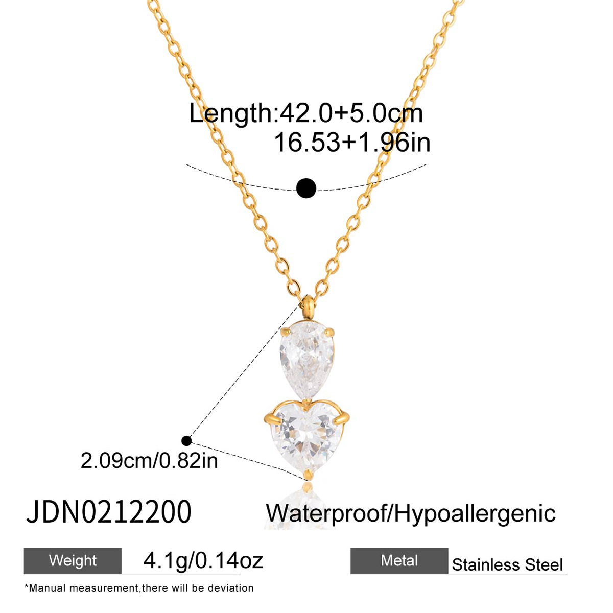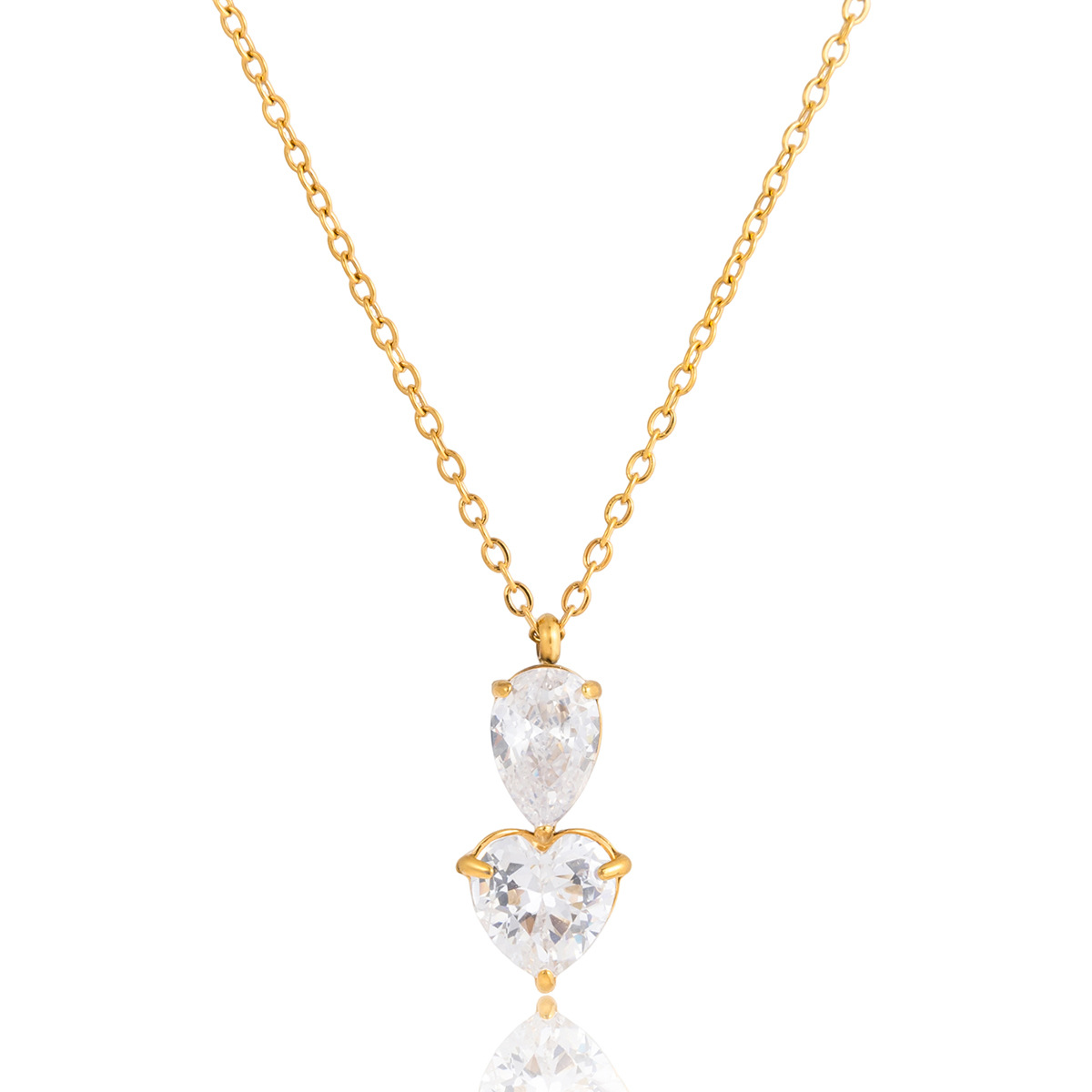 B廠 鈦鋼鍍18K金|歐美白色水滴形愛心鋯石項鍊 批發 折扣@洽客服 26.01.W4「JDN0212200」