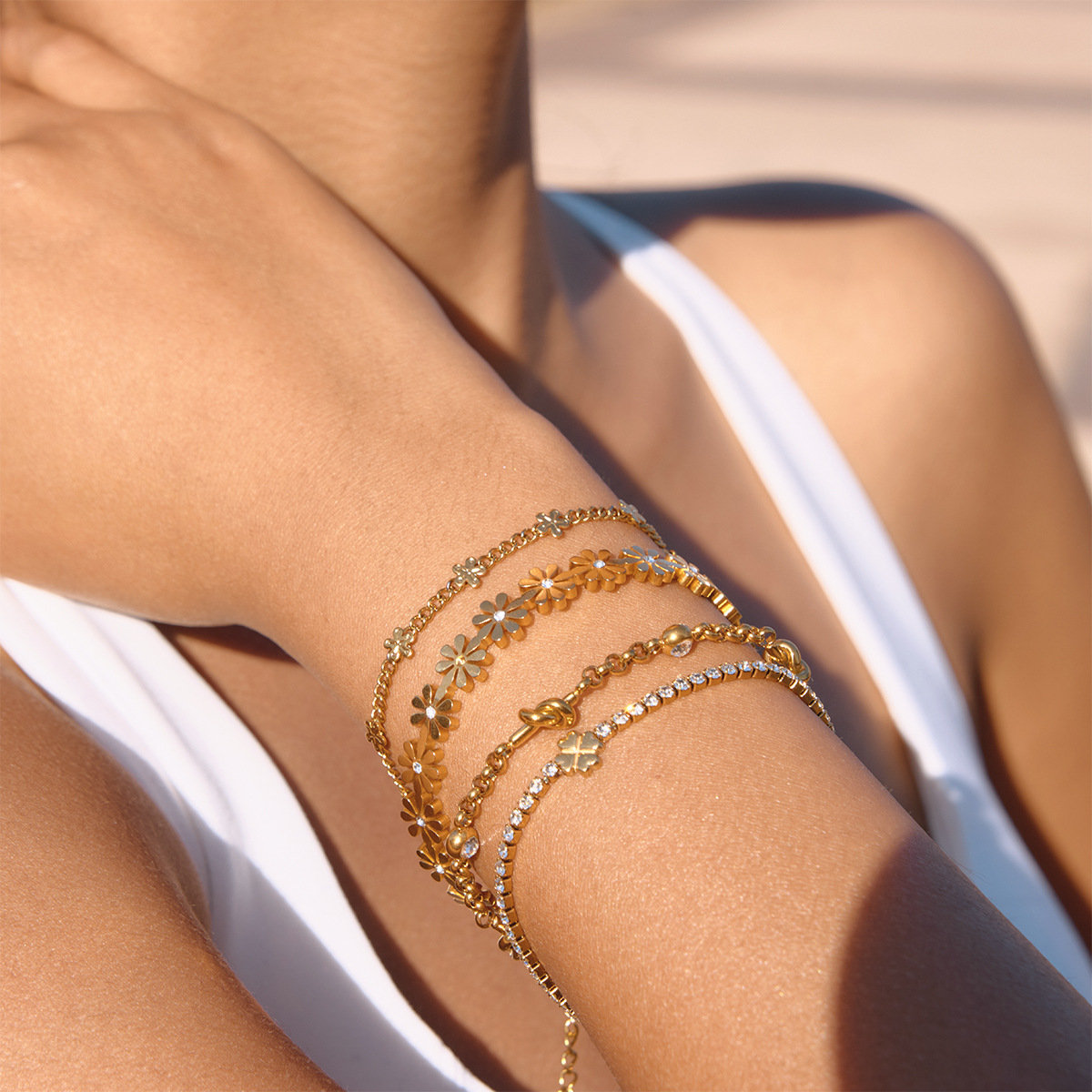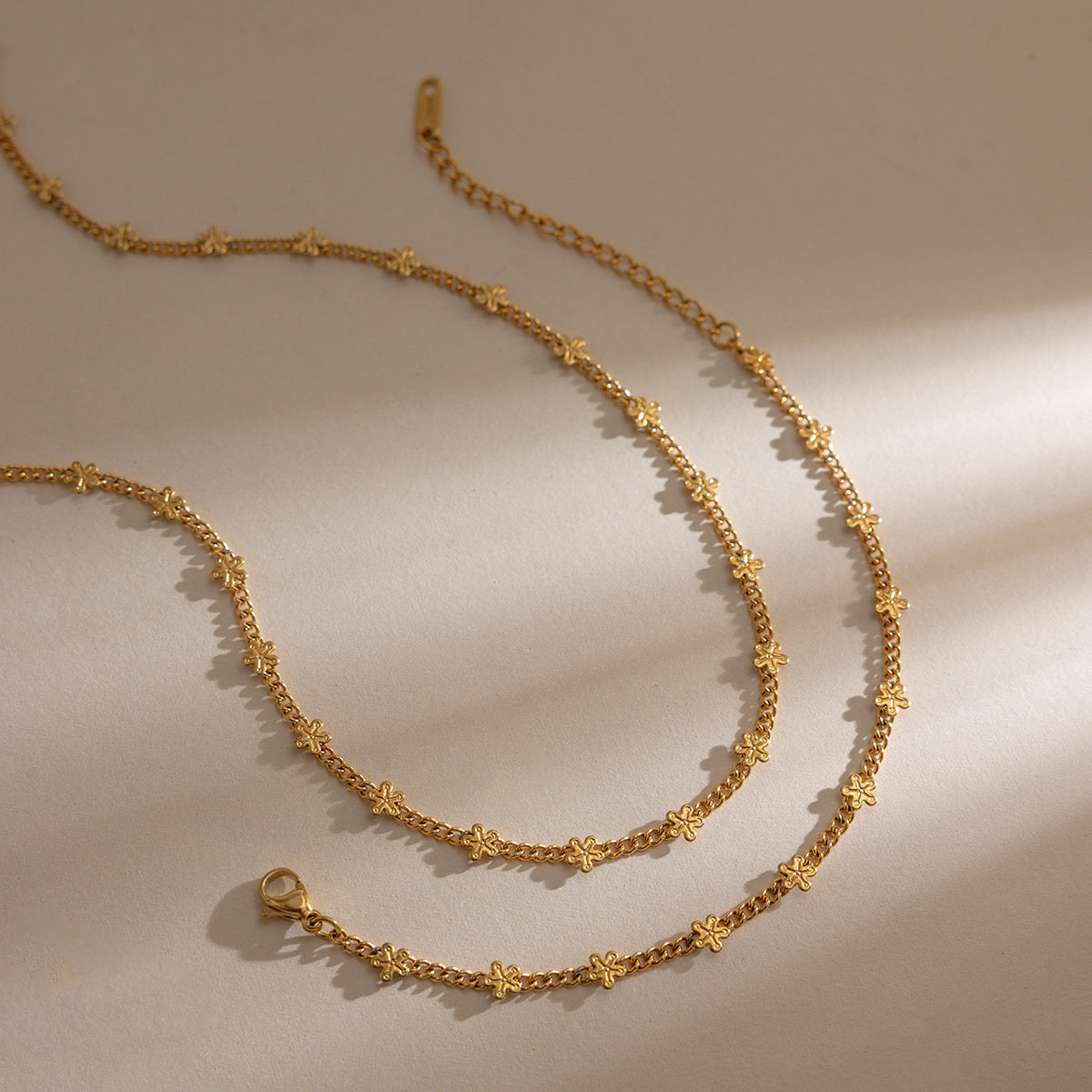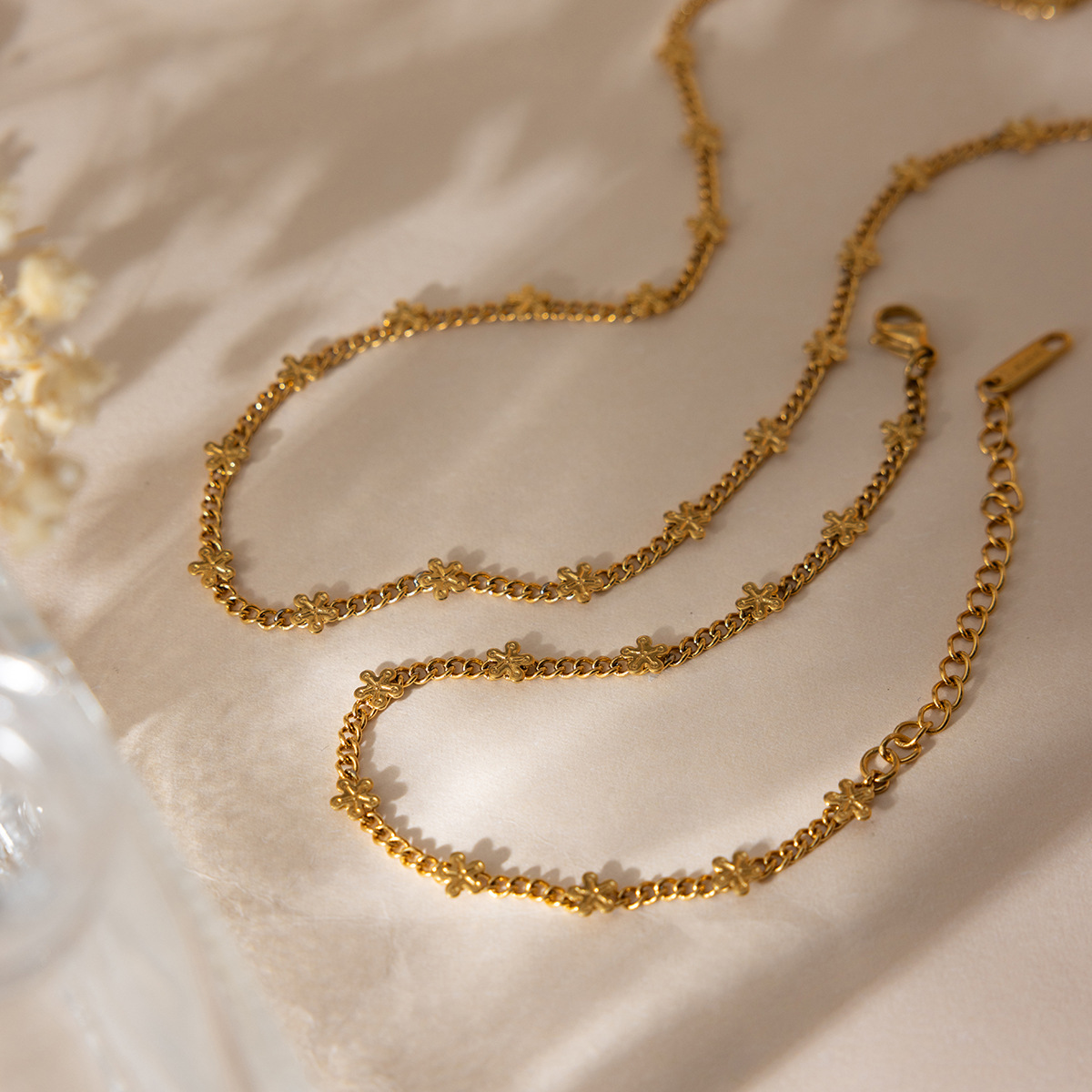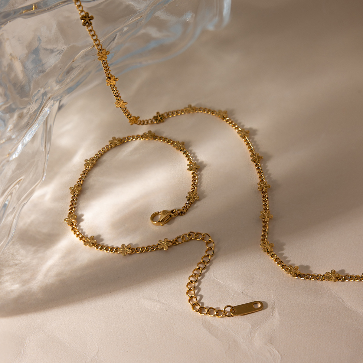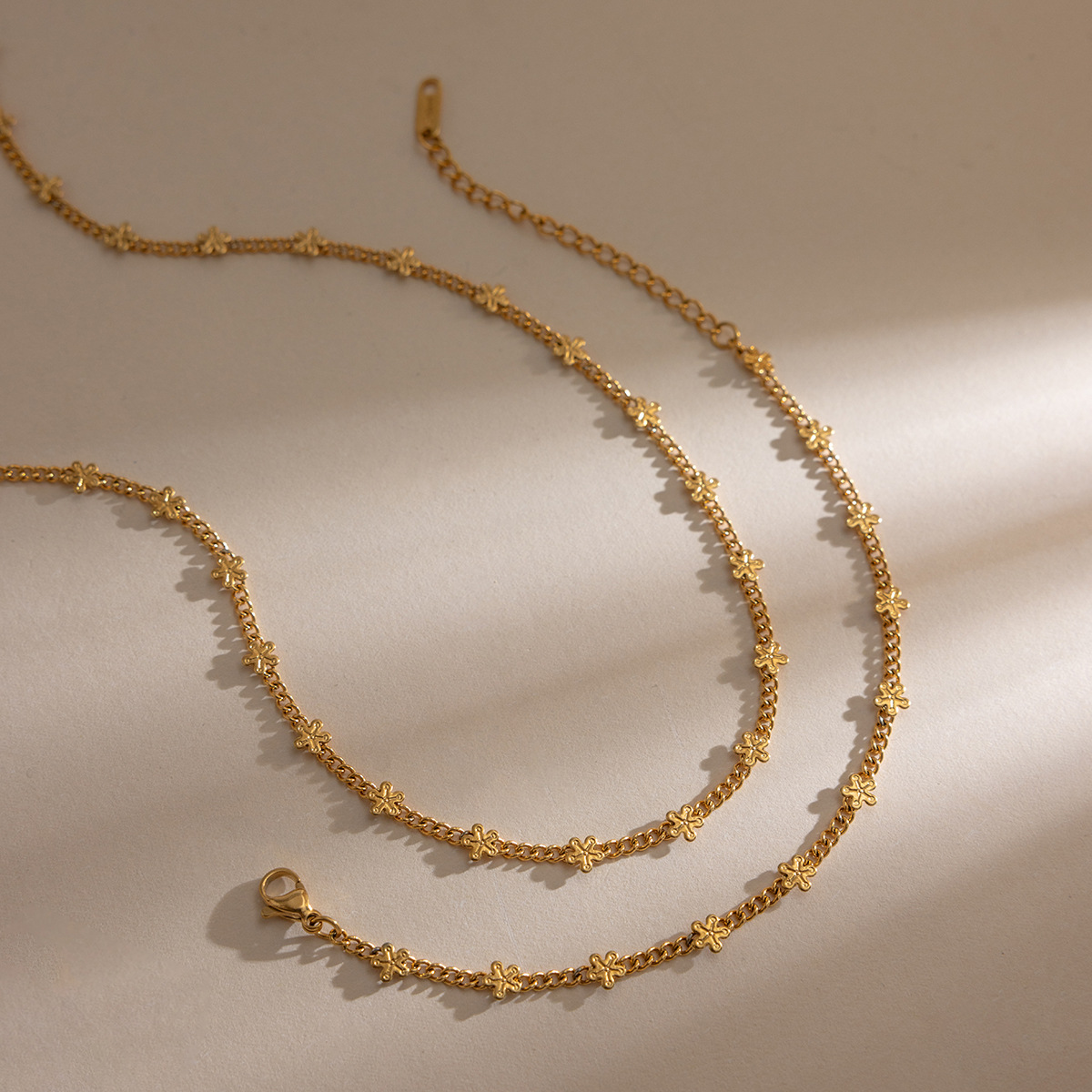 B廠 歐美款 花朵鈦鋼鍍18K金項鍊&手錬 批發 折扣@洽客服 26.02.W3「JDN0212203 JDB0212200」