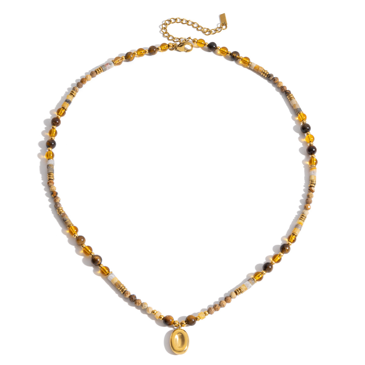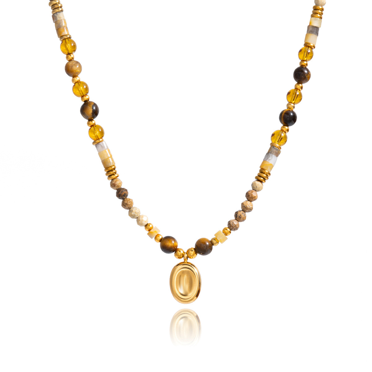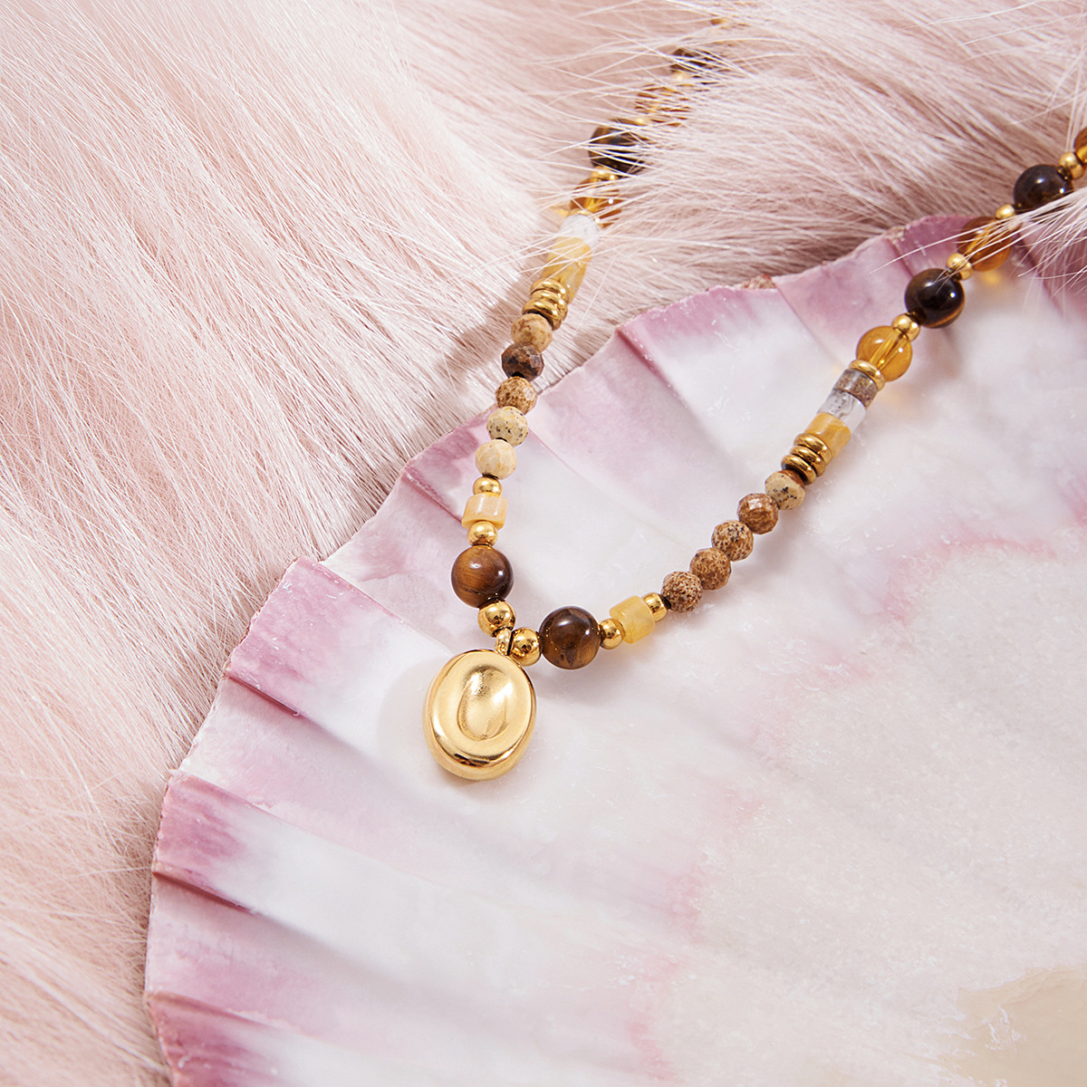 B廠 歐美款 虎眼石天然石玻璃水晶串珠 鈦鋼鍍18K金項鍊 批發 折扣@洽客服 25.10.W5「JDN0307008」