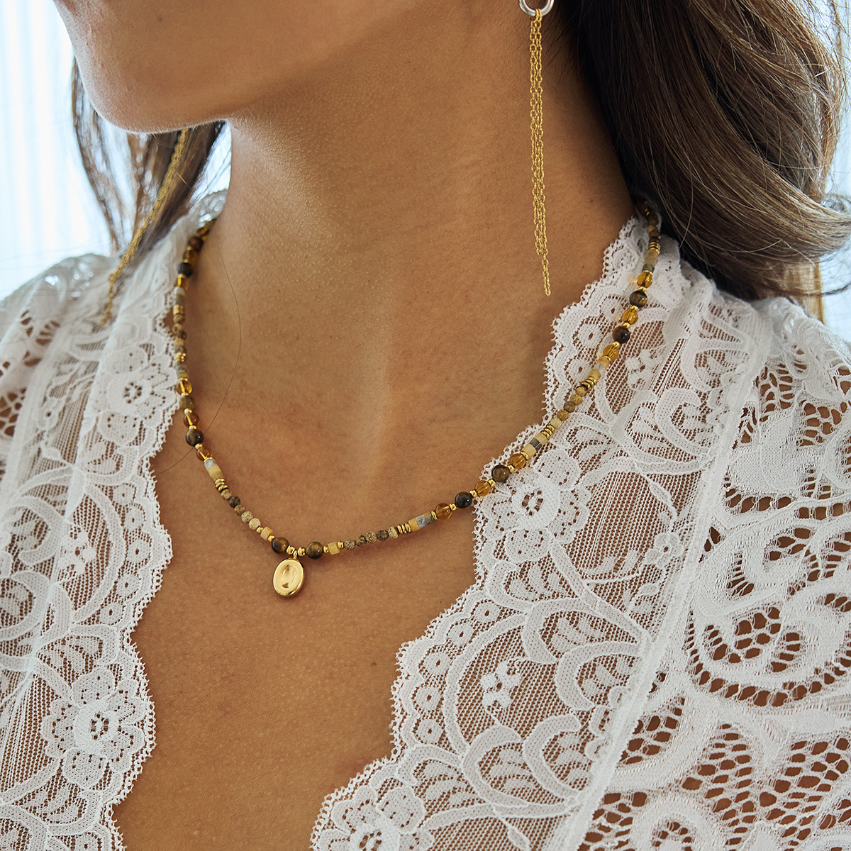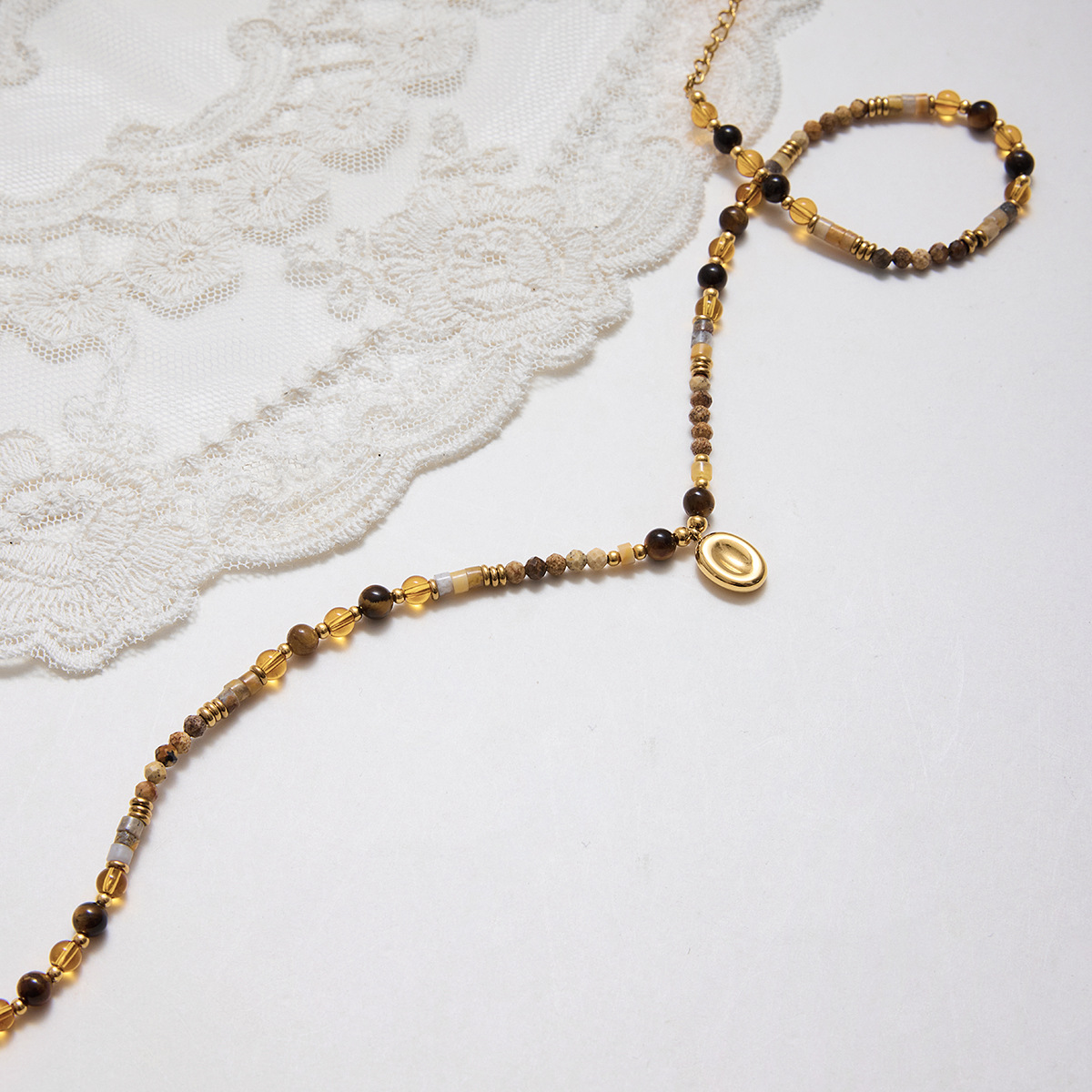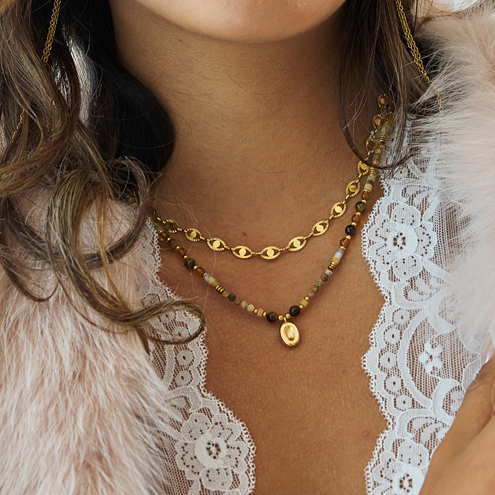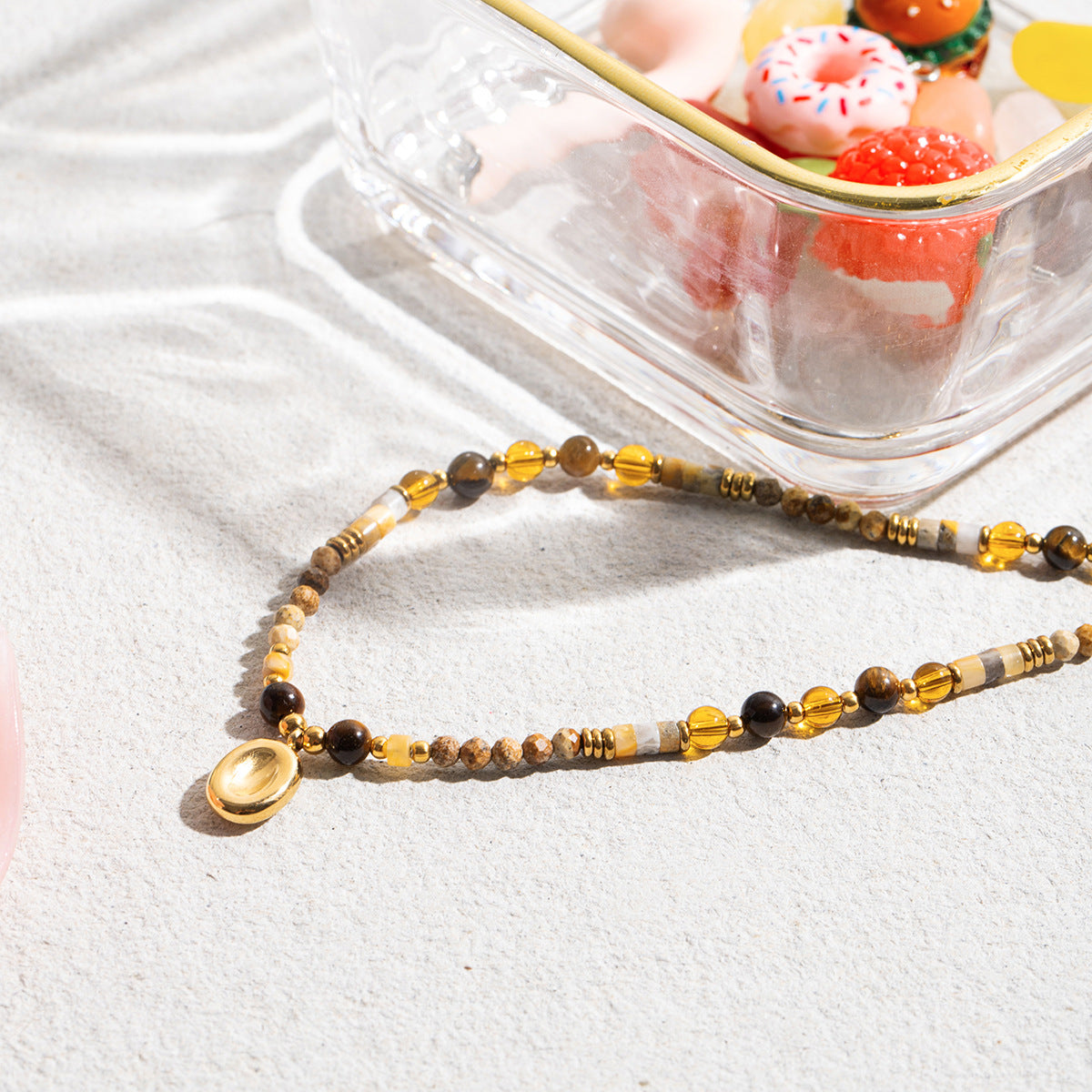 B廠 歐美款 虎眼石天然石玻璃水晶串珠 鈦鋼鍍18K金項鍊 批發 折扣@洽客服 25.10.W5「JDN0307008」