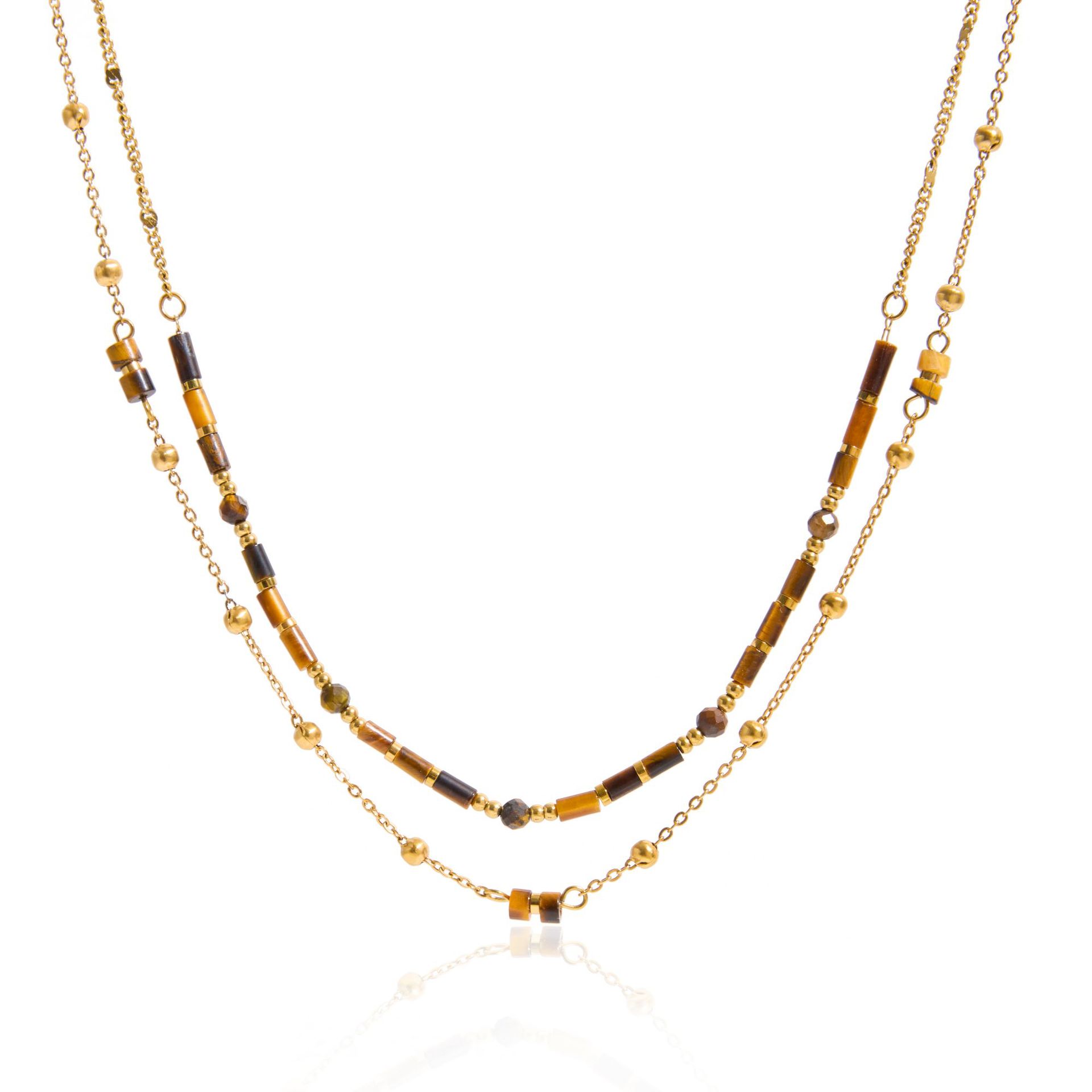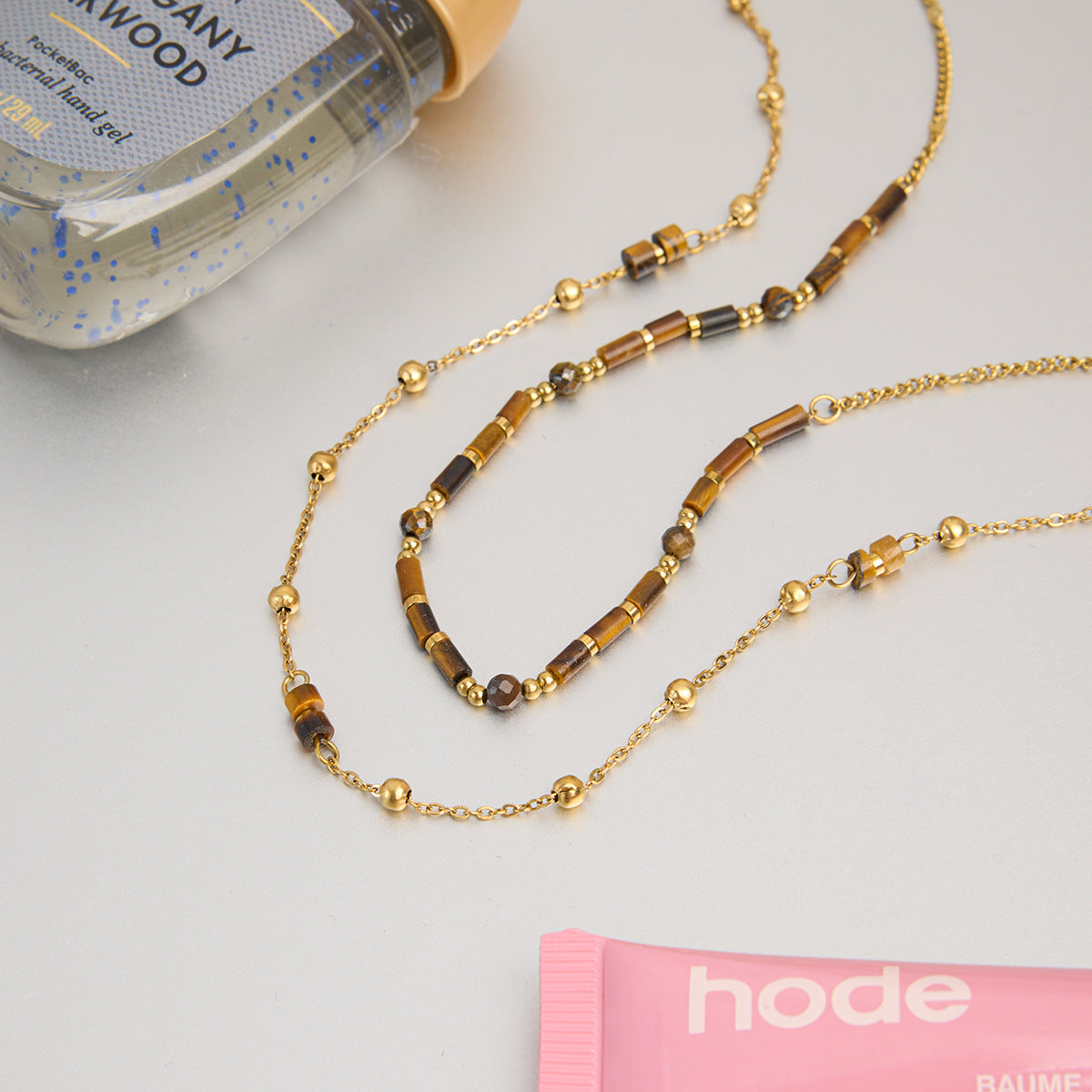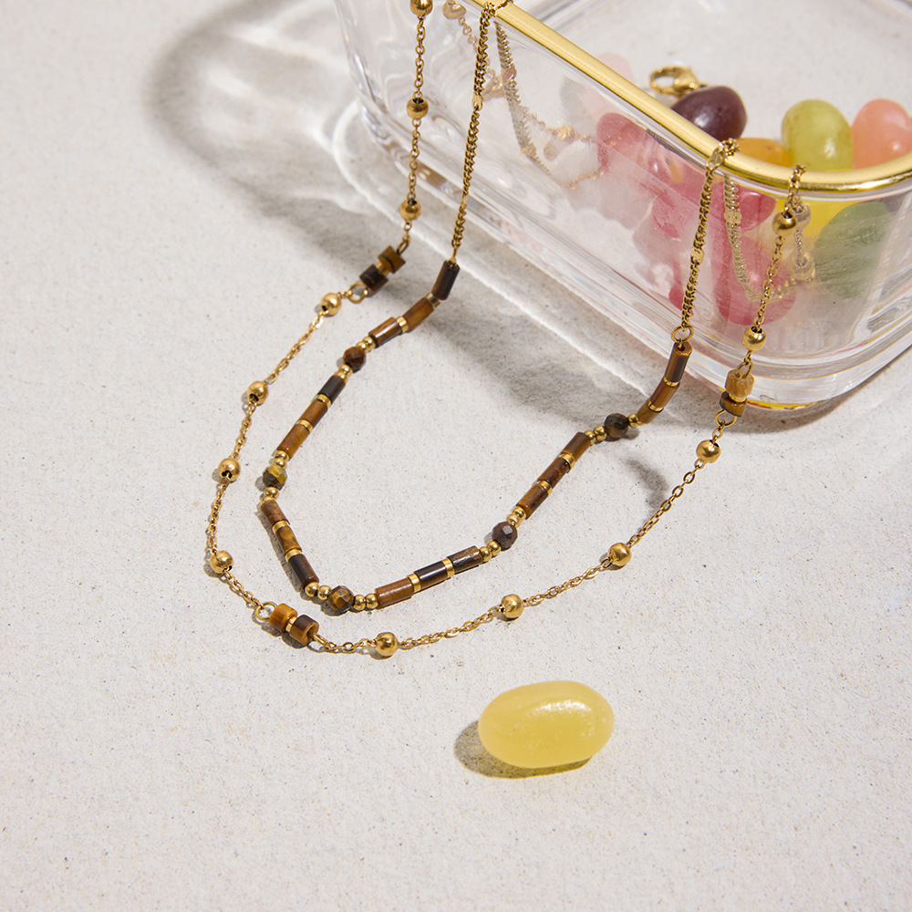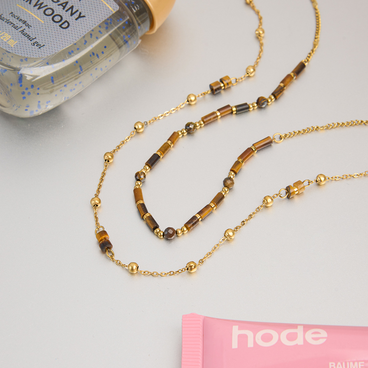 B廠 歐美款 復古虎眼石 鈦鋼鍍18K金項鍊 批發 折扣@洽客服 25.10.W5「JDN0307009」
