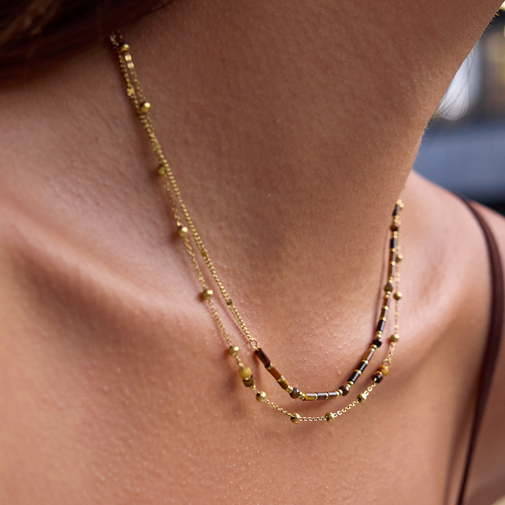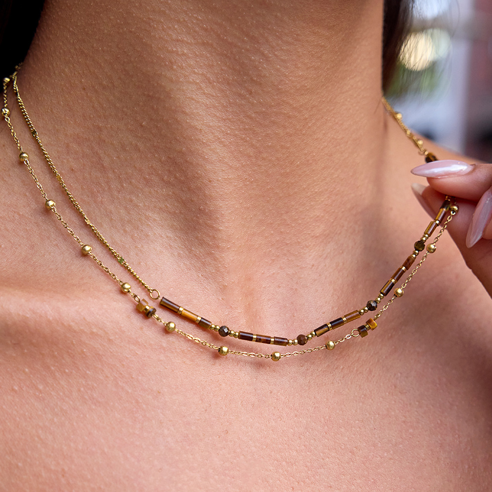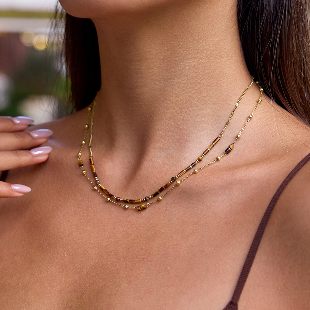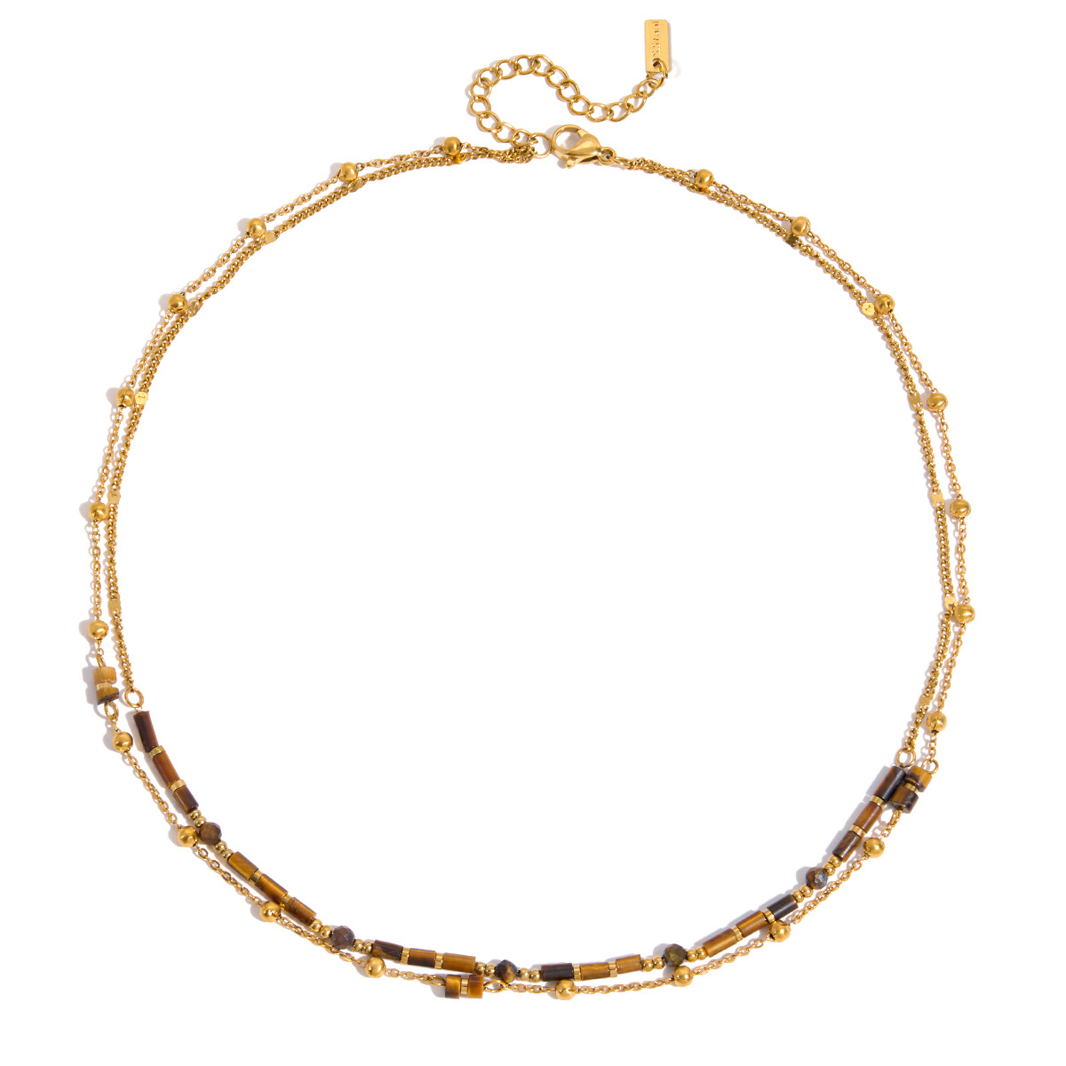 B廠 歐美款 復古虎眼石 鈦鋼鍍18K金項鍊 批發 折扣@洽客服 25.10.W5「JDN0307009」
