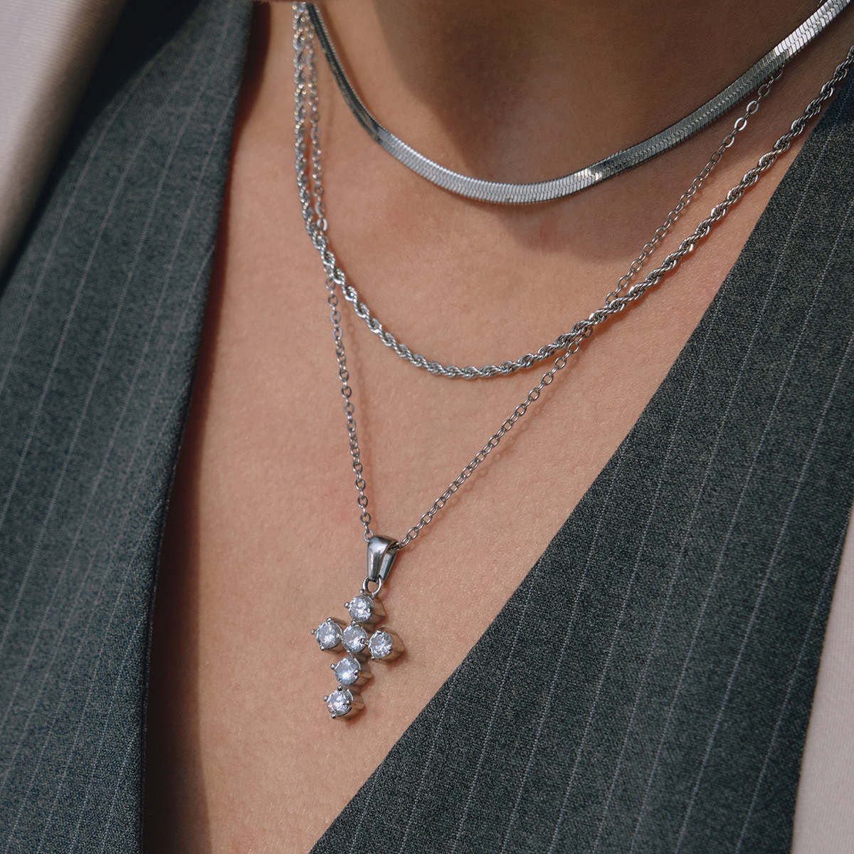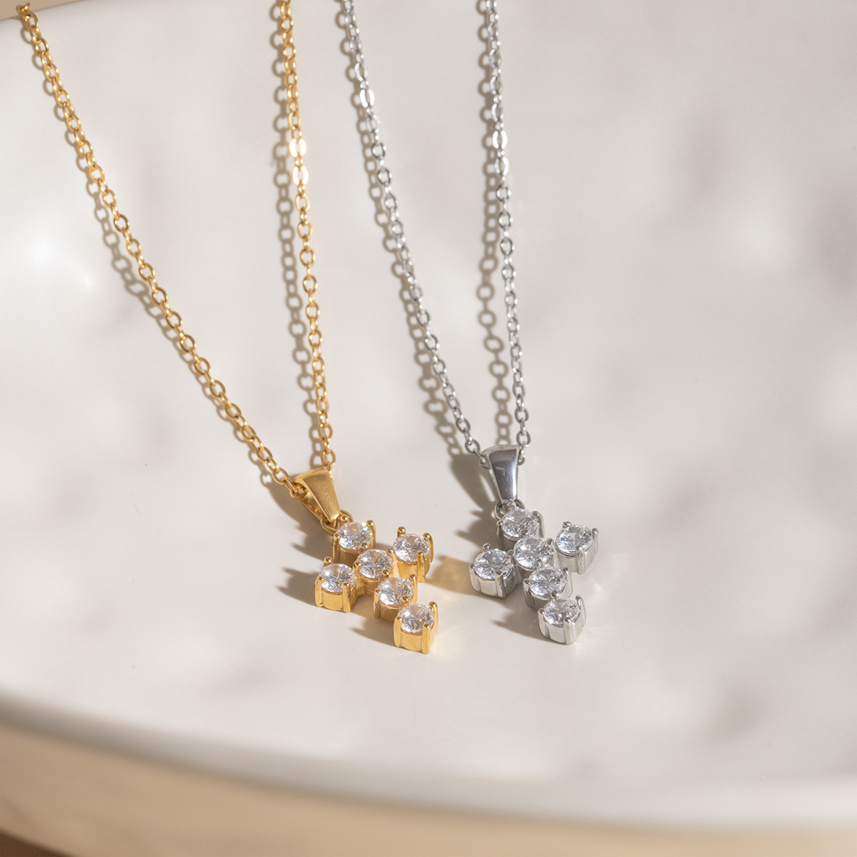 B廠 歐美款鋯石十字架鈦鋼鍍18K金項鍊批發 折扣@洽客服 26.03.W2「JDN0307035」