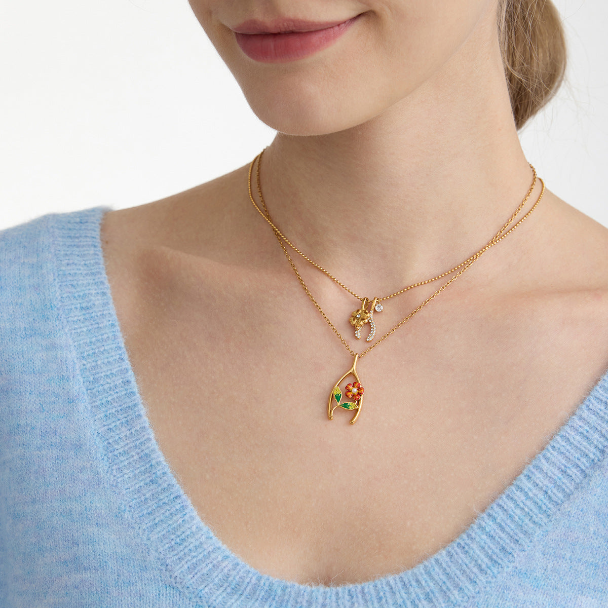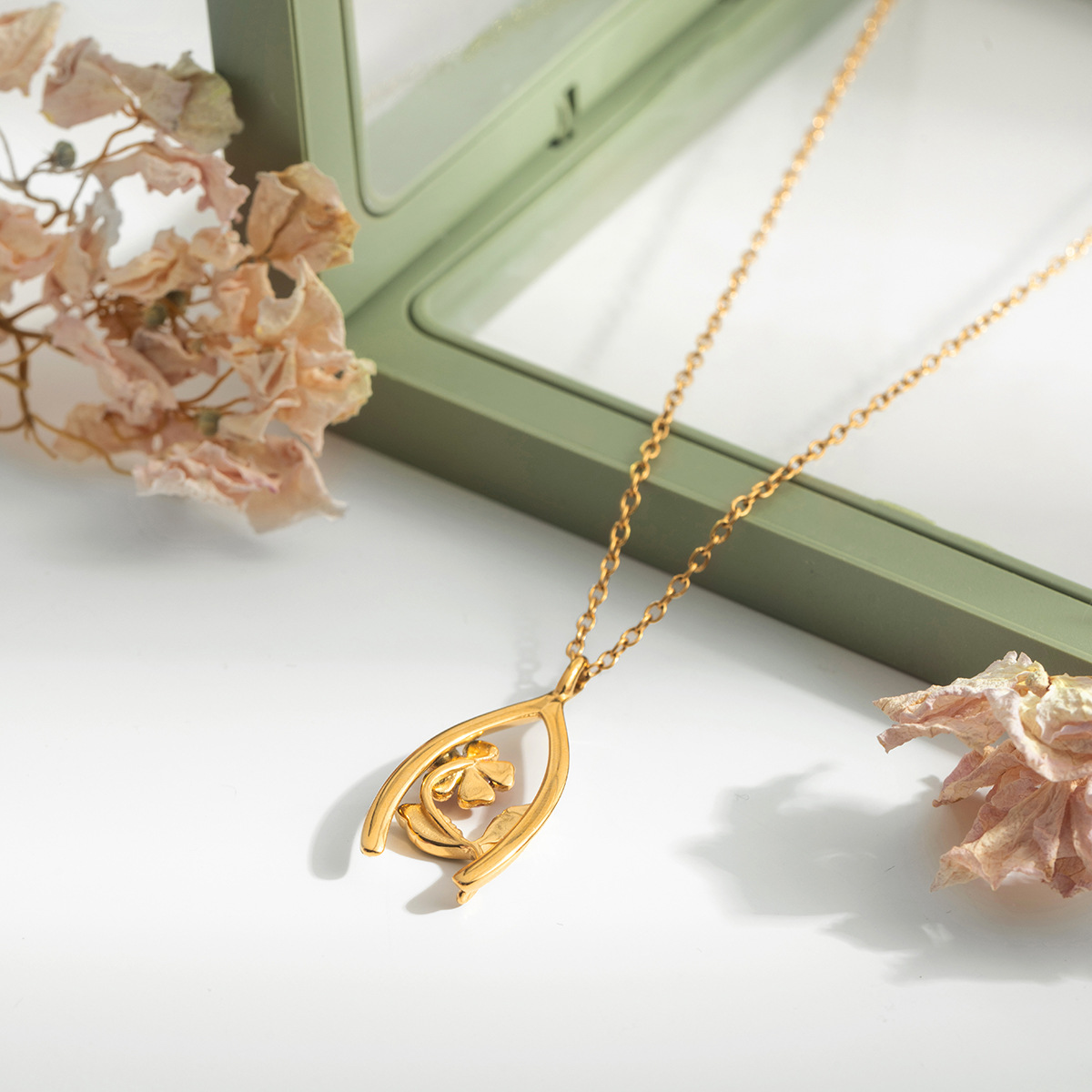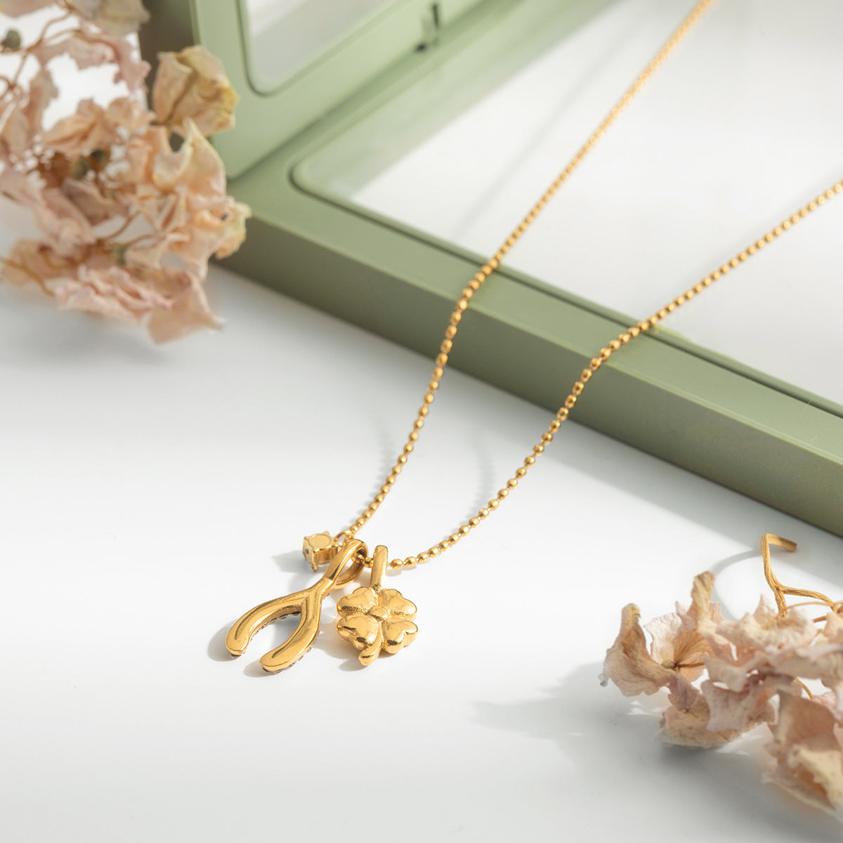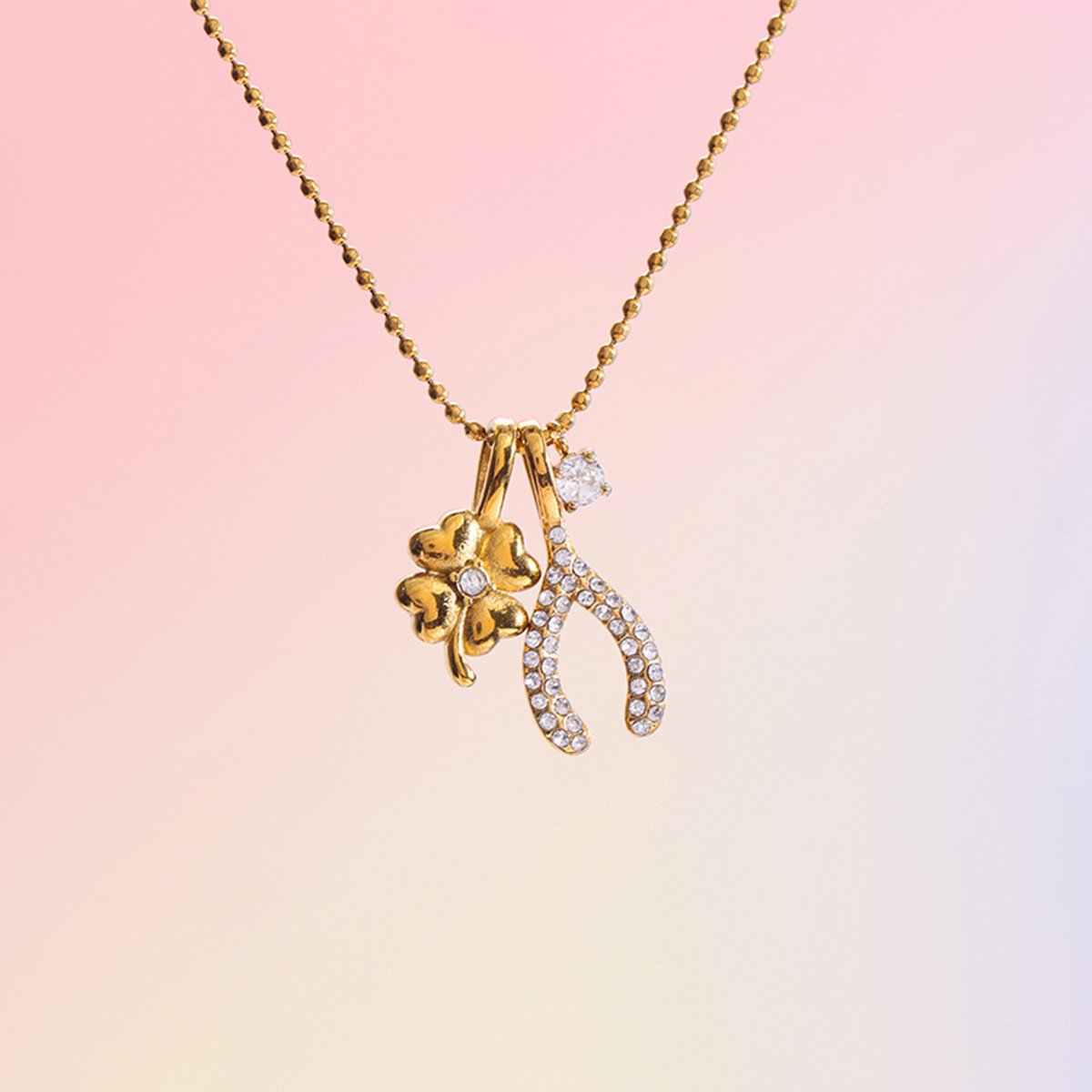 B廠 歐美款 鋯石四葉草 鈦鋼鍍18K金項鍊 批發 折扣@洽客服 25.10.W5「JDN0308026 JDN0308027」