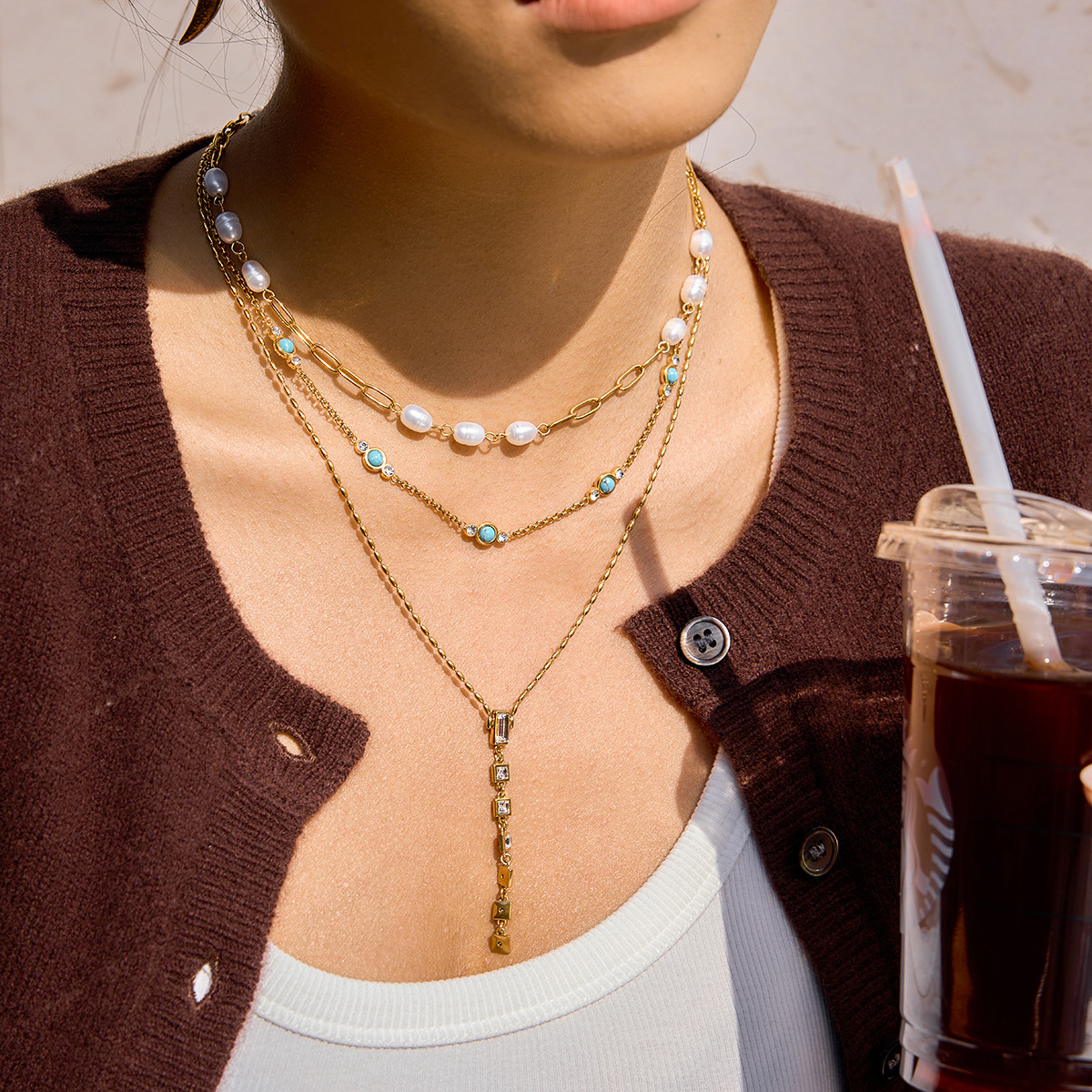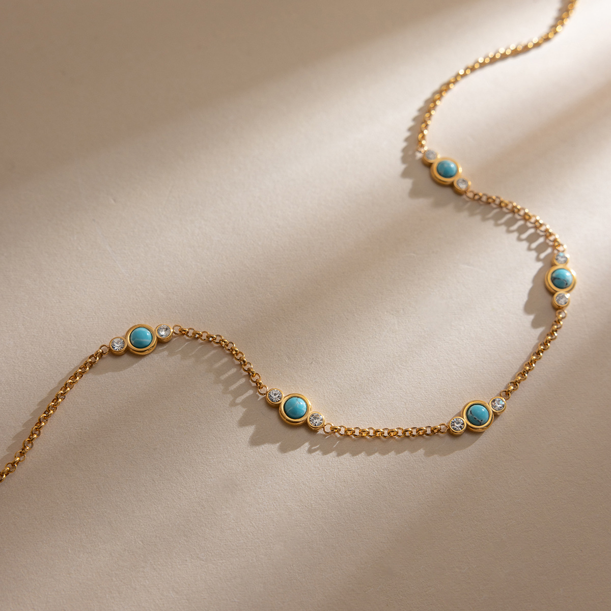 B廠 歐美款 藍松石鈦鋼鍍18K金項鍊 批發 折扣@洽客服 26.02.W3「JDN0311112」