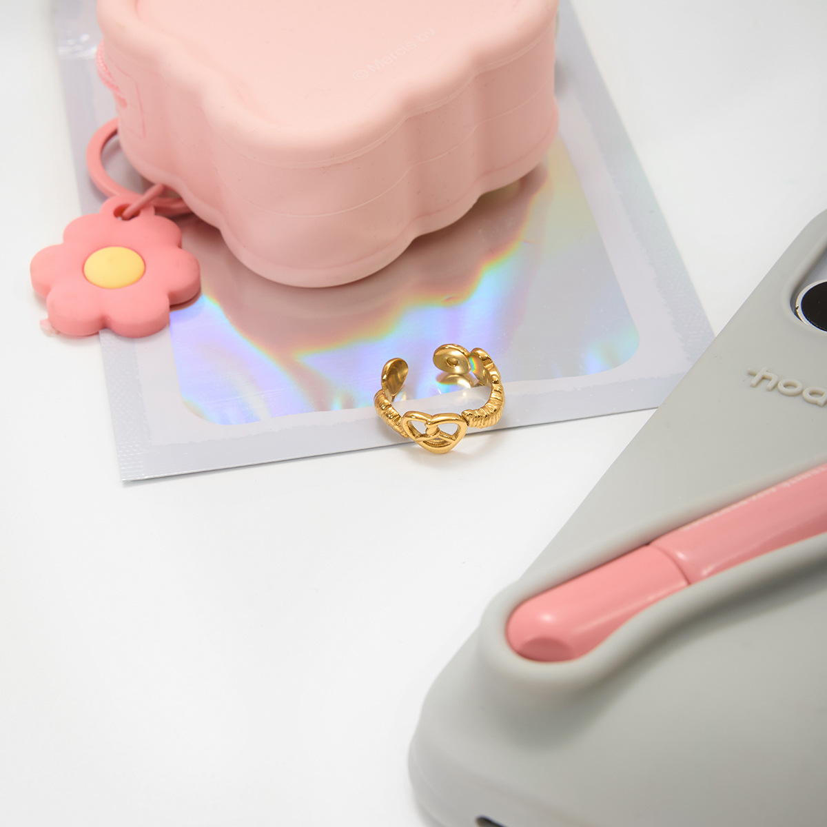B廠 歐美款 愛心鹼水結開口 鈦鋼鍍18K金戒指 批發 折扣@洽客服 25.10.W5「JDR0208003」