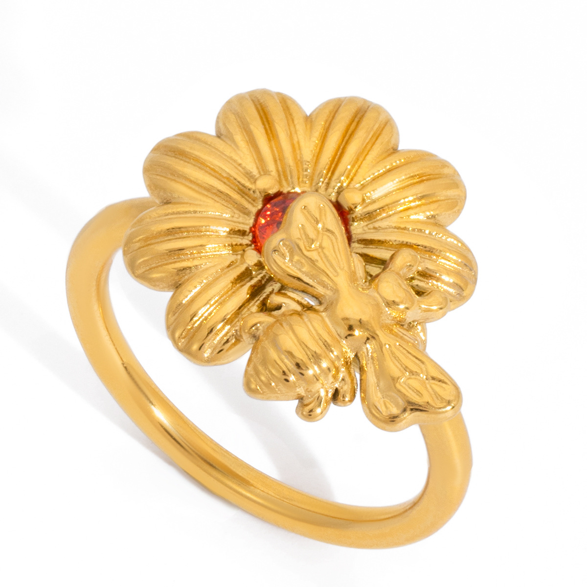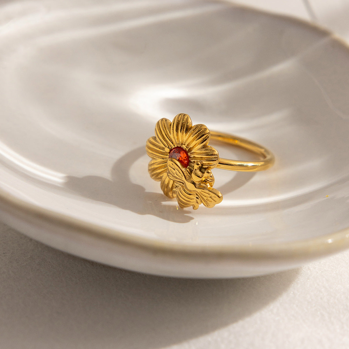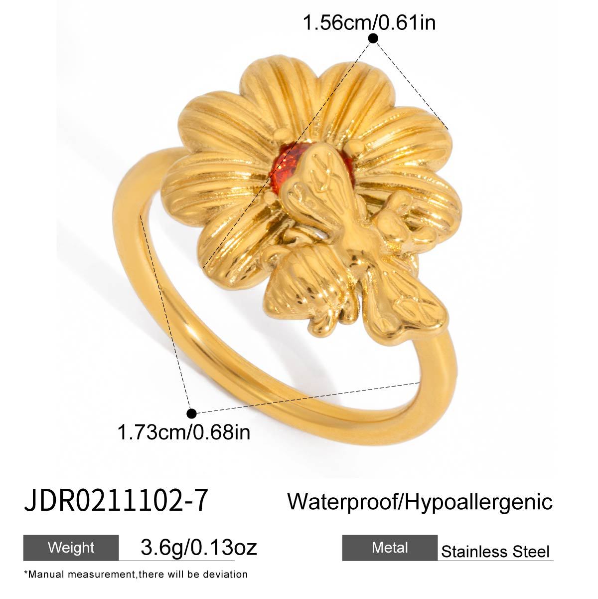 B廠 鈦鋼鍍18K金|歐美橘色鋯石蜜蜂小雛菊戒指 批發 折扣@洽客服 26.01.W4「JDR0211102-7」