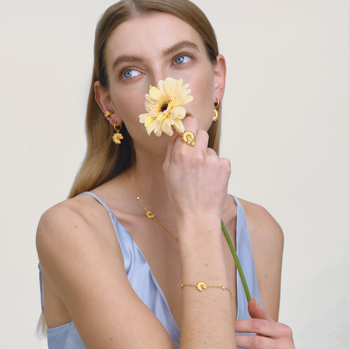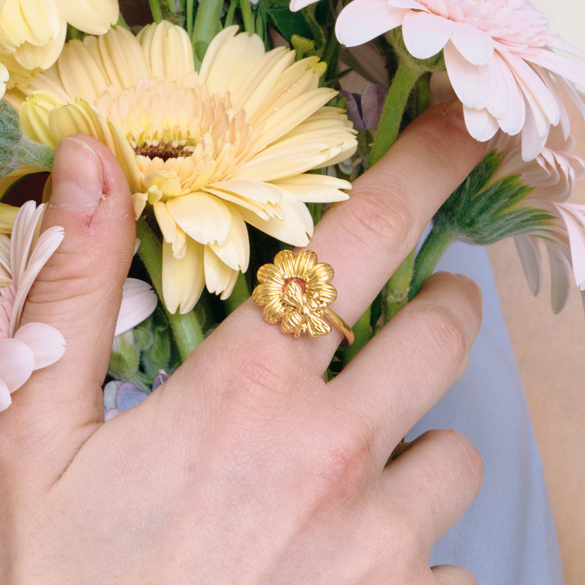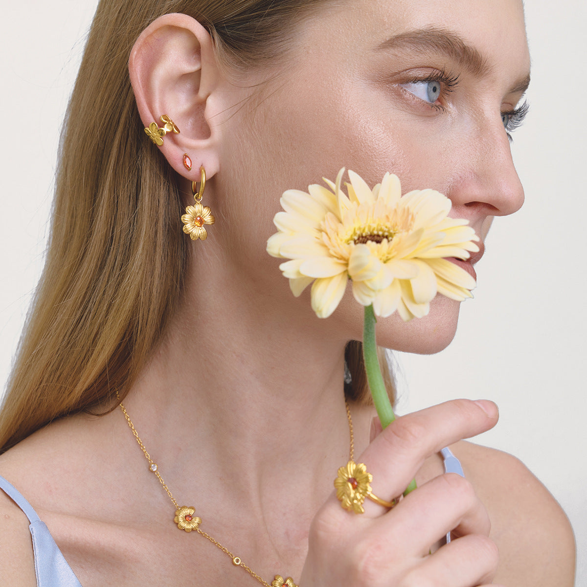 B廠 鈦鋼鍍18K金|歐美橘色鋯石蜜蜂小雛菊戒指 批發 折扣@洽客服 26.01.W4「JDR0211102-7」
