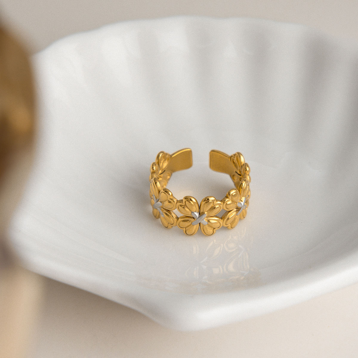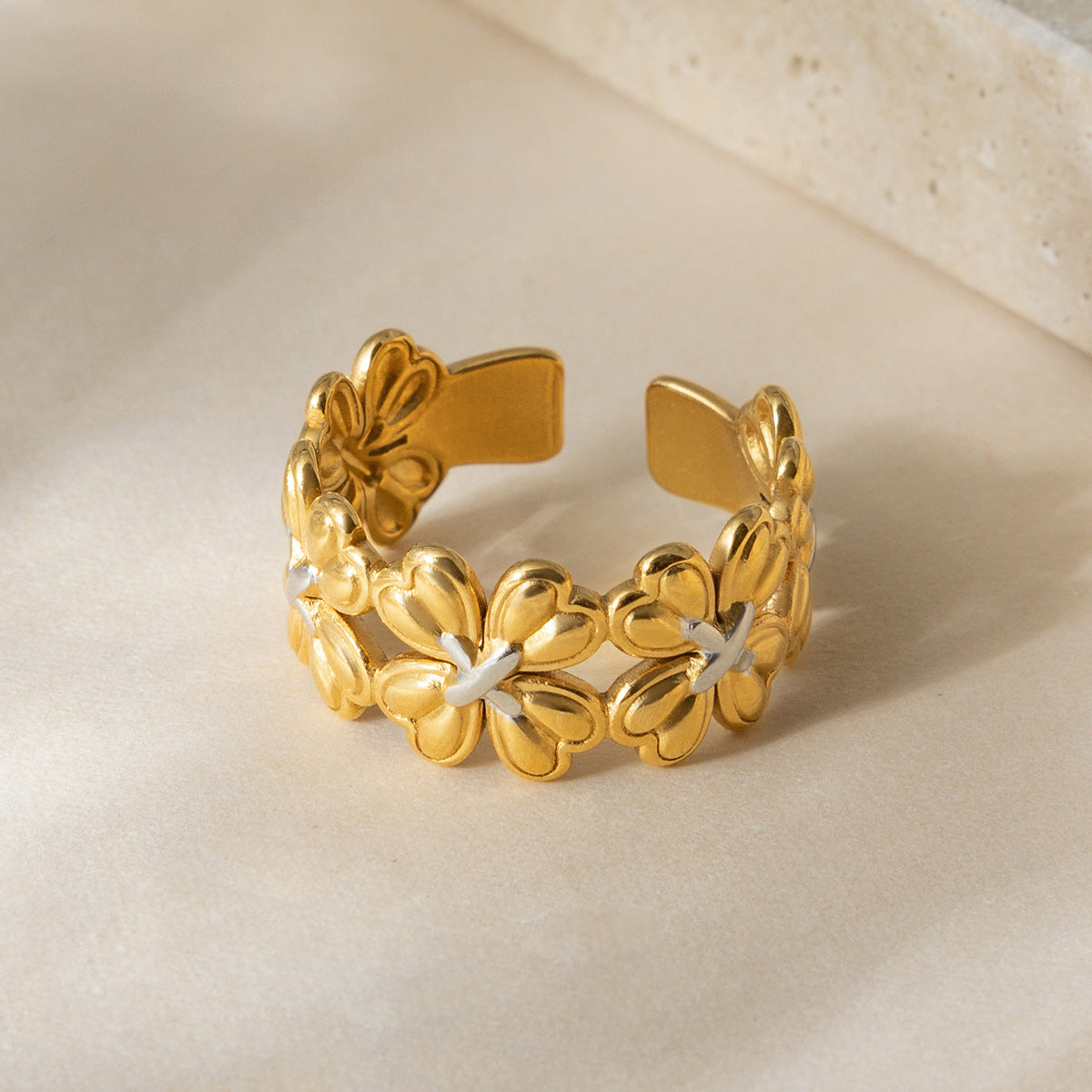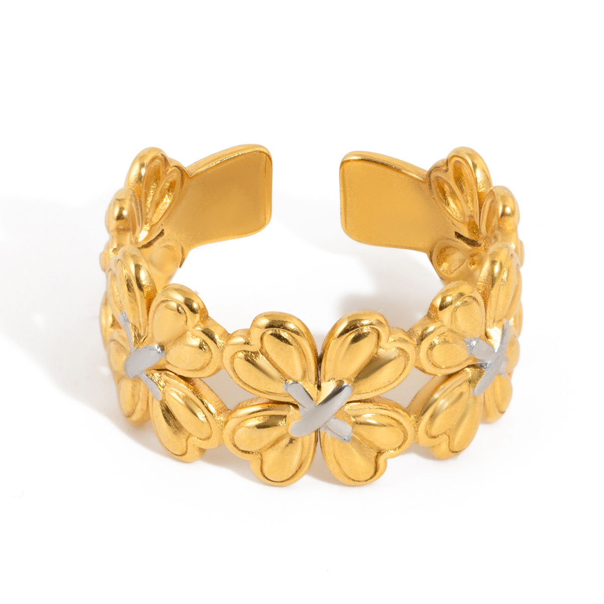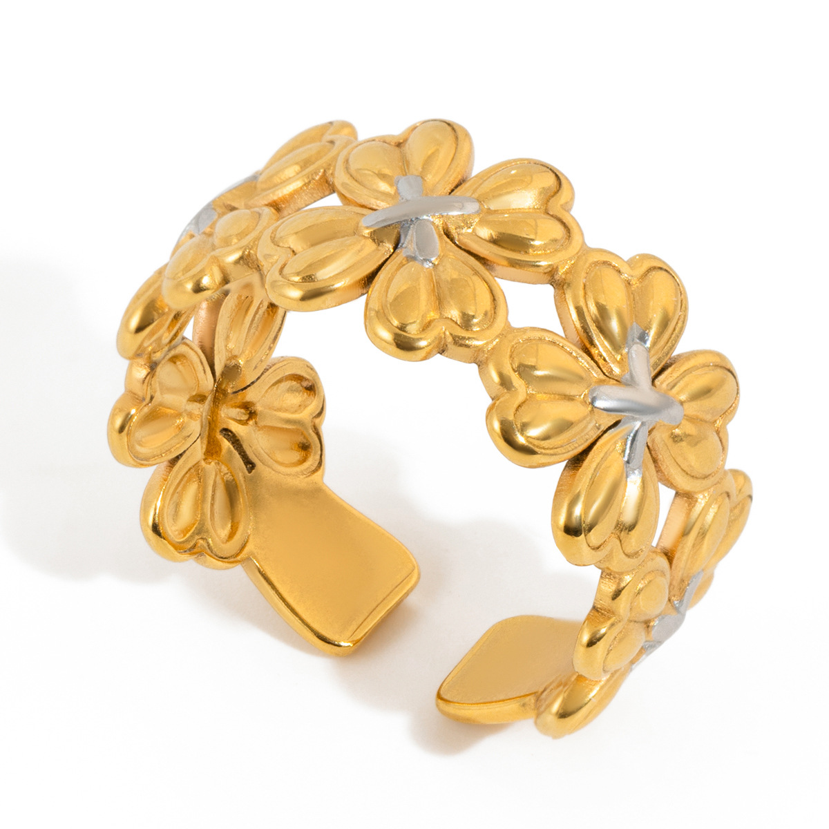 B廠 鈦鋼鍍18K金| 四葉草拼色開口戒指 批發 折扣@洽客服 26.01.W2「JDR0410008-PS」