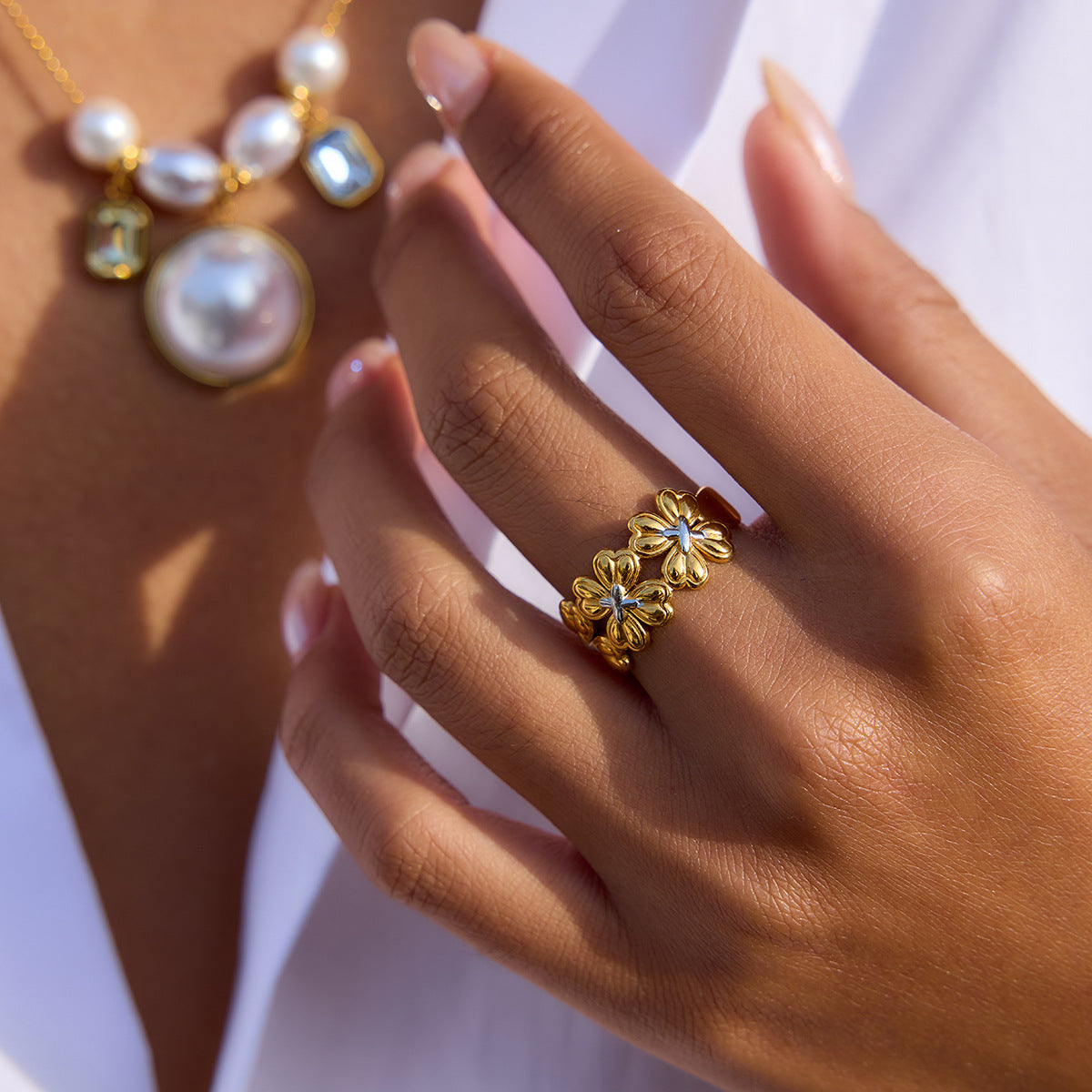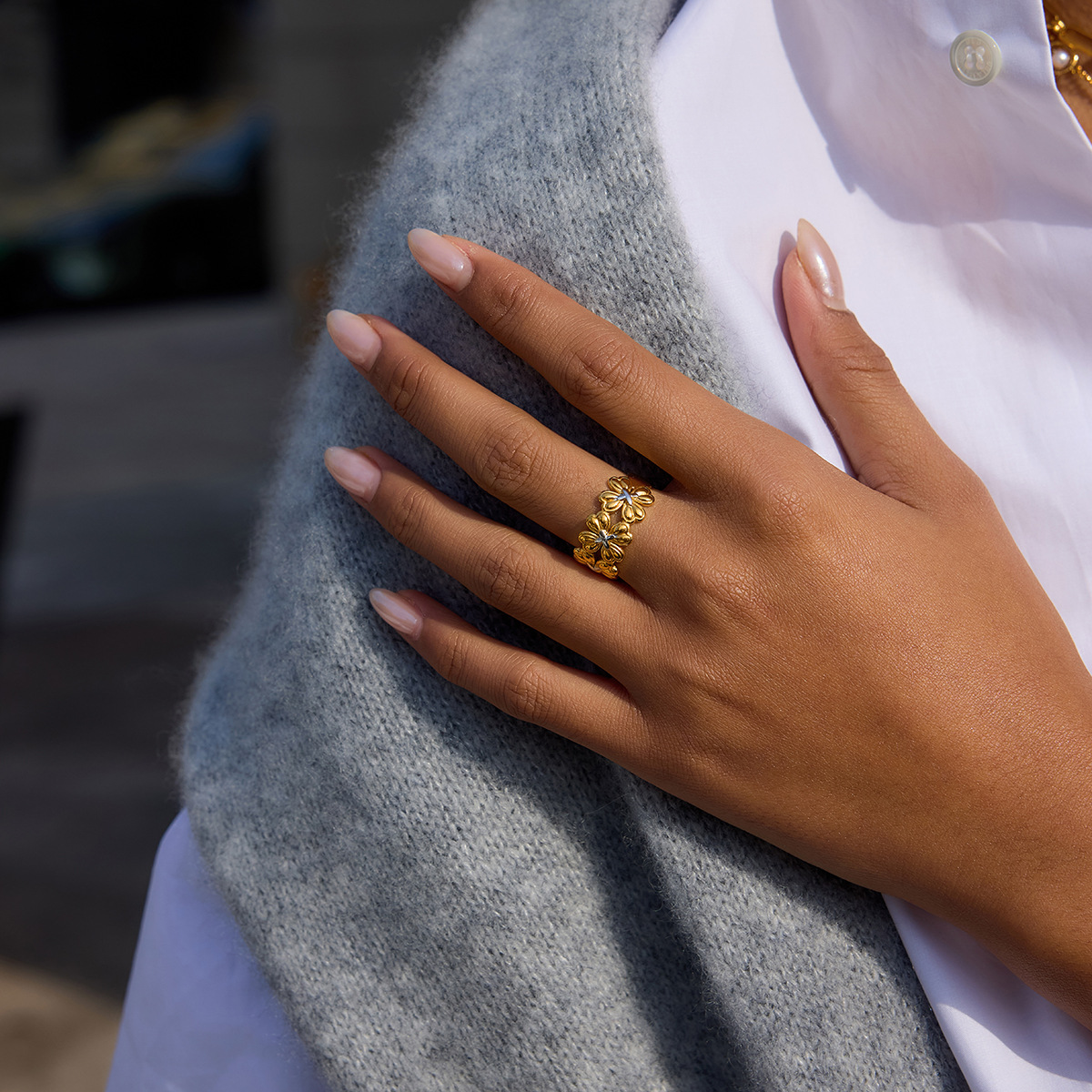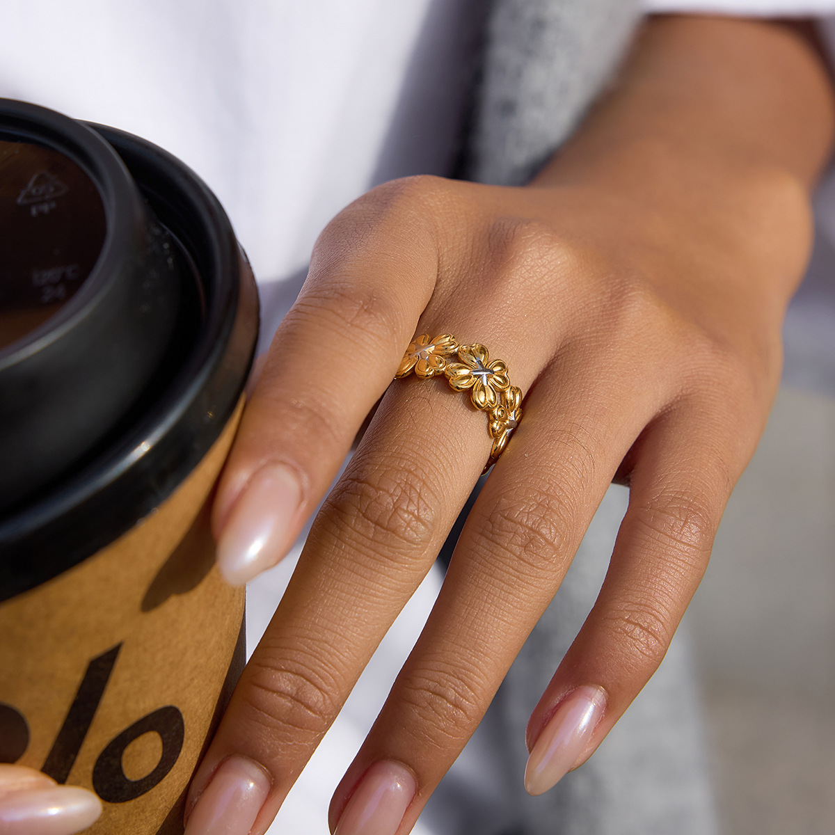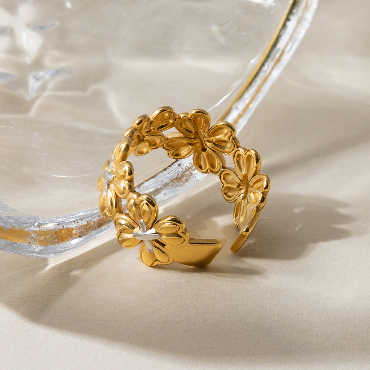 B廠 鈦鋼鍍18K金| 四葉草拼色開口戒指 批發 折扣@洽客服 26.01.W2「JDR0410008-PS」
