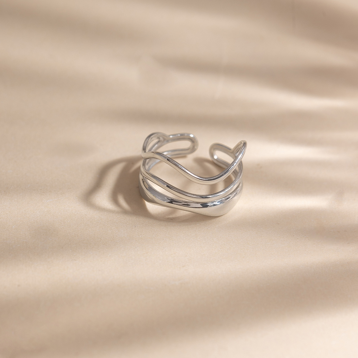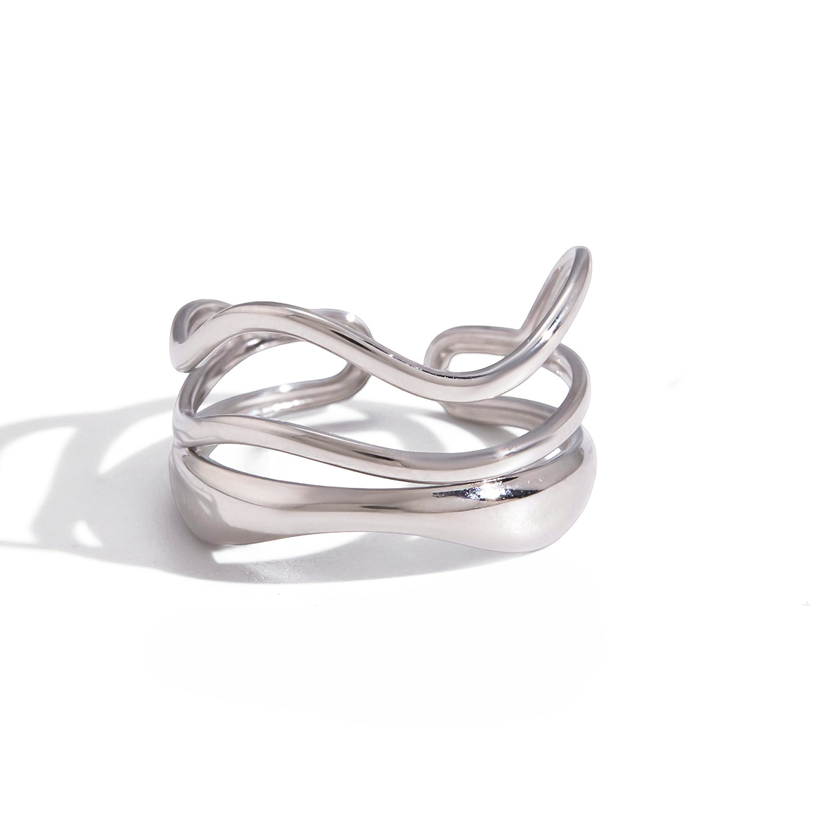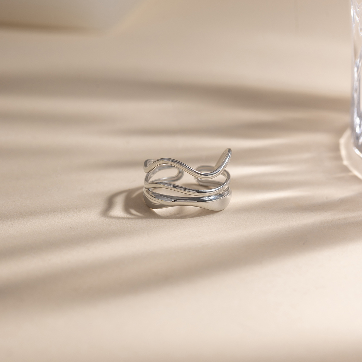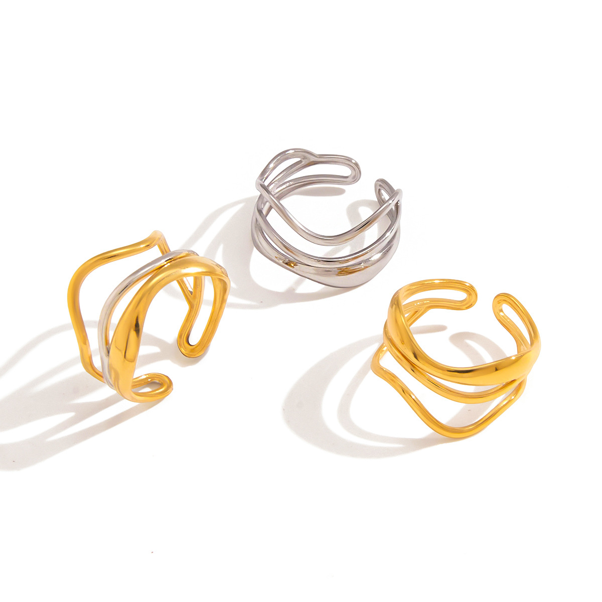 B廠 歐美款多層水波紋鋼色鈦鋼鍍18K金戒指批發 折扣@洽客服 26.03.W2「JDRW2305076-SL」