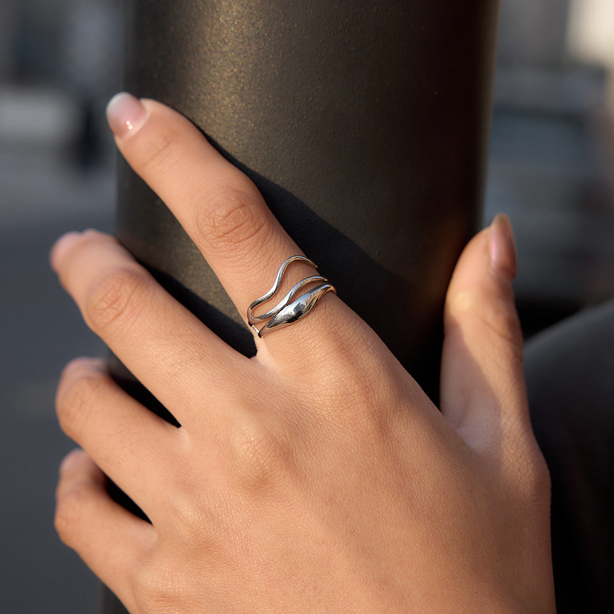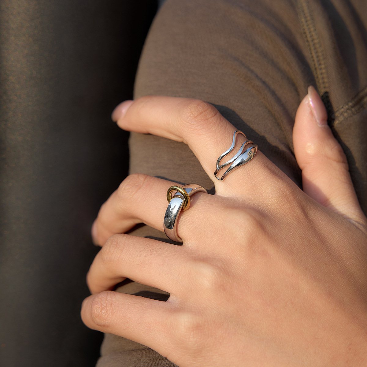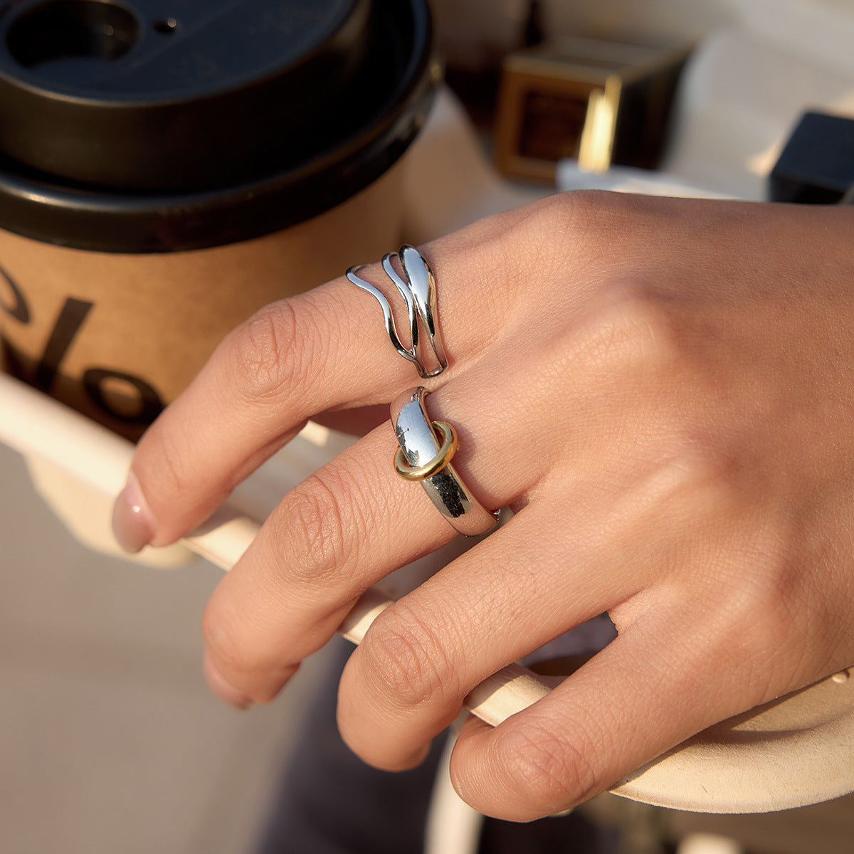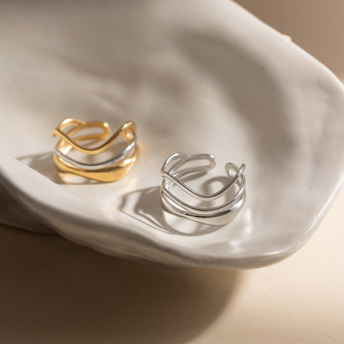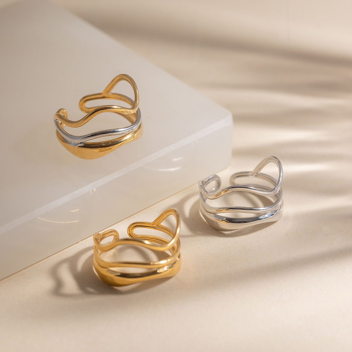 B廠 歐美款多層水波紋鋼色鈦鋼鍍18K金戒指批發 折扣@洽客服 26.03.W2「JDRW2305076-SL」
