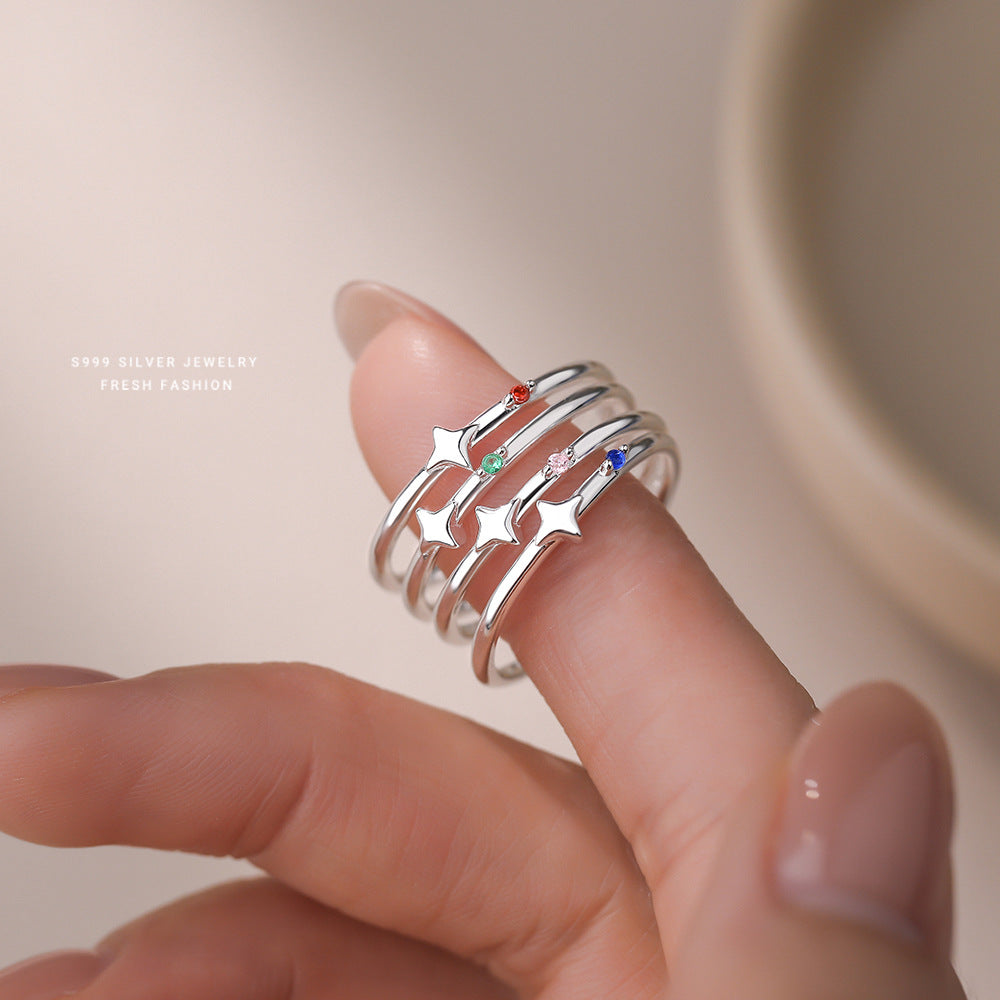 C廠 韓國韓系極簡彩鋯細圈芒星S999純銀戒指 批發 折扣@洽客服 25.10.W1「K2351」