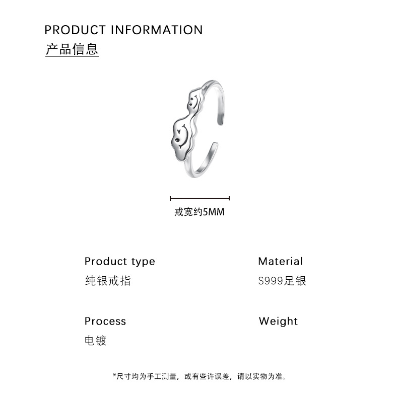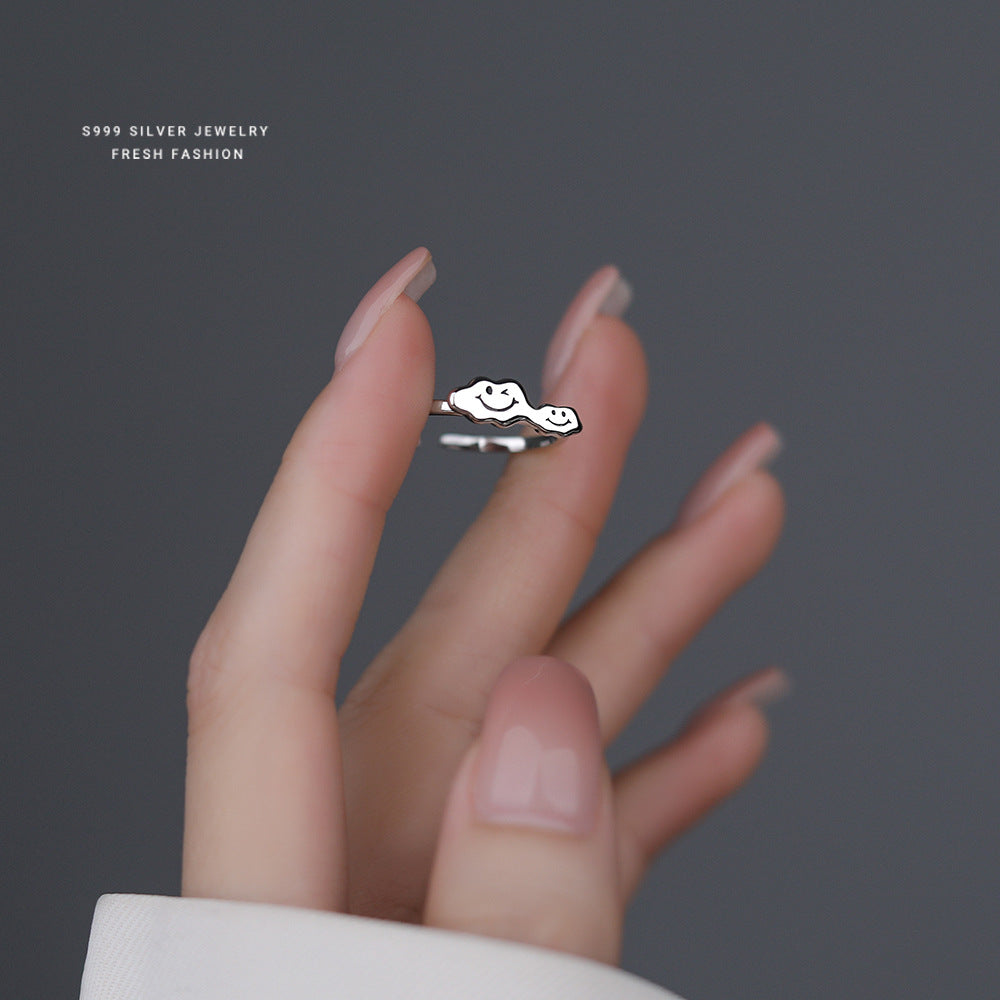C廠 韓國韓版笑臉雲朵表情S999純銀戒指 批發 折扣@洽客服 25.11.W3「K2414」