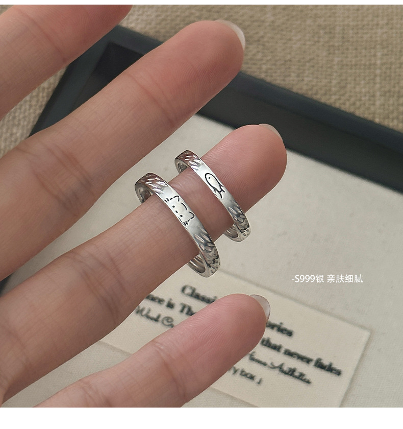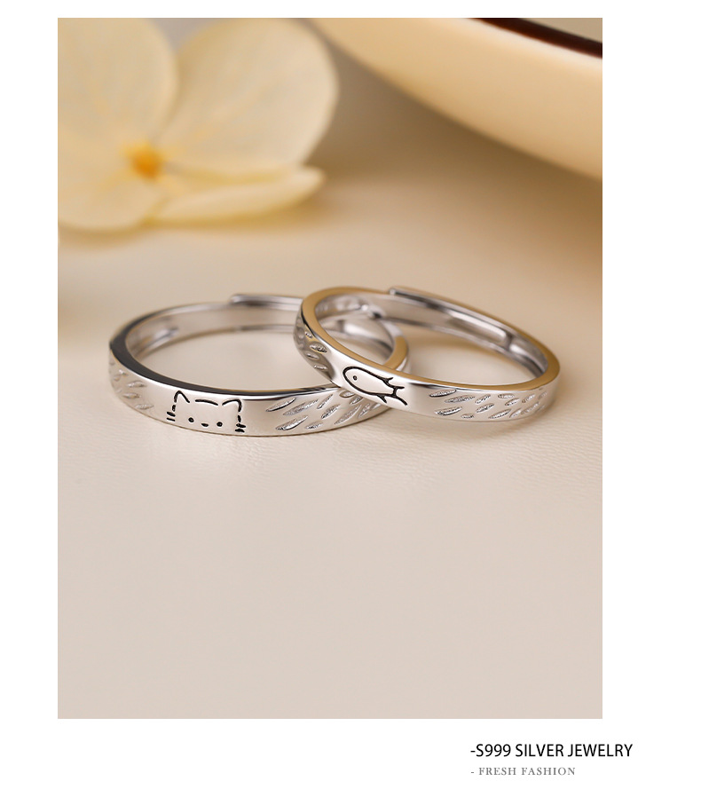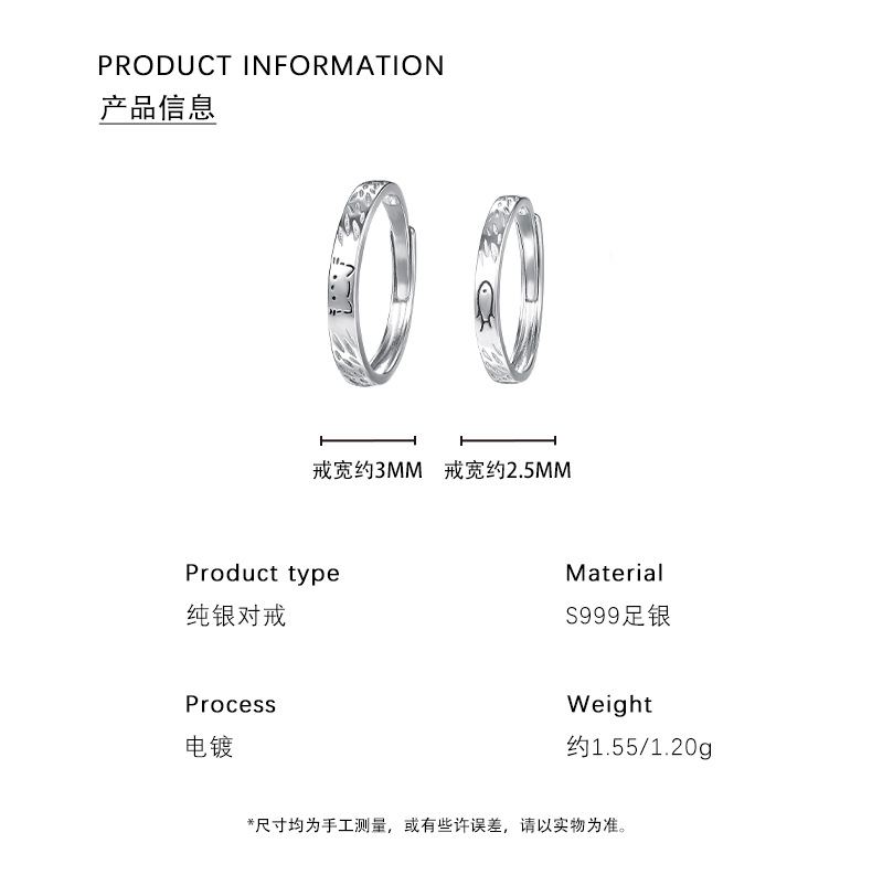 C廠 S999純銀|韓國韓版貓與魚情侶對戒 批發 折扣@洽客服 26.01.W3「K2475 K2476」