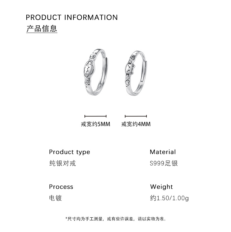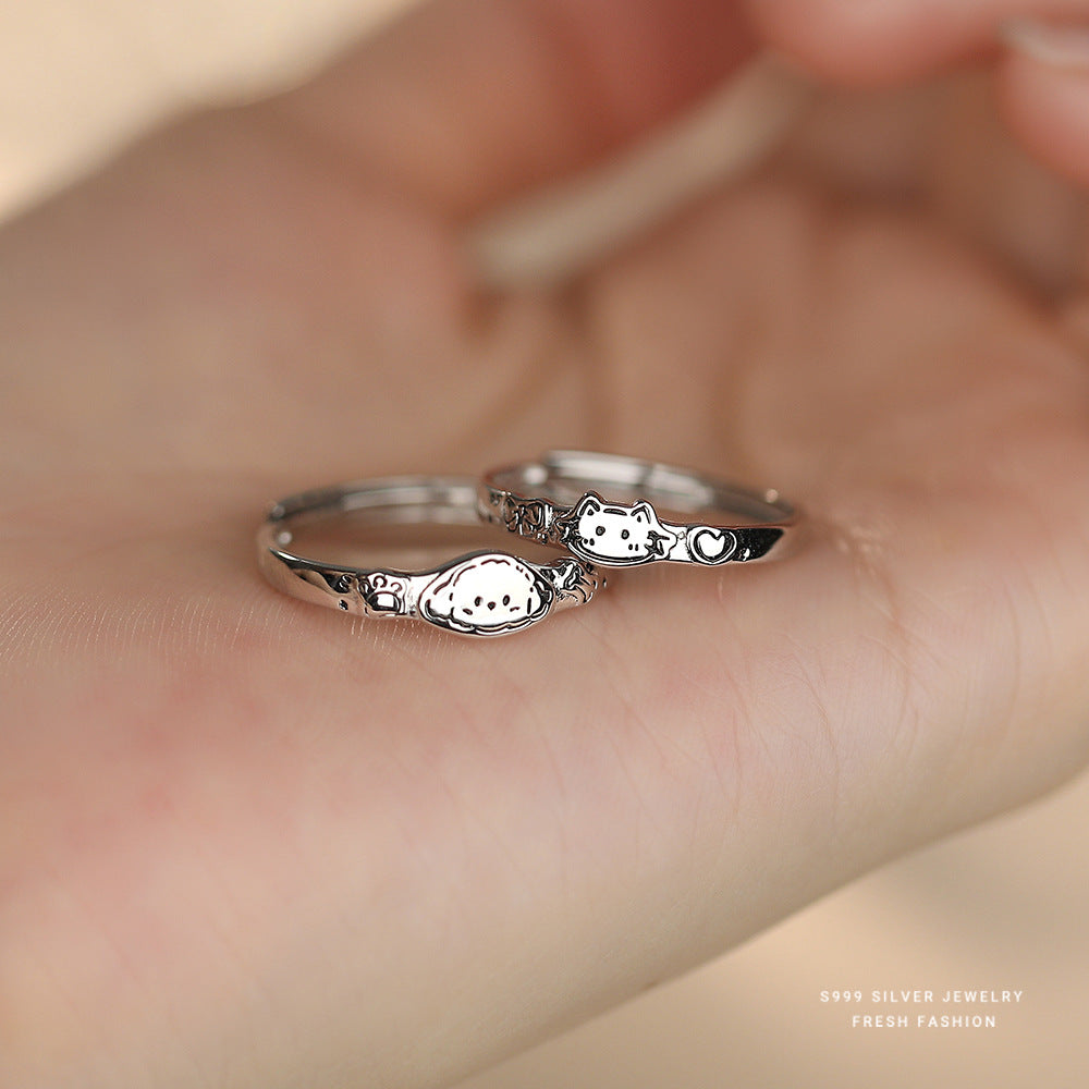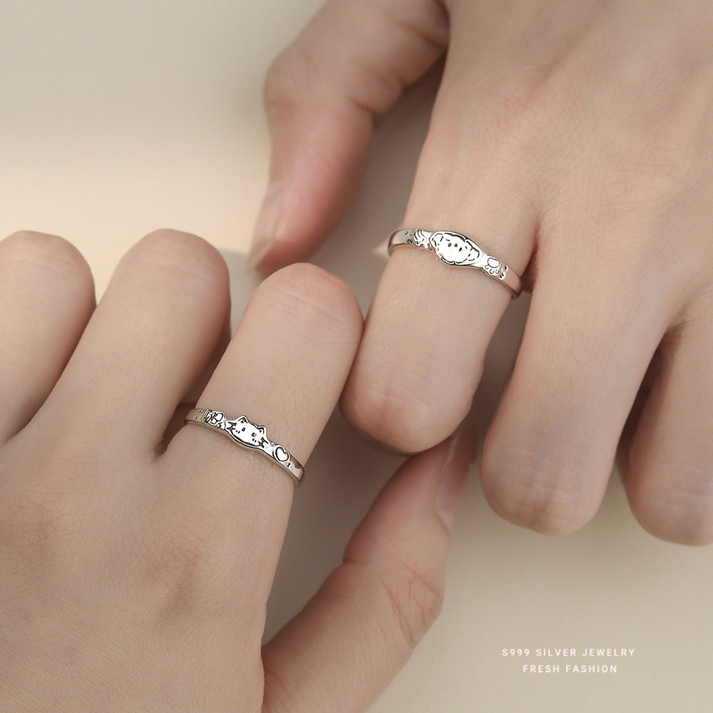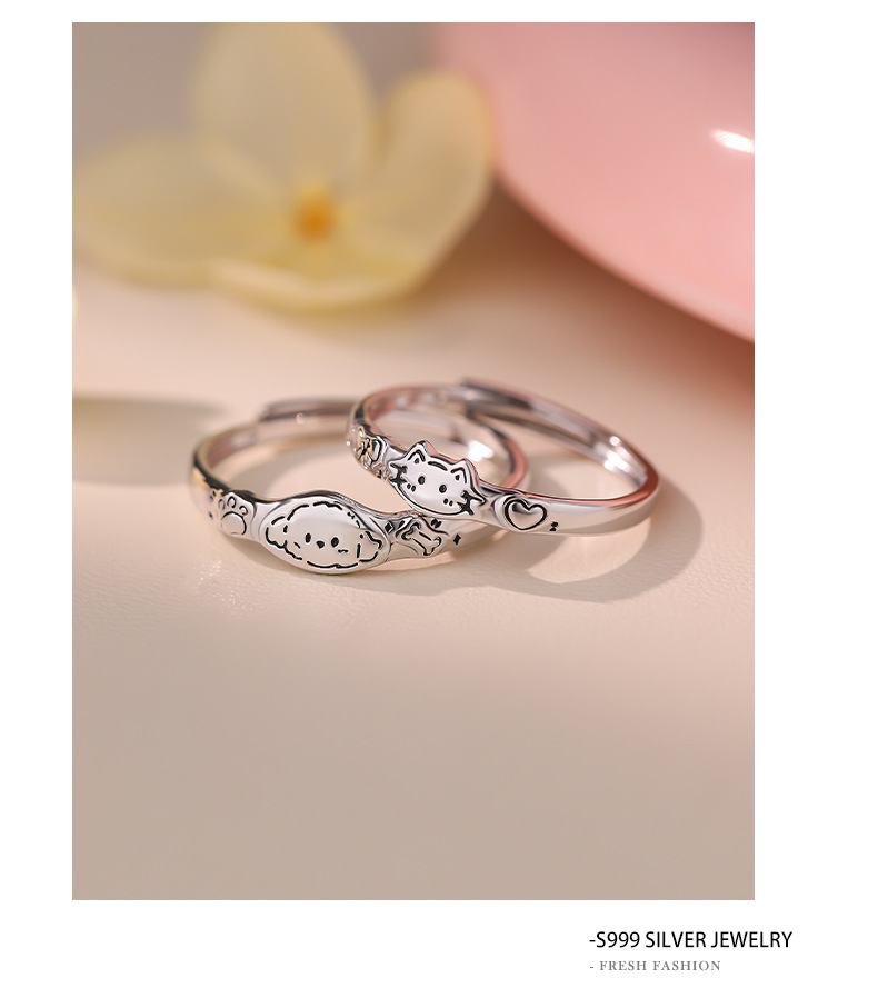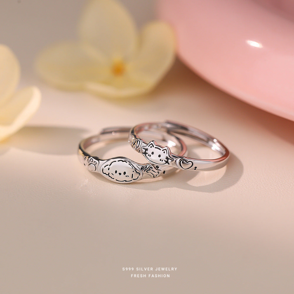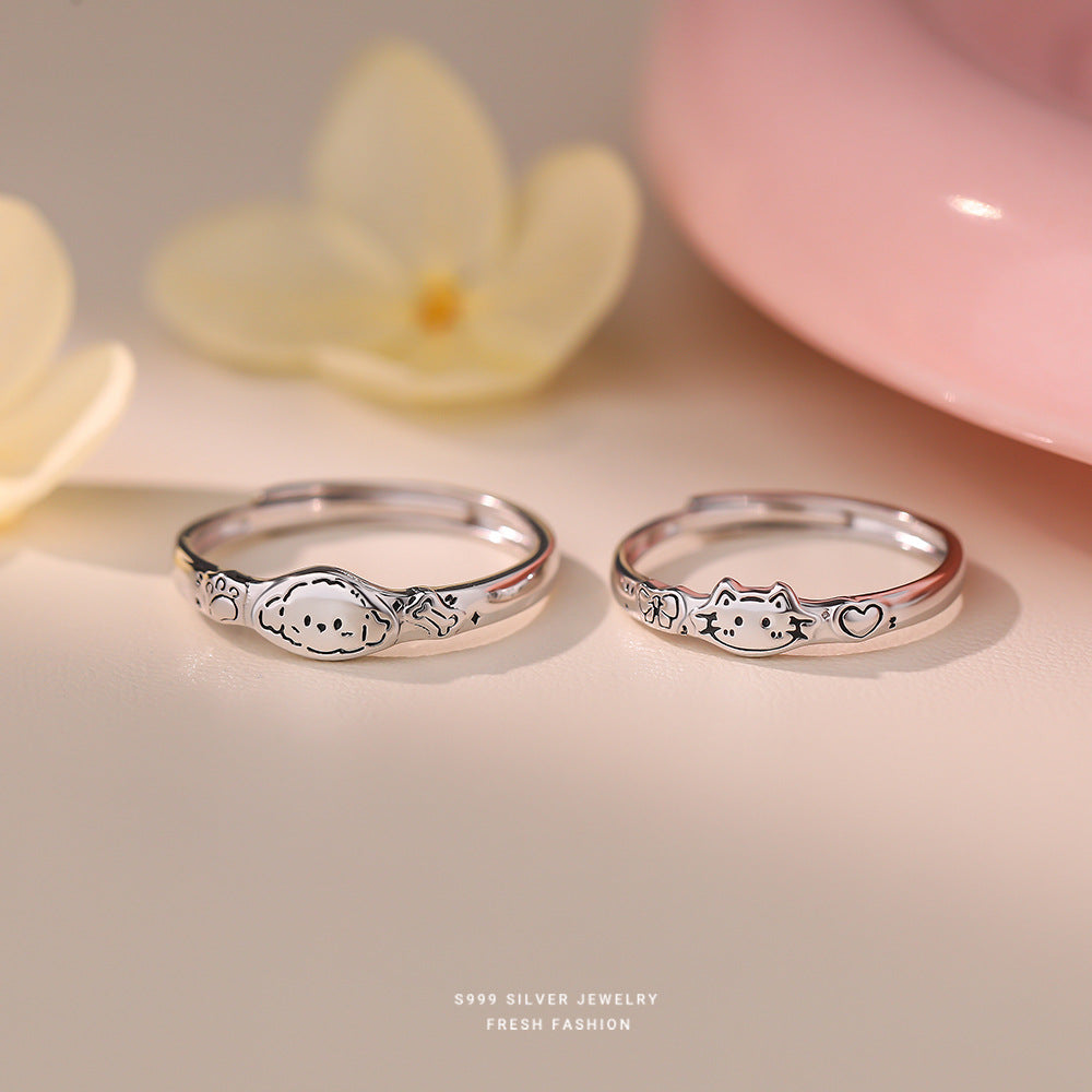C廠 S999純銀|韓國韓版可愛萌趣貓狗情侶戒指 26.02.W1「K2477 K2478」