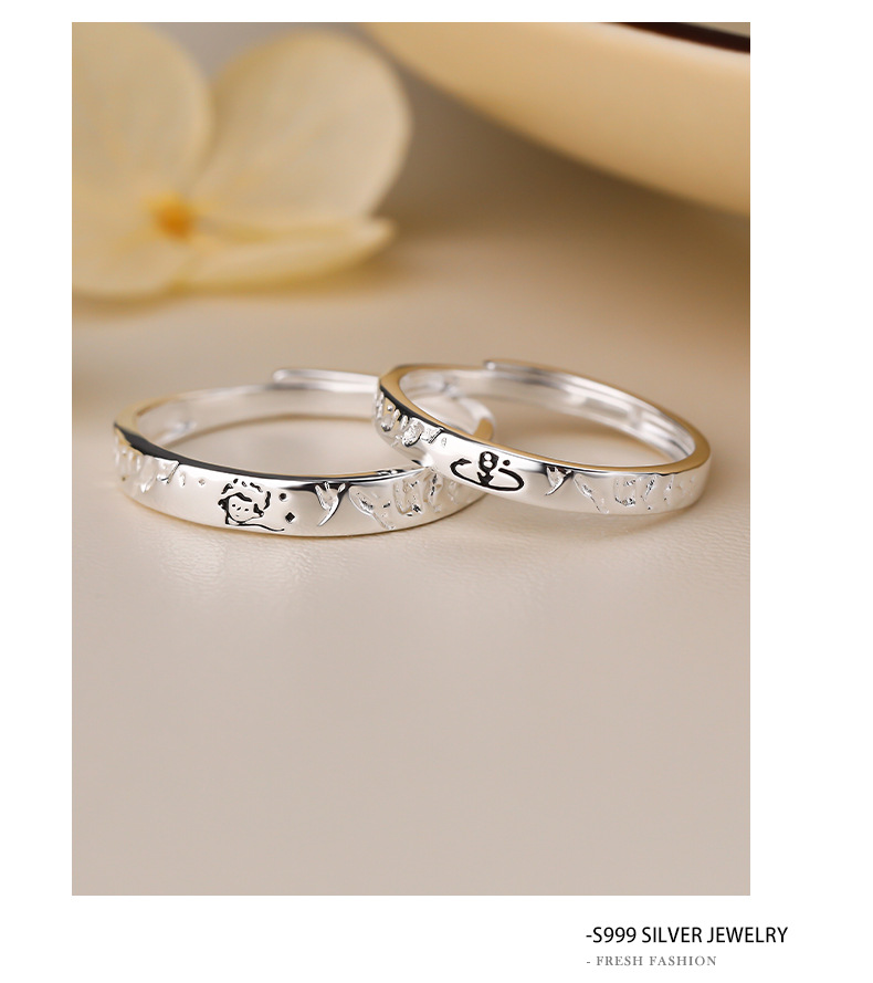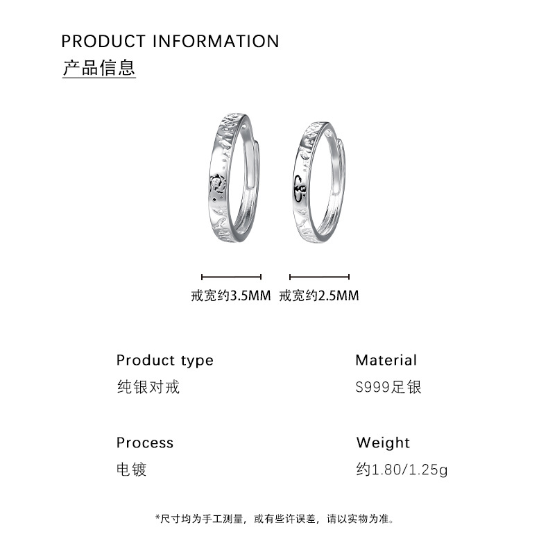 C廠 S999純銀|韓國韓版小王子與玫瑰花情侶對戒 批發 折扣@洽客服 26.01.W3「K2479」