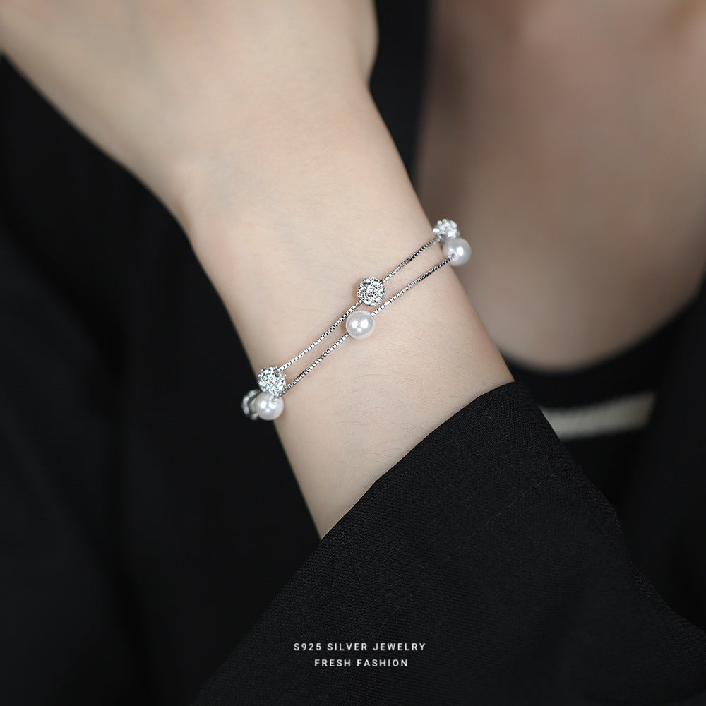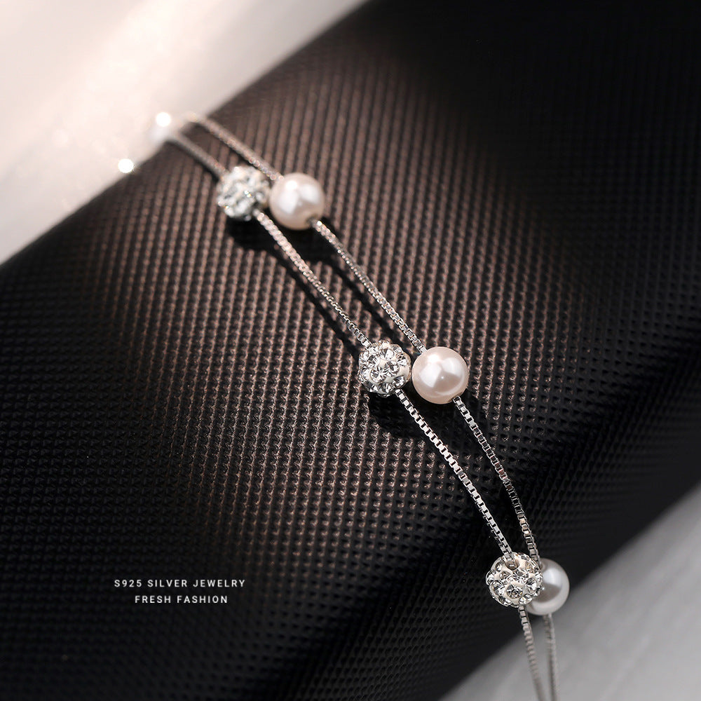 C廠 韓國韓系滿天星珍珠雙層疊戴S925純銀手鍊 批發 折扣@洽客服 25.10.W1「L1034」