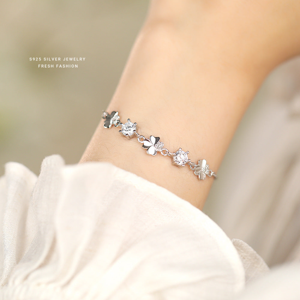 C廠 韓國韓系鋯石四葉草S925純銀手鍊 批發 折扣@洽客服 25.10.W1「L1044_」