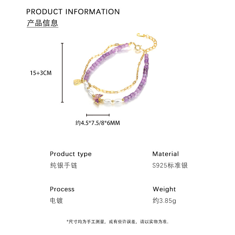 C廠 韓國韓版天然紫水晶S925純銀手鍊 批發 折扣@洽客服 25.11.W3「L1198」