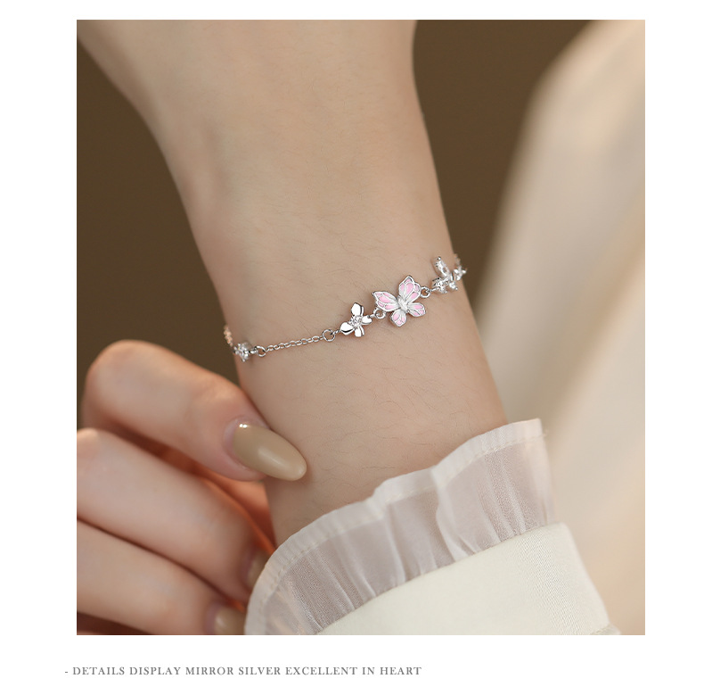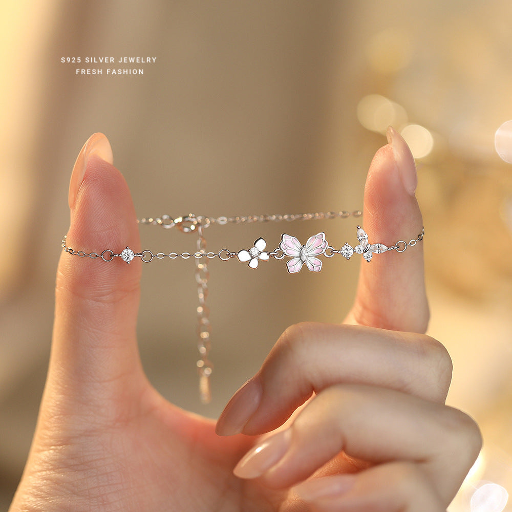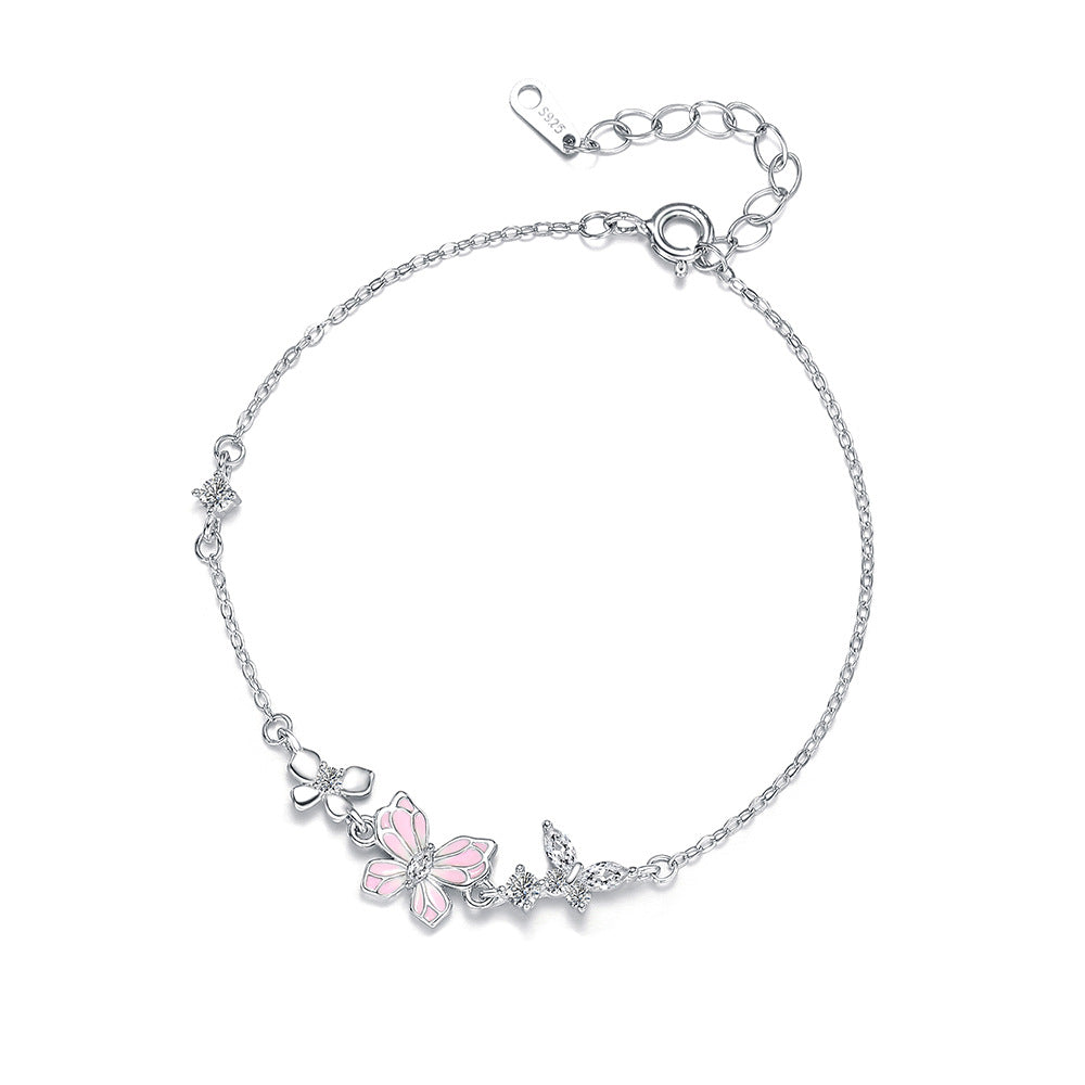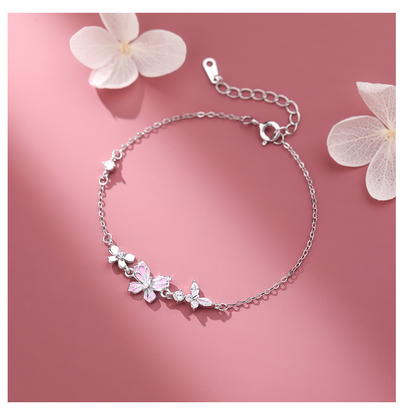 C廠 韓國韓版粉紅滴膠蝴蝶S925純銀手鍊 批發 折扣@洽客服 25.12.W2「L1237」