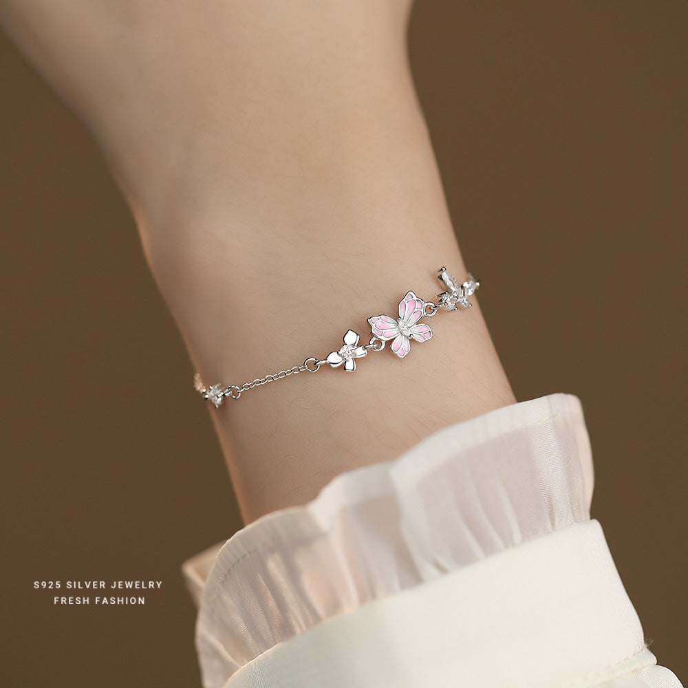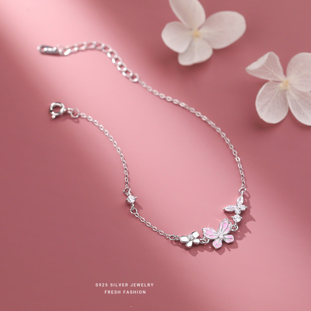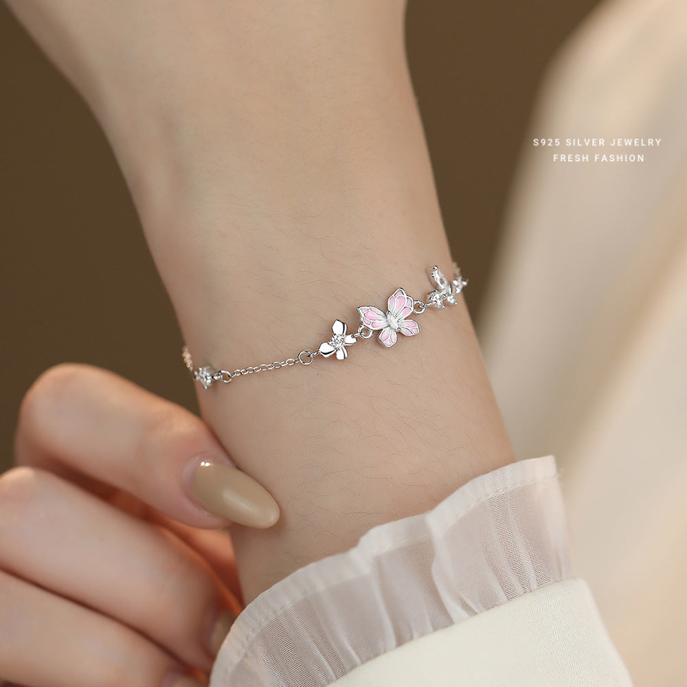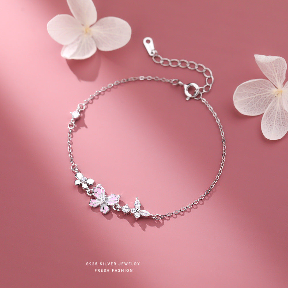 C廠 韓國韓版粉紅滴膠蝴蝶S925純銀手鍊 批發 折扣@洽客服 25.12.W2「L1237」