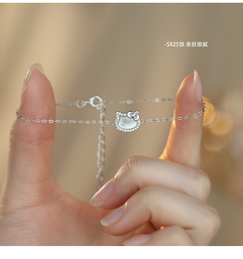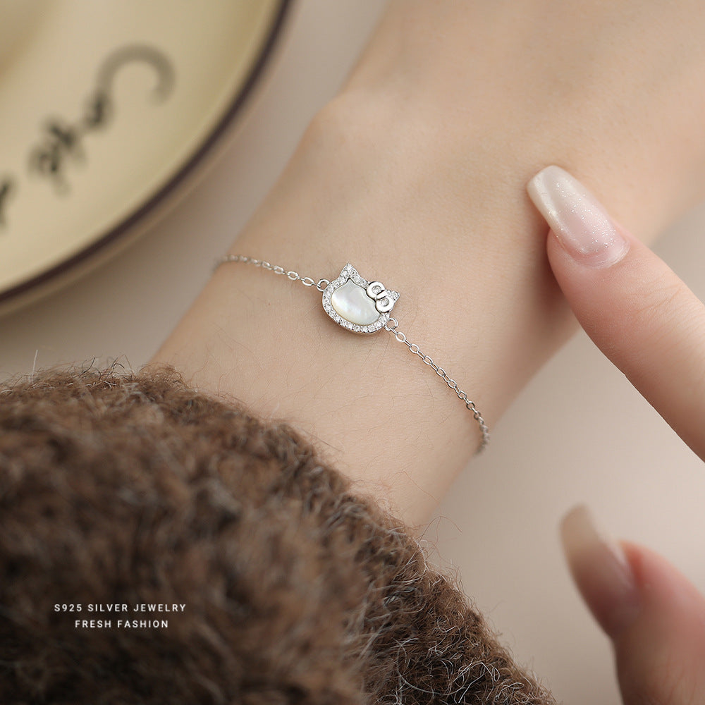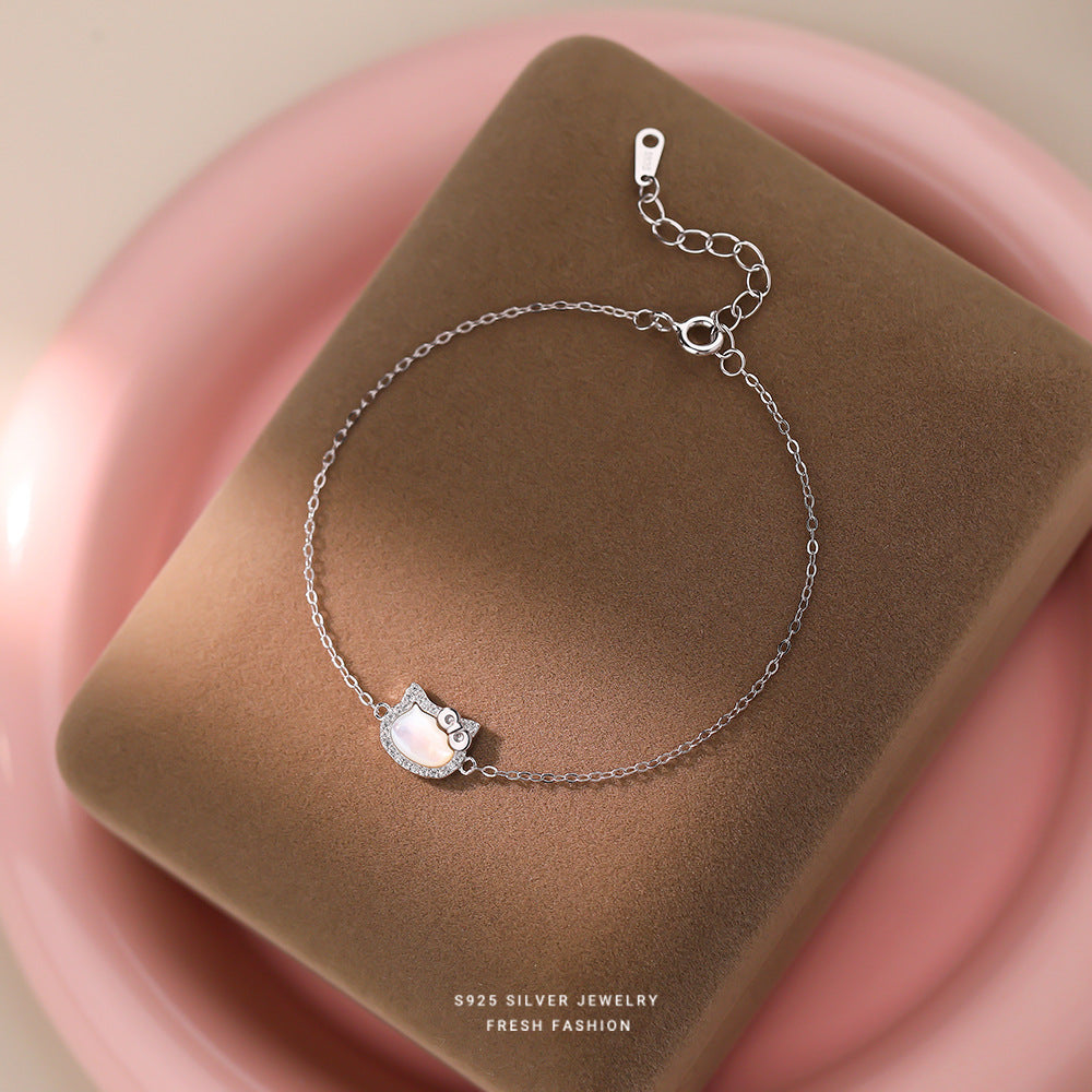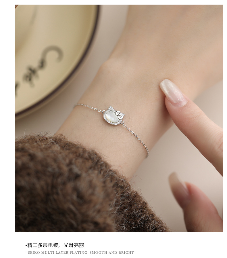 C廠 S925純銀|韓國韓版白貝母鑲鑽手鍊 26.02.W1「L1294」