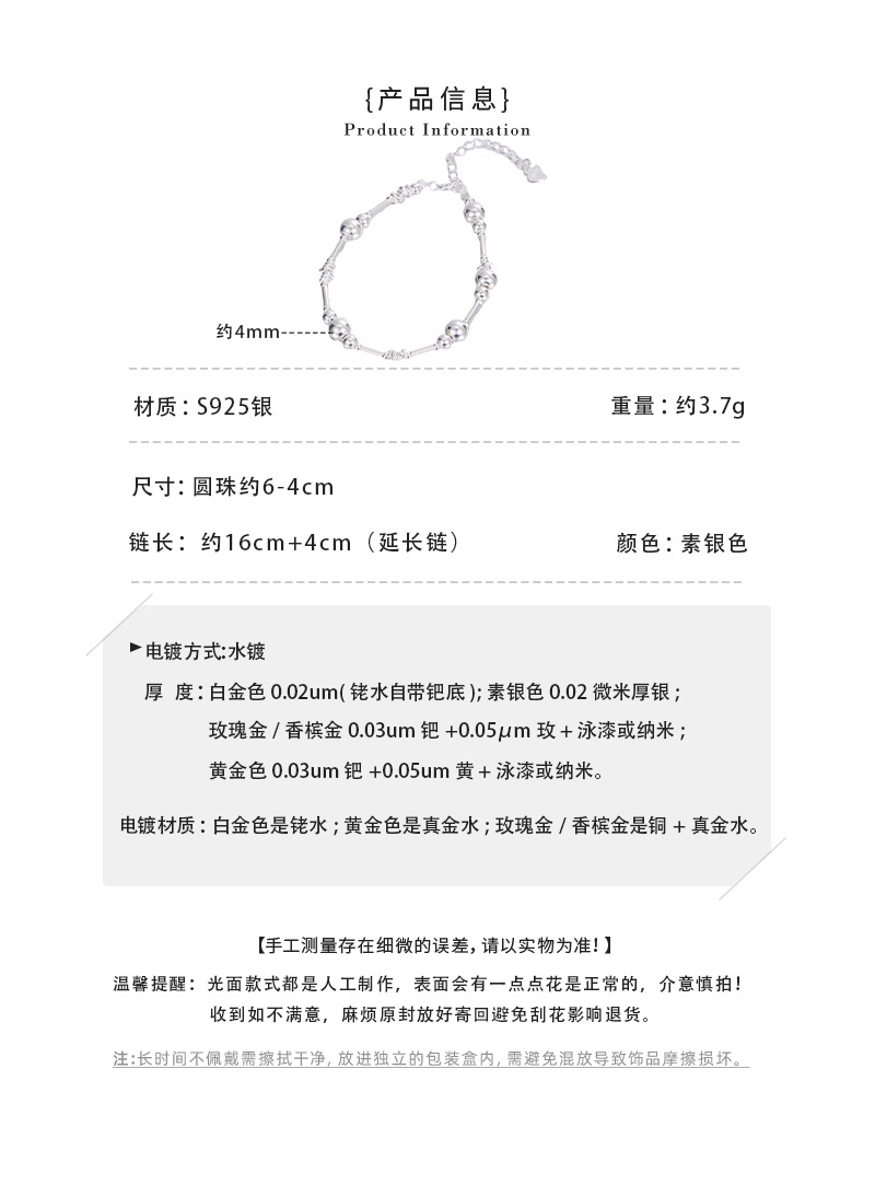 C2廠 韓國韓版圓珠S925純銀手鍊「SB4158」
