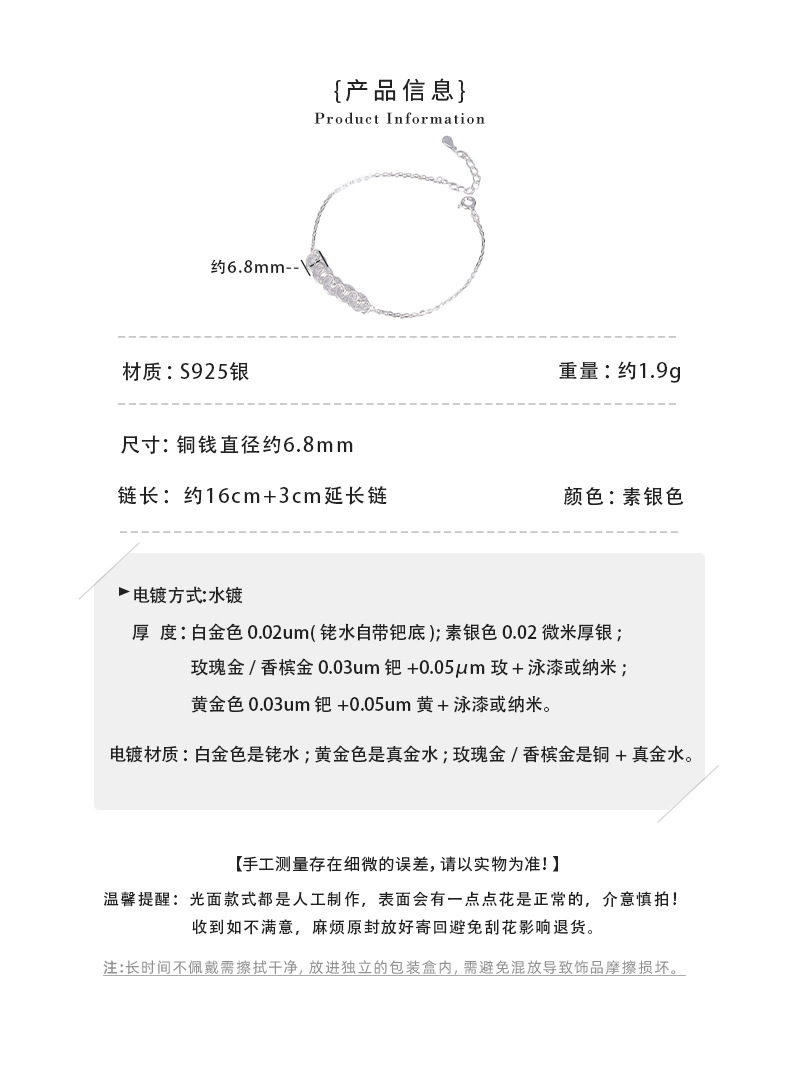 C2廠 韓國韓版閃光銅錢S925純銀手鍊 批發 折扣@洽客服 25.11.W3「SB4160」