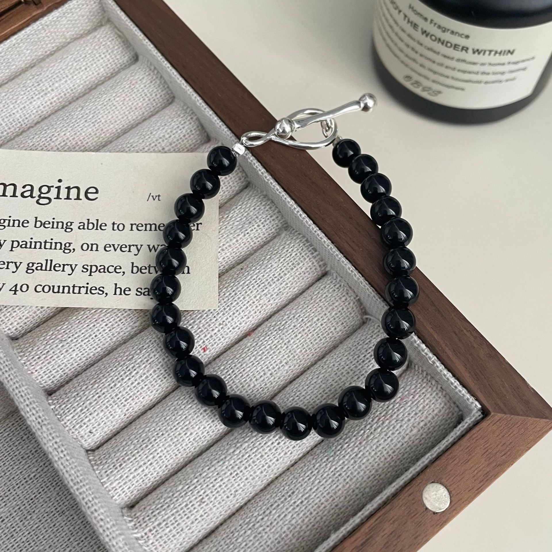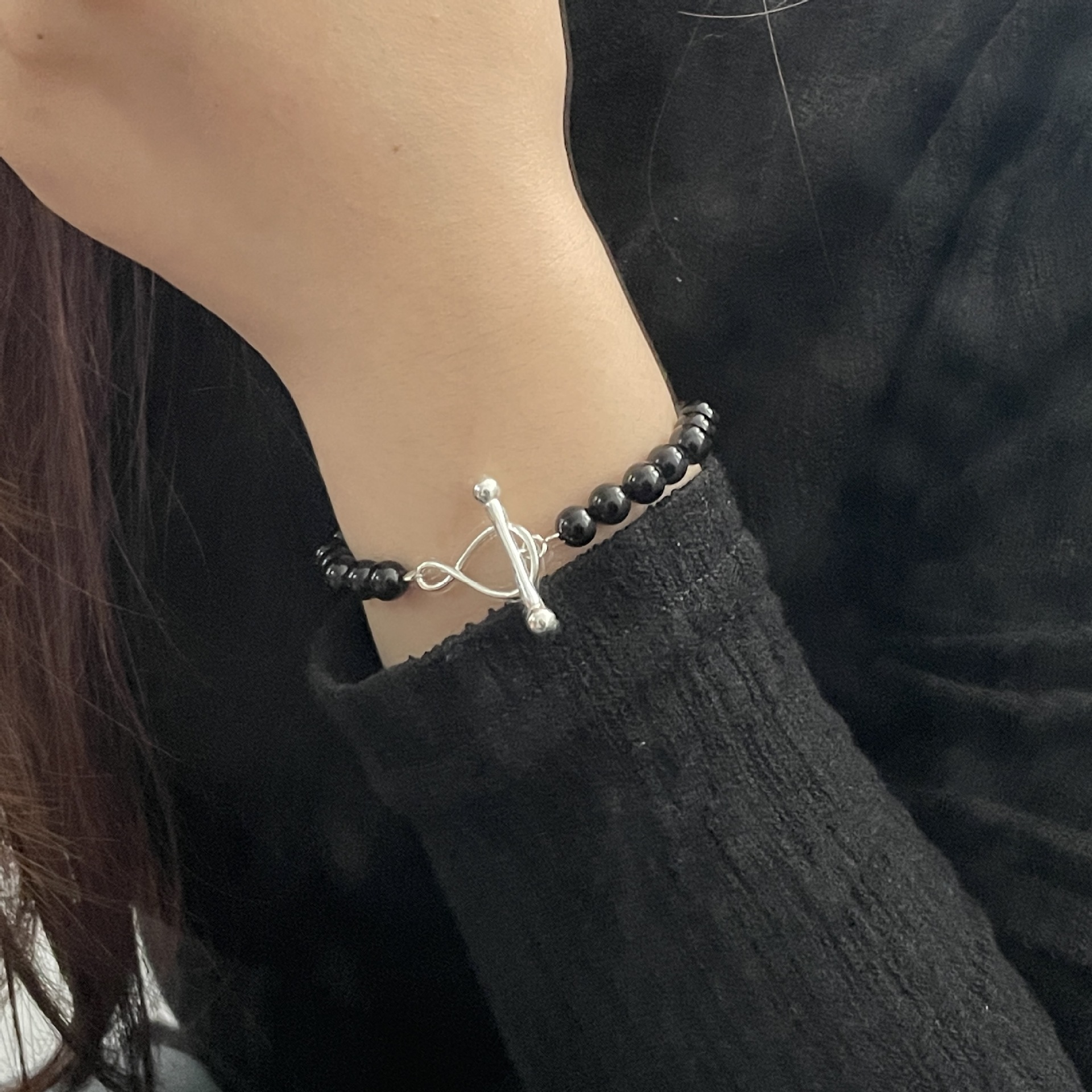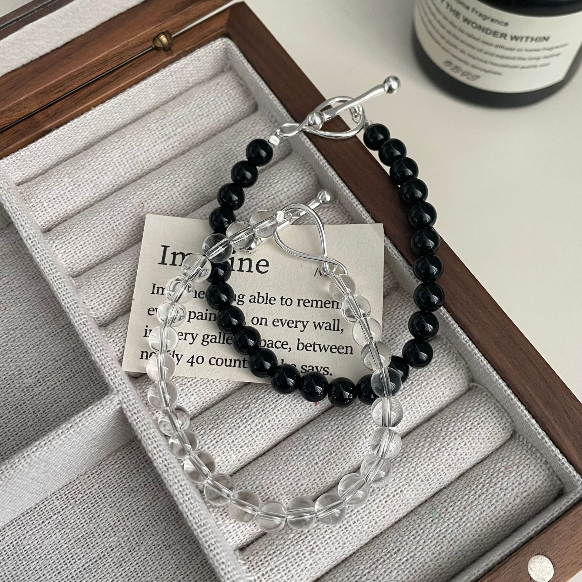 C2廠 韓國韓版白水晶黑瑪瑙S925純銀手鍊 「SB4177」