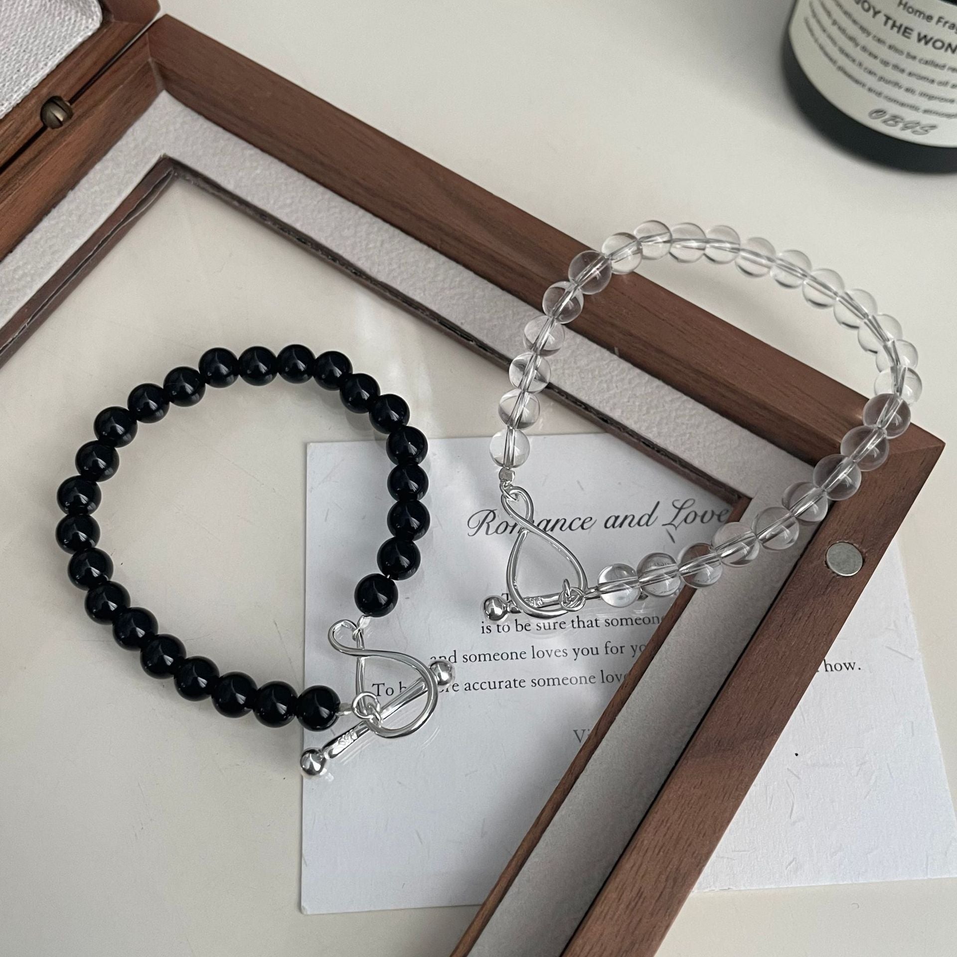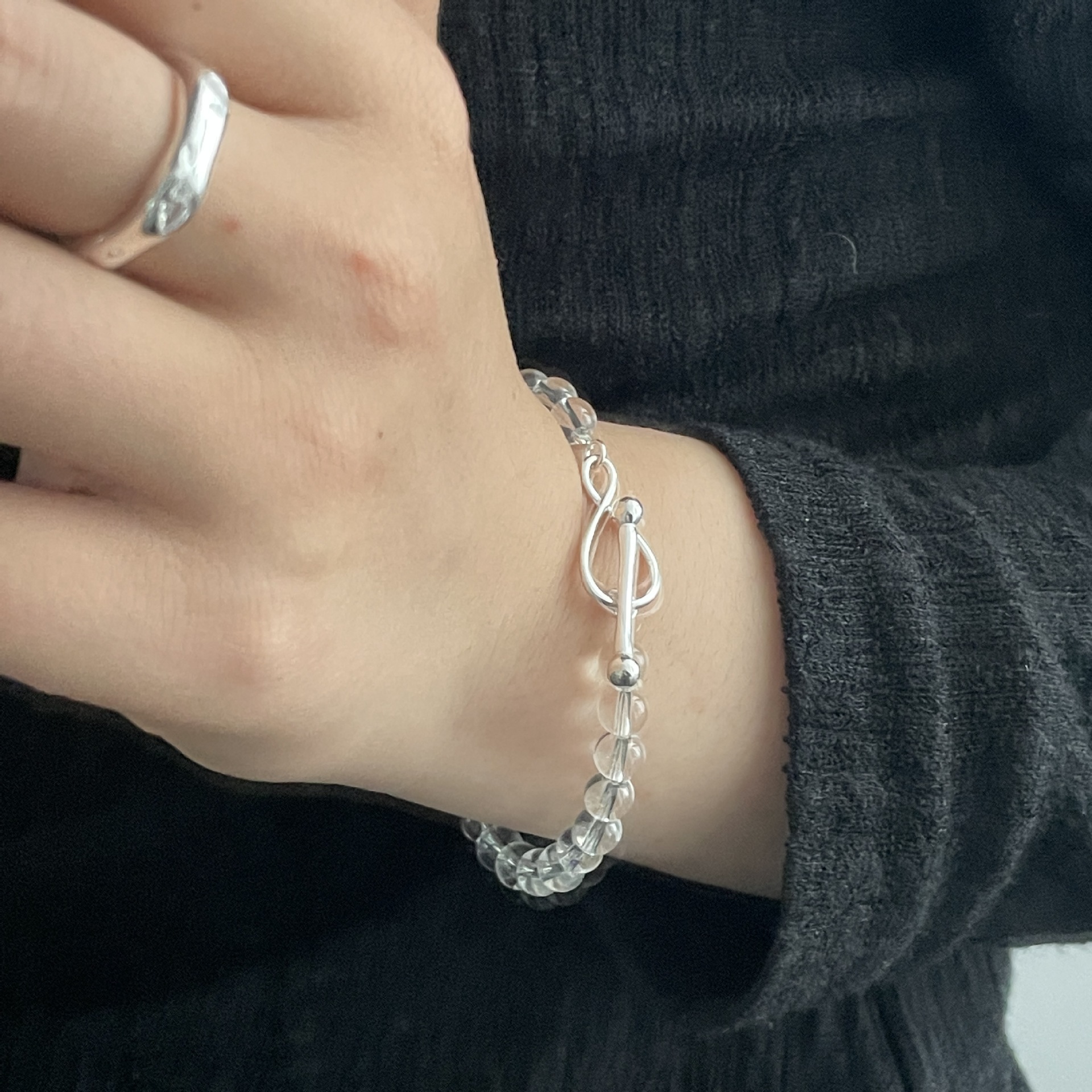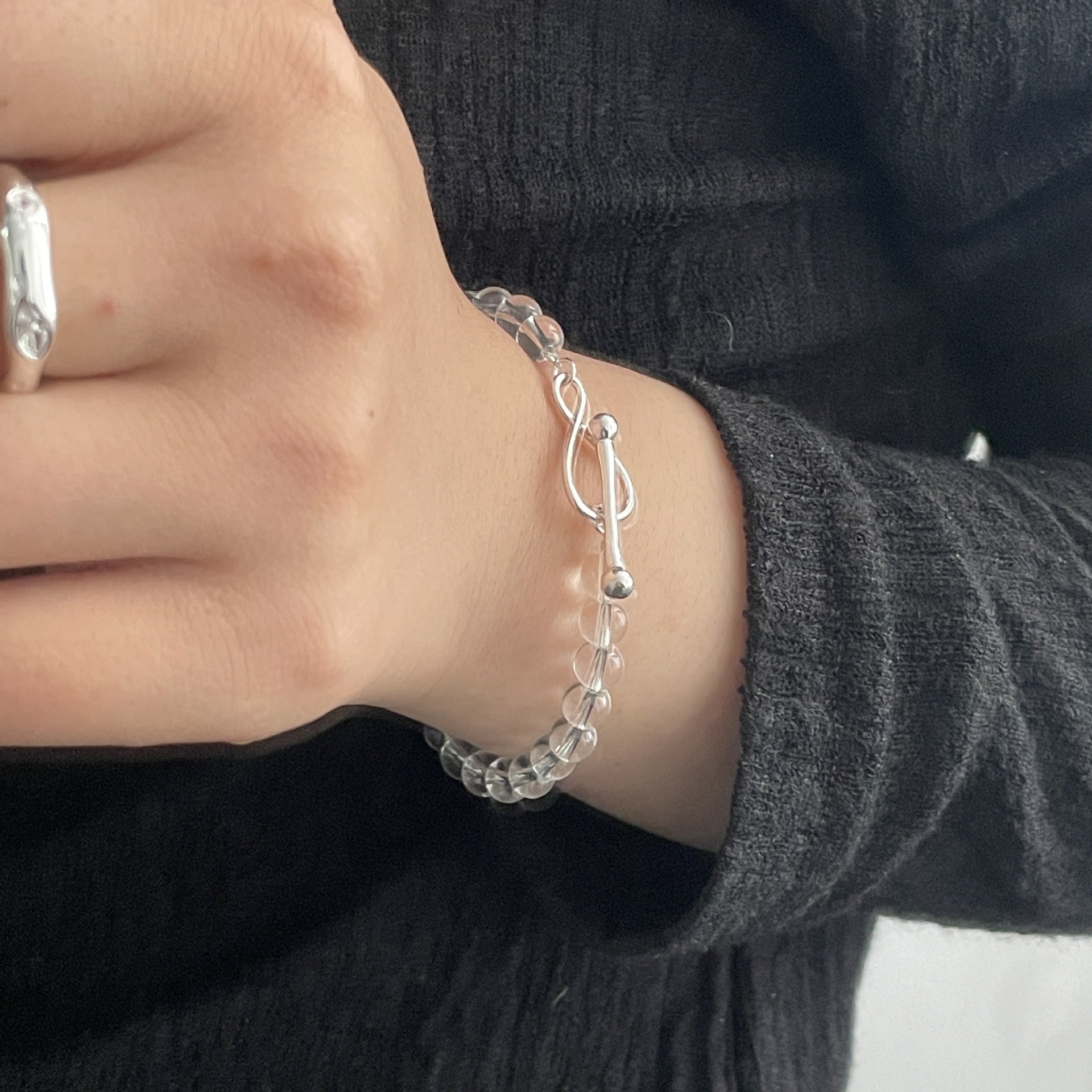 C2廠 韓國韓版白水晶黑瑪瑙S925純銀手鍊 「SB4177」
