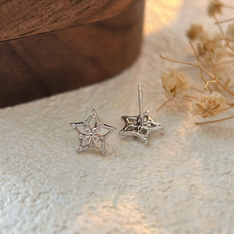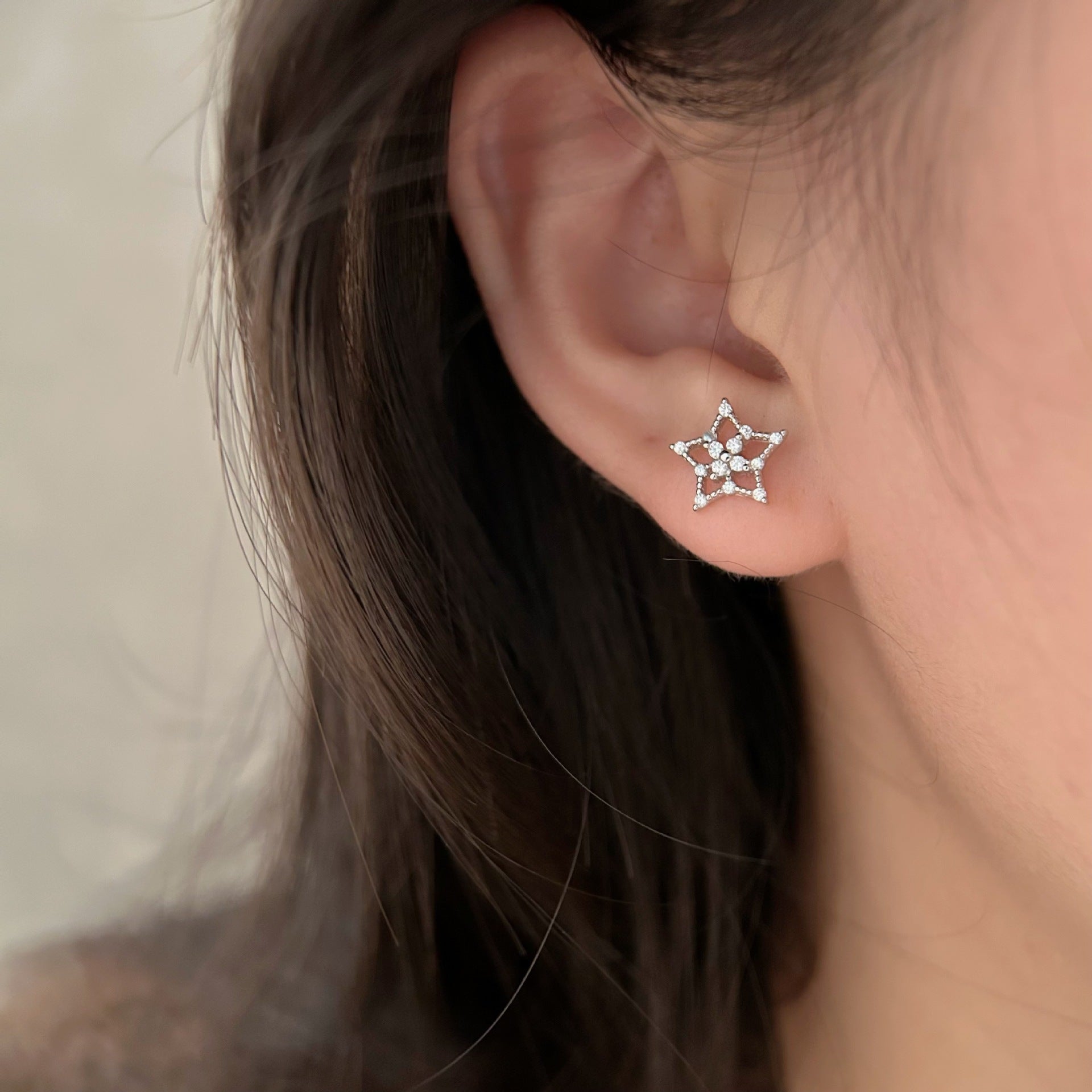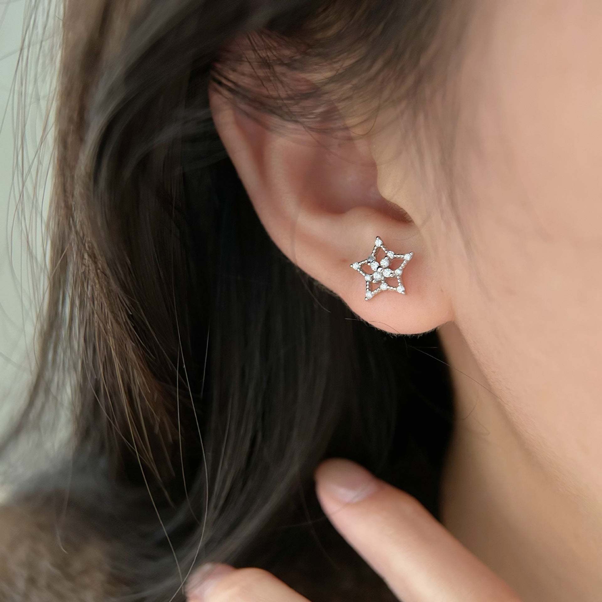 C3廠 韓國韓版鏤空五角星鑲嵌S999足銀耳環 批發 折扣@洽客服 25.08.W4「ses071」