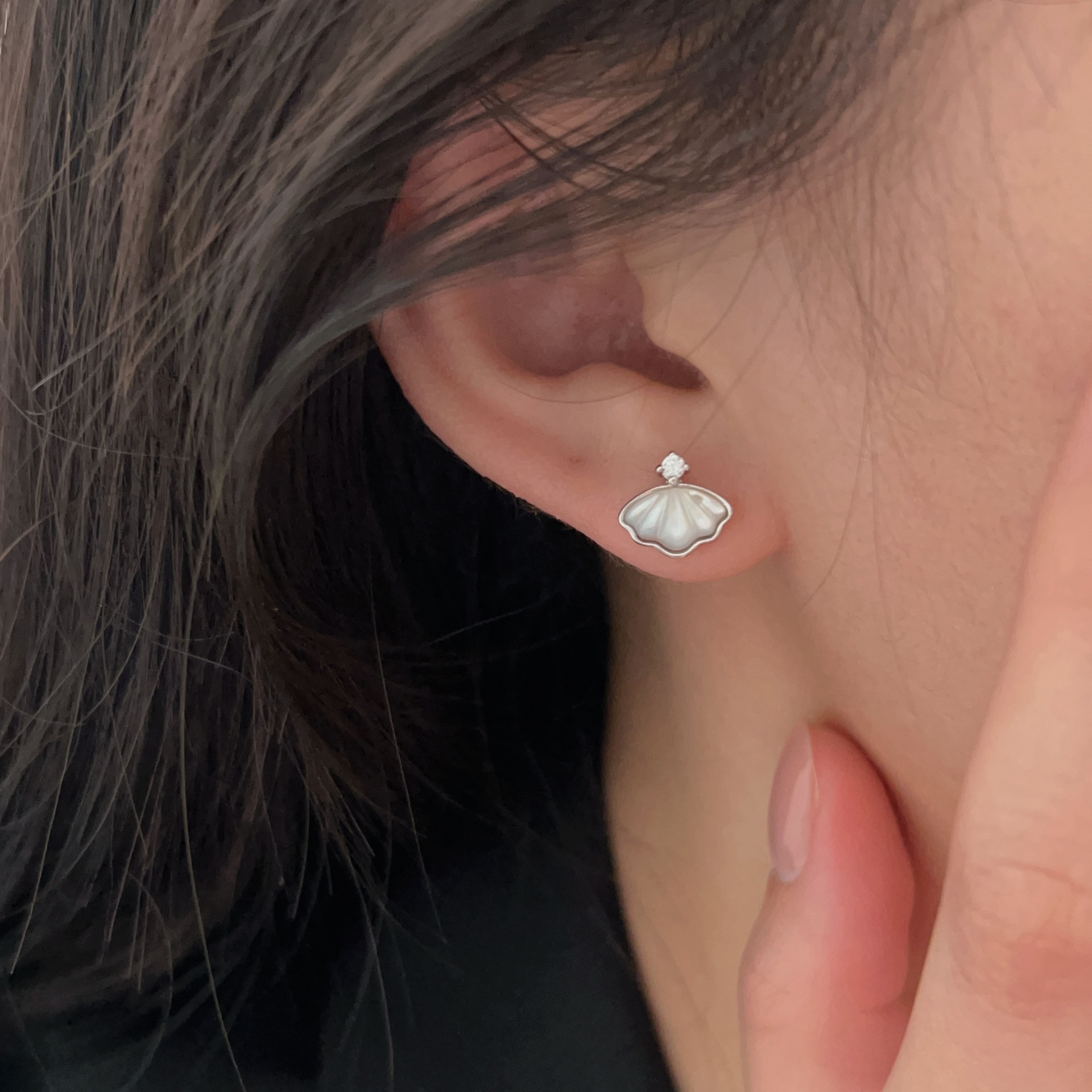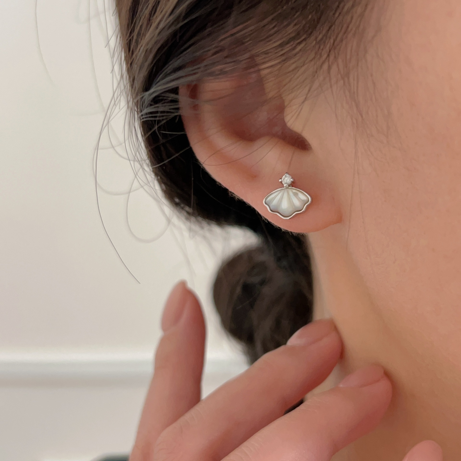 C3廠 韓國韓版優雅貝殼鑲嵌S999足銀耳環批發 折扣@洽客服 25.03.W2「ses106」