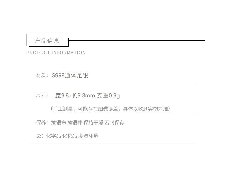 - 因台灣的氣候較為潮濕,若將合金類飾品暴露於空氣中會加速氧化,建議不配戴時將飾品分別收納至夾鏈袋內保存,避免接觸空氣後氧化。