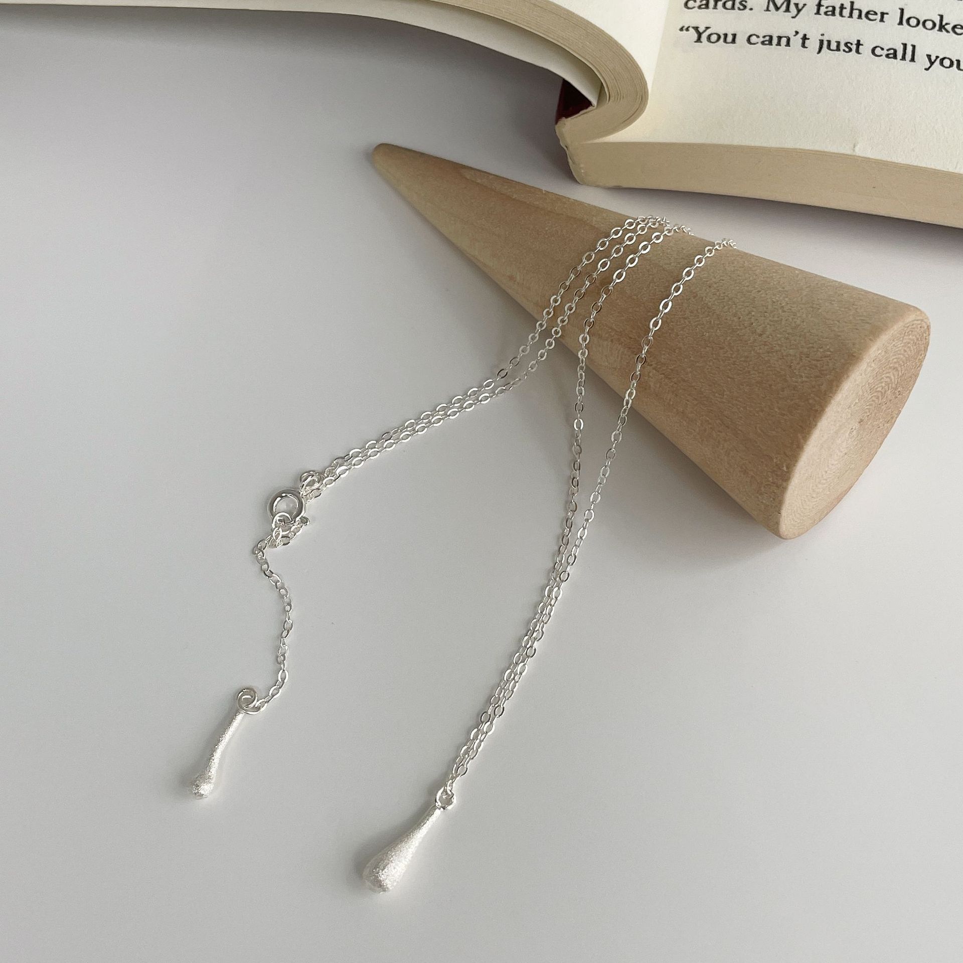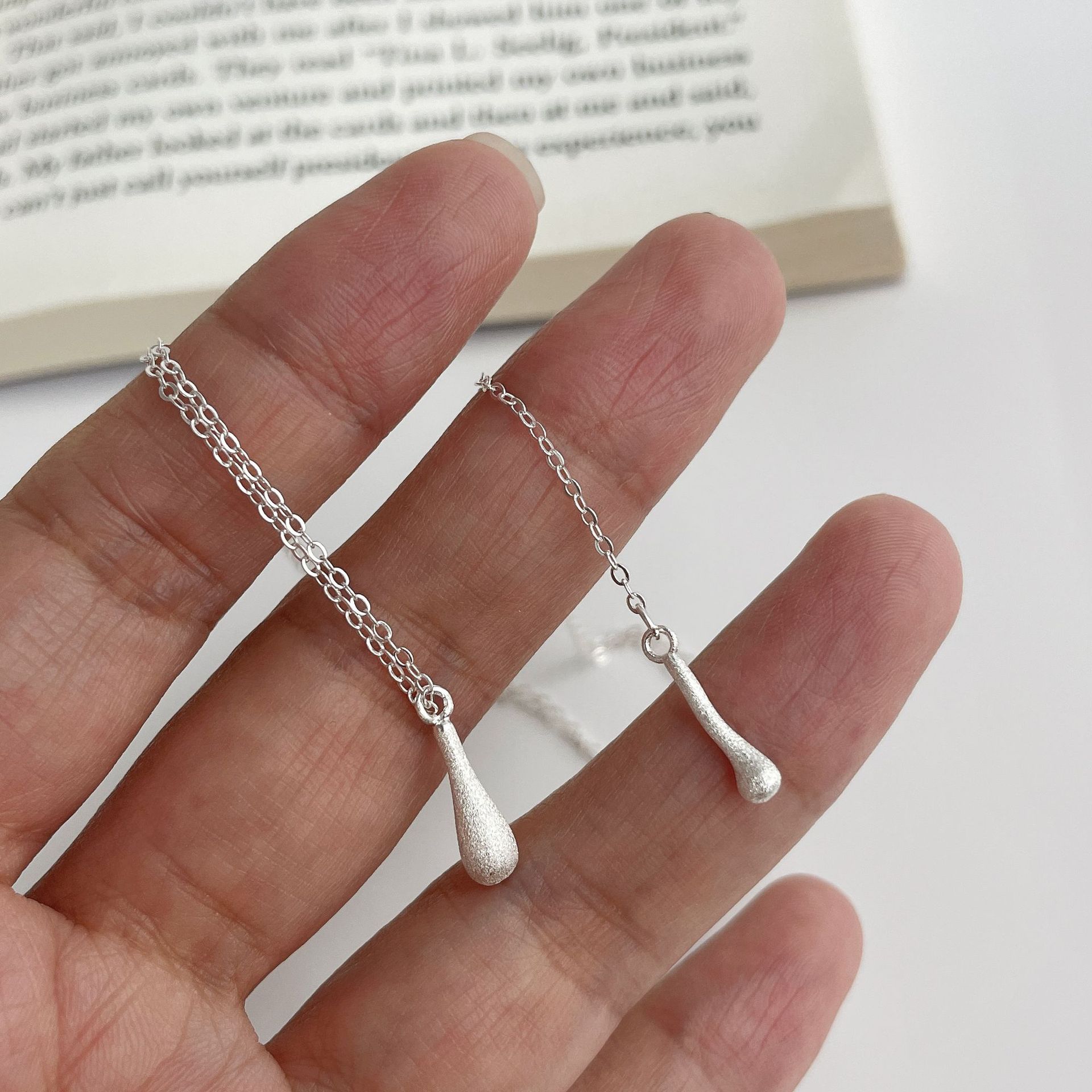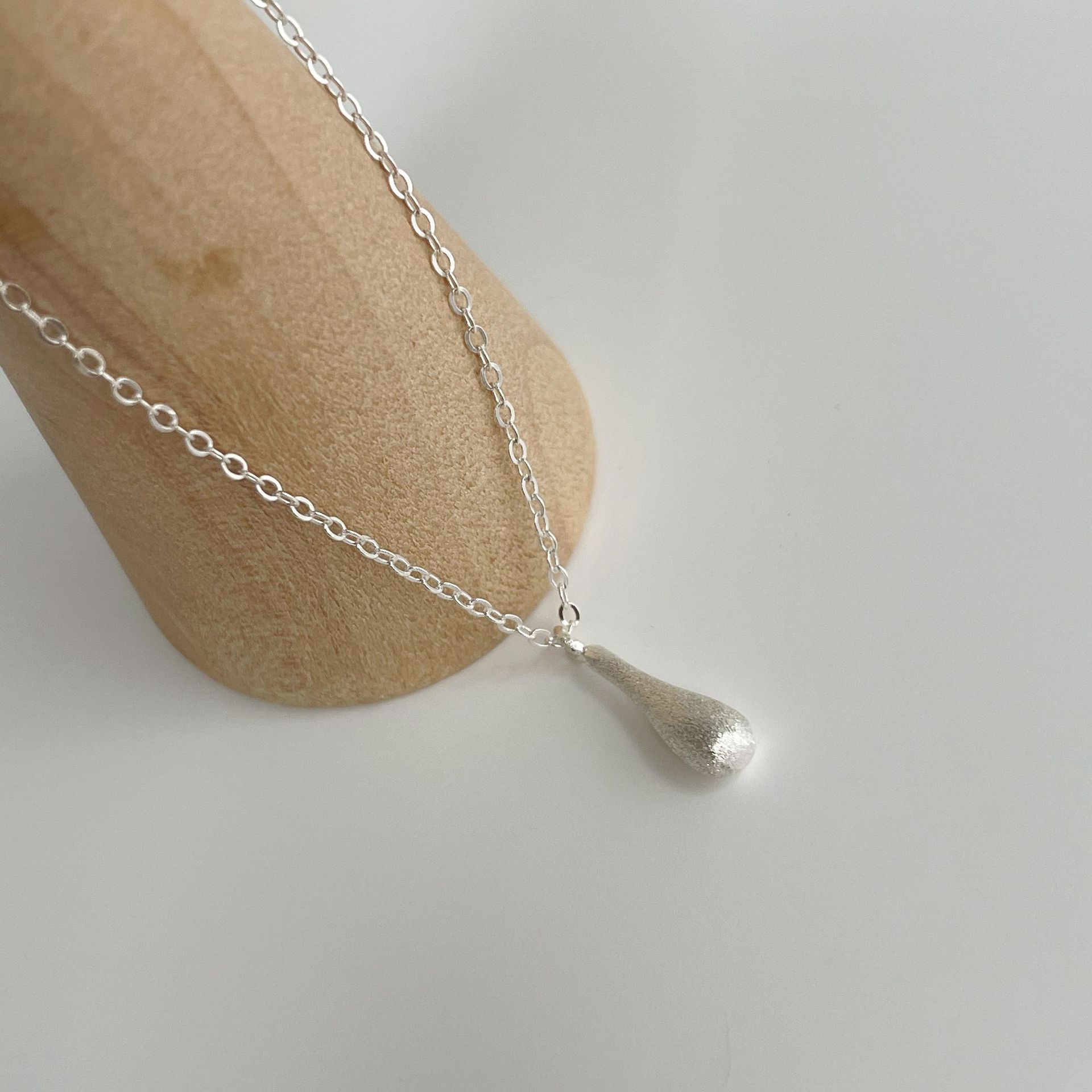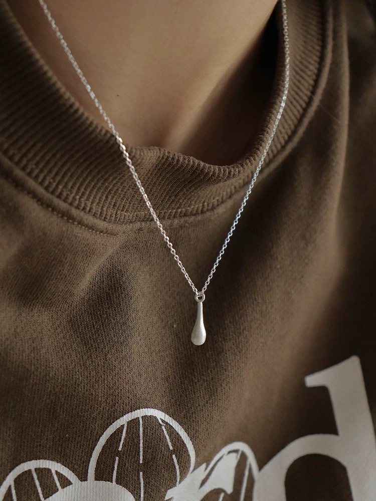C2廠 韓國國版磨砂拉絲水滴S925純銀項鍊「SN3367」24.11.W3 批發折扣@洽客服