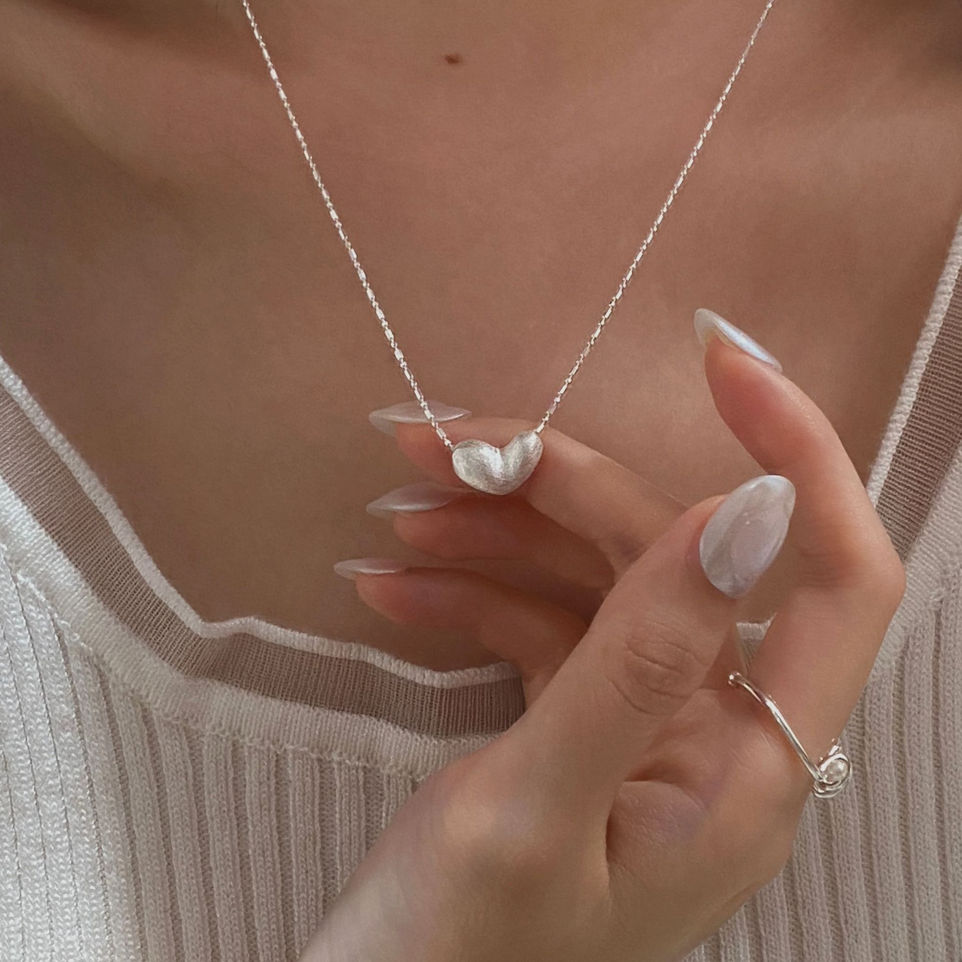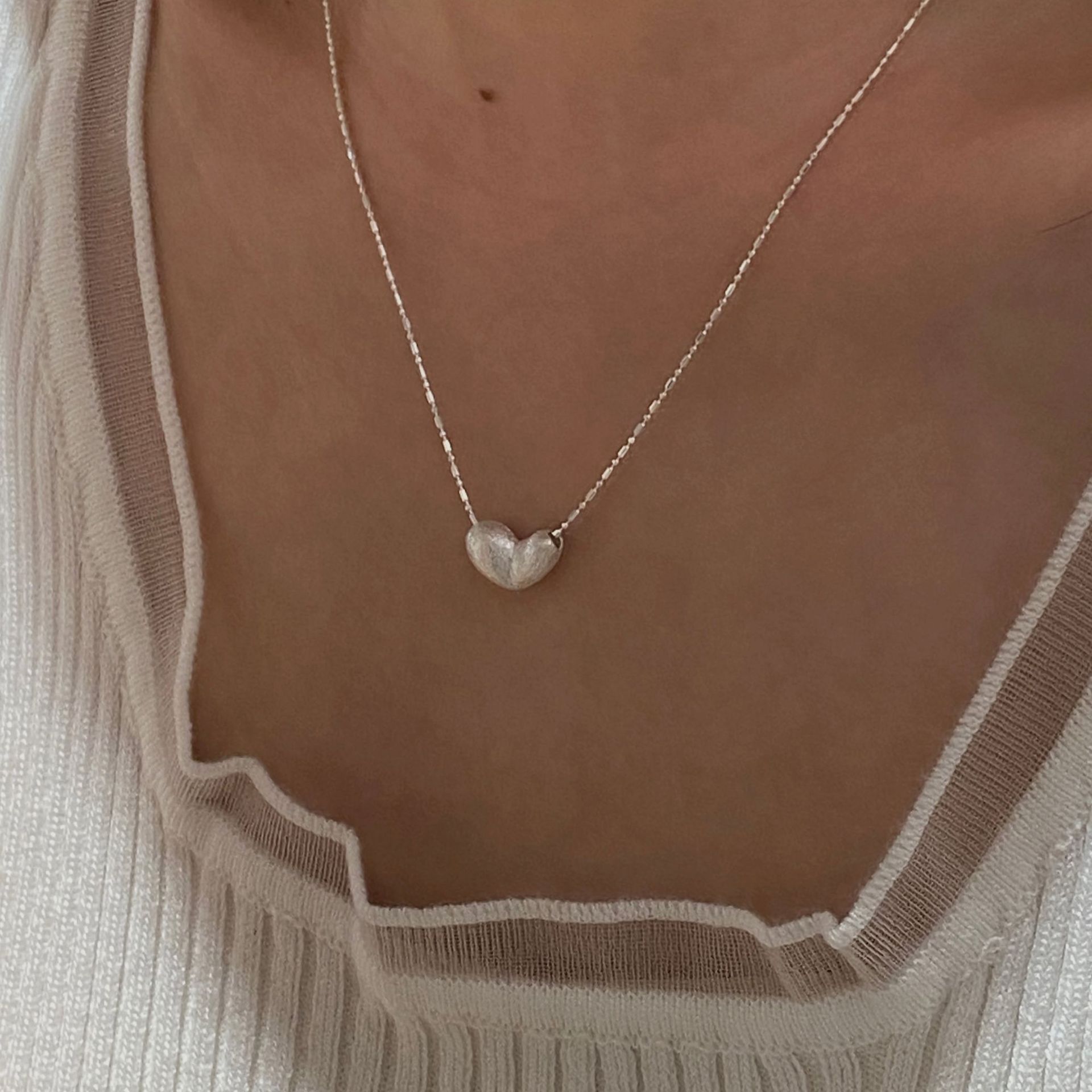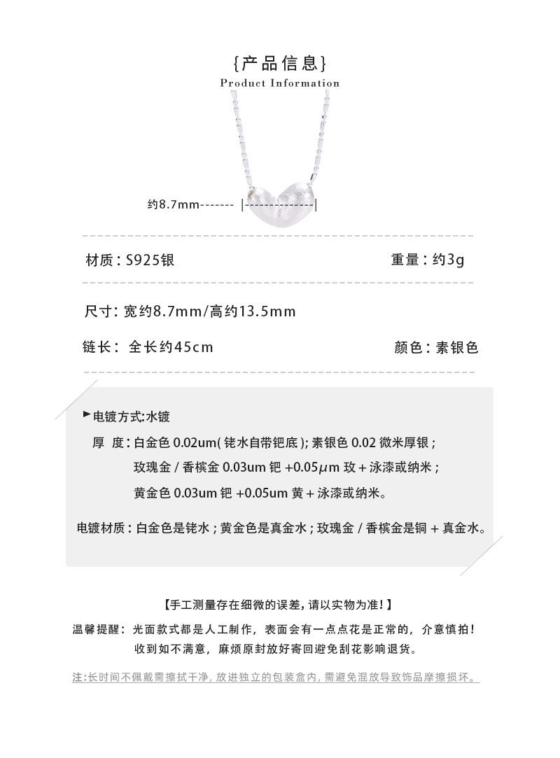 C2廠 韓國韓版拉絲愛心S925純銀項鍊 批發 折扣@洽客服 25.10.W5「SN3377」