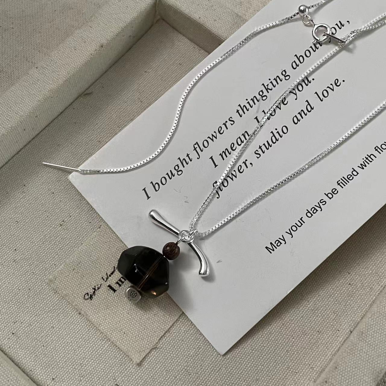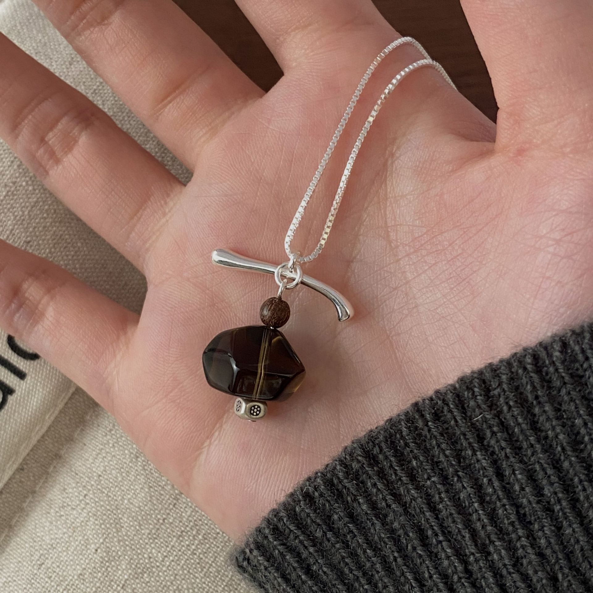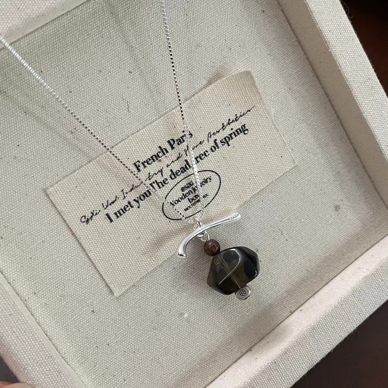 C2廠 韓國韓版幾何茶晶S925純銀項鍊 批發 折扣@洽客服 25.10.W2「SN3383」