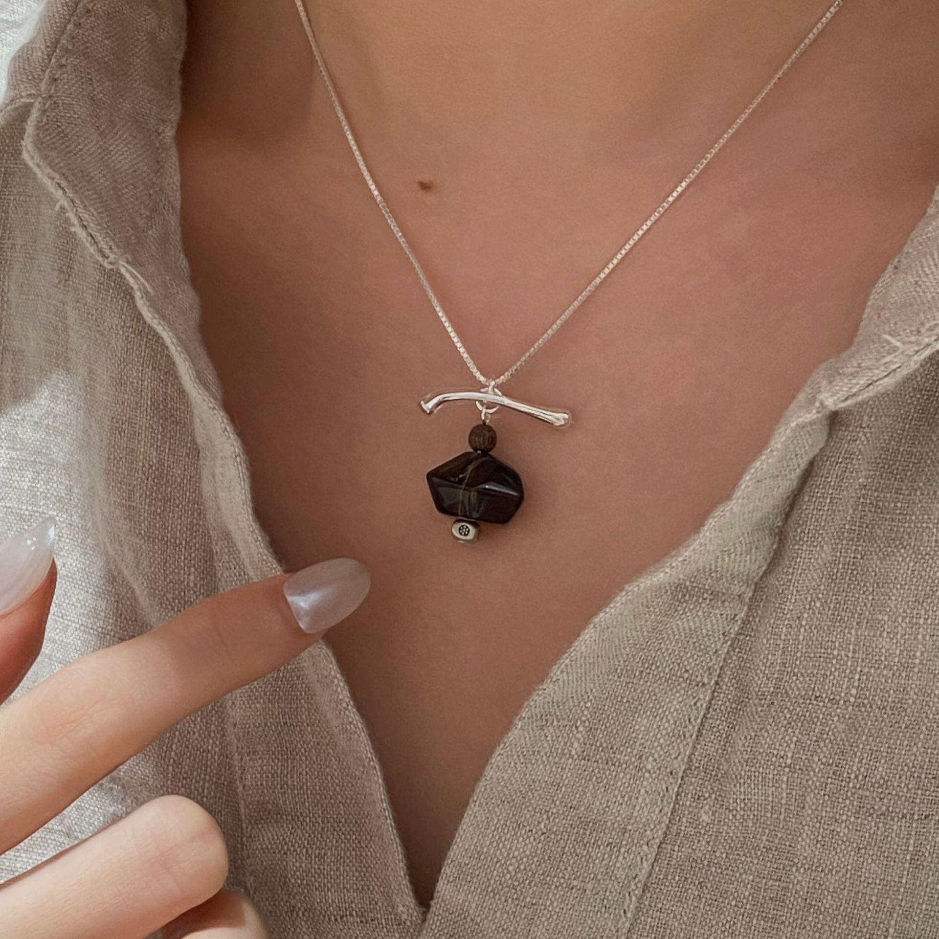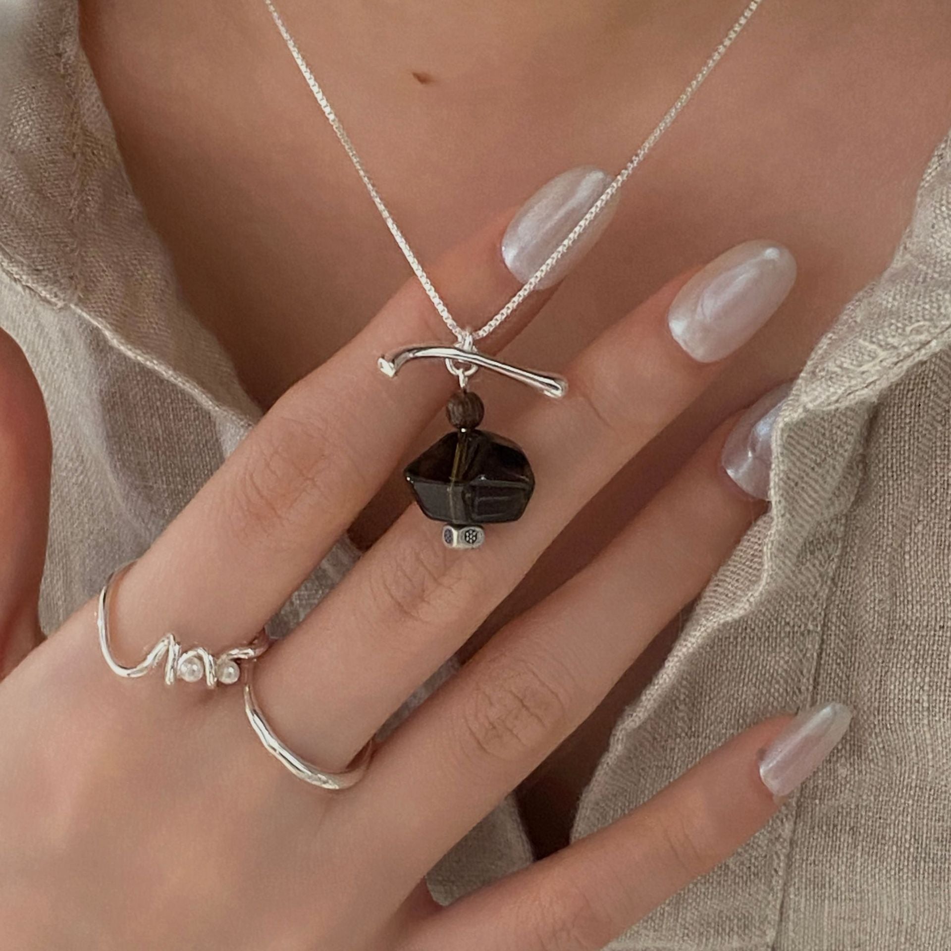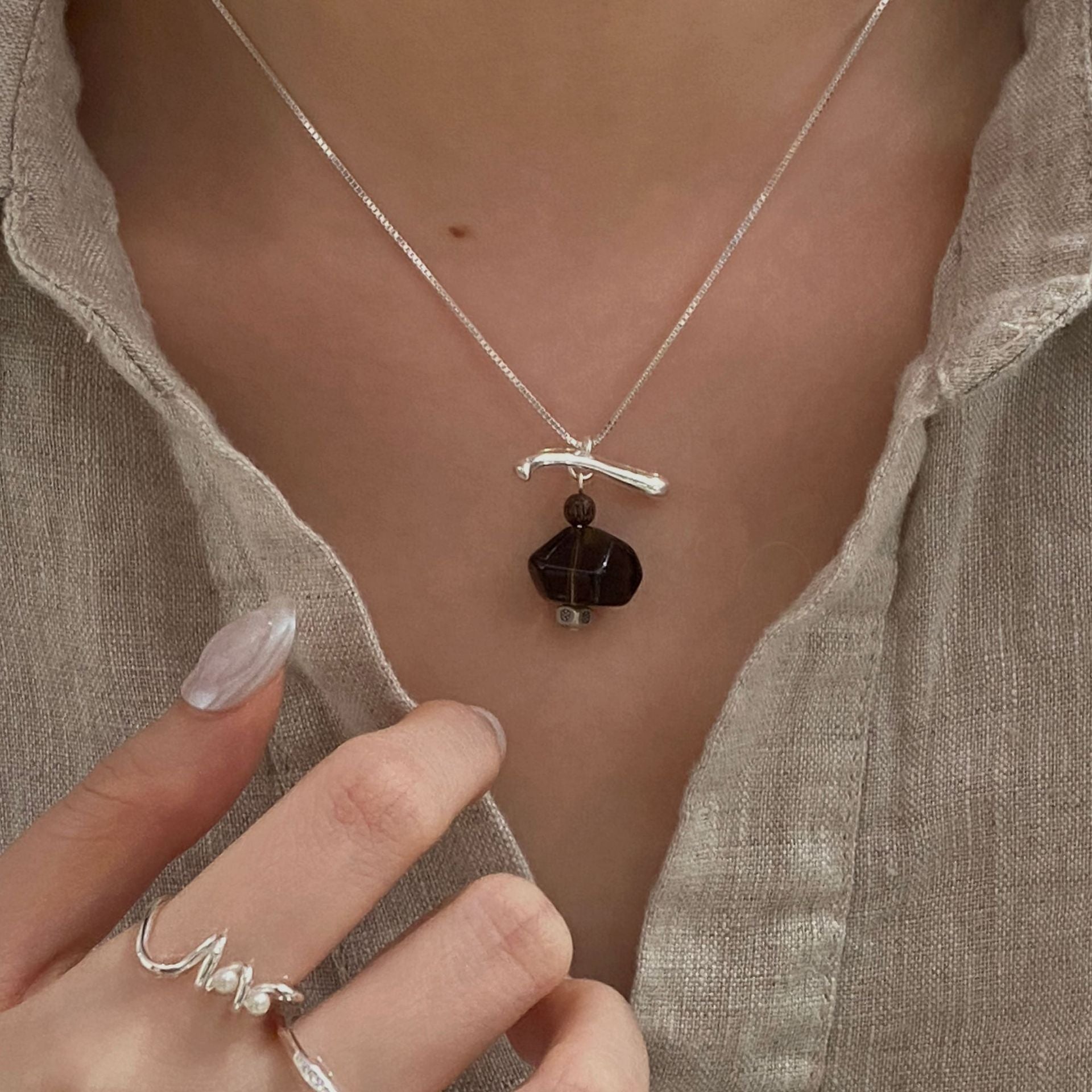 C2廠 韓國韓版幾何茶晶S925純銀項鍊 批發 折扣@洽客服 25.10.W2「SN3383」
