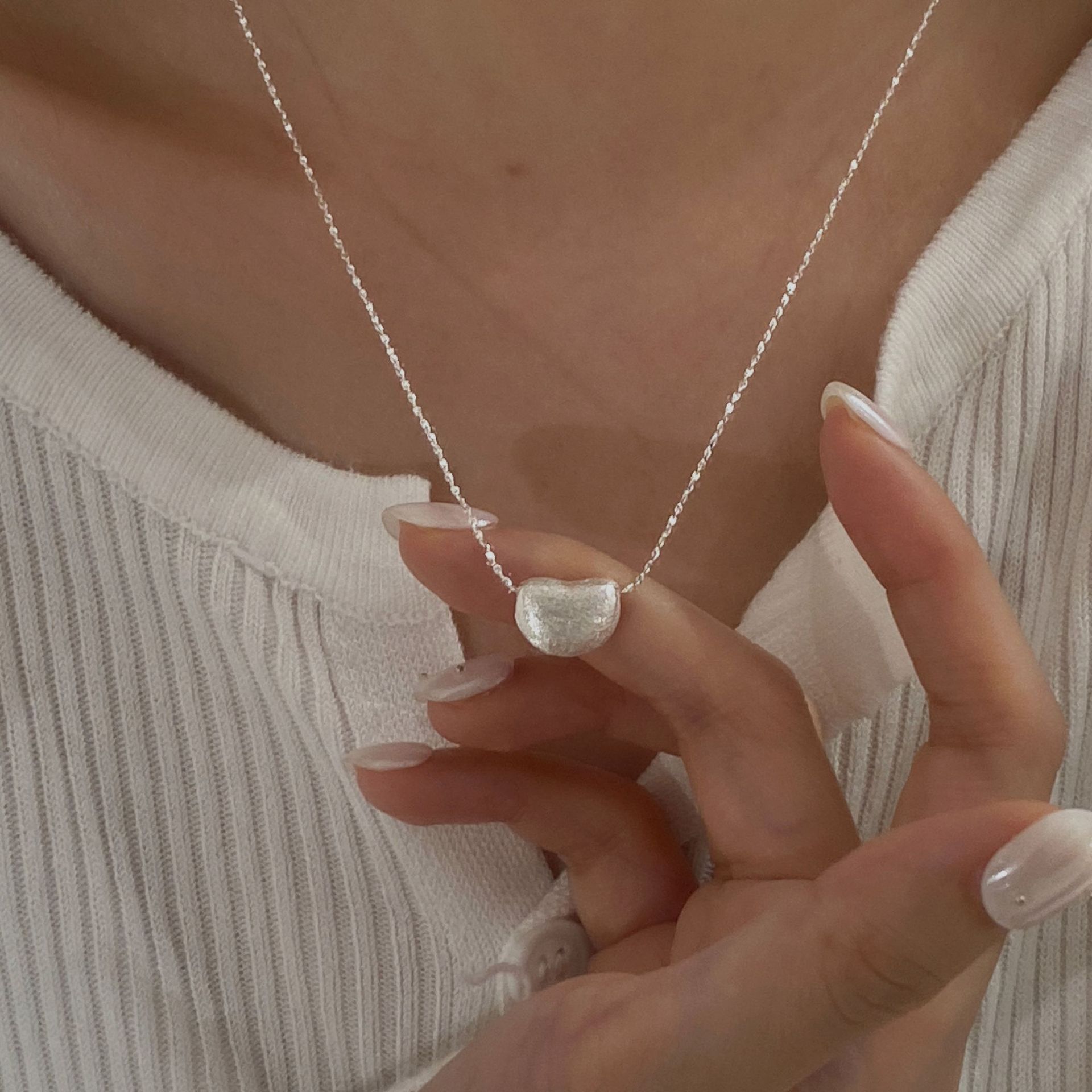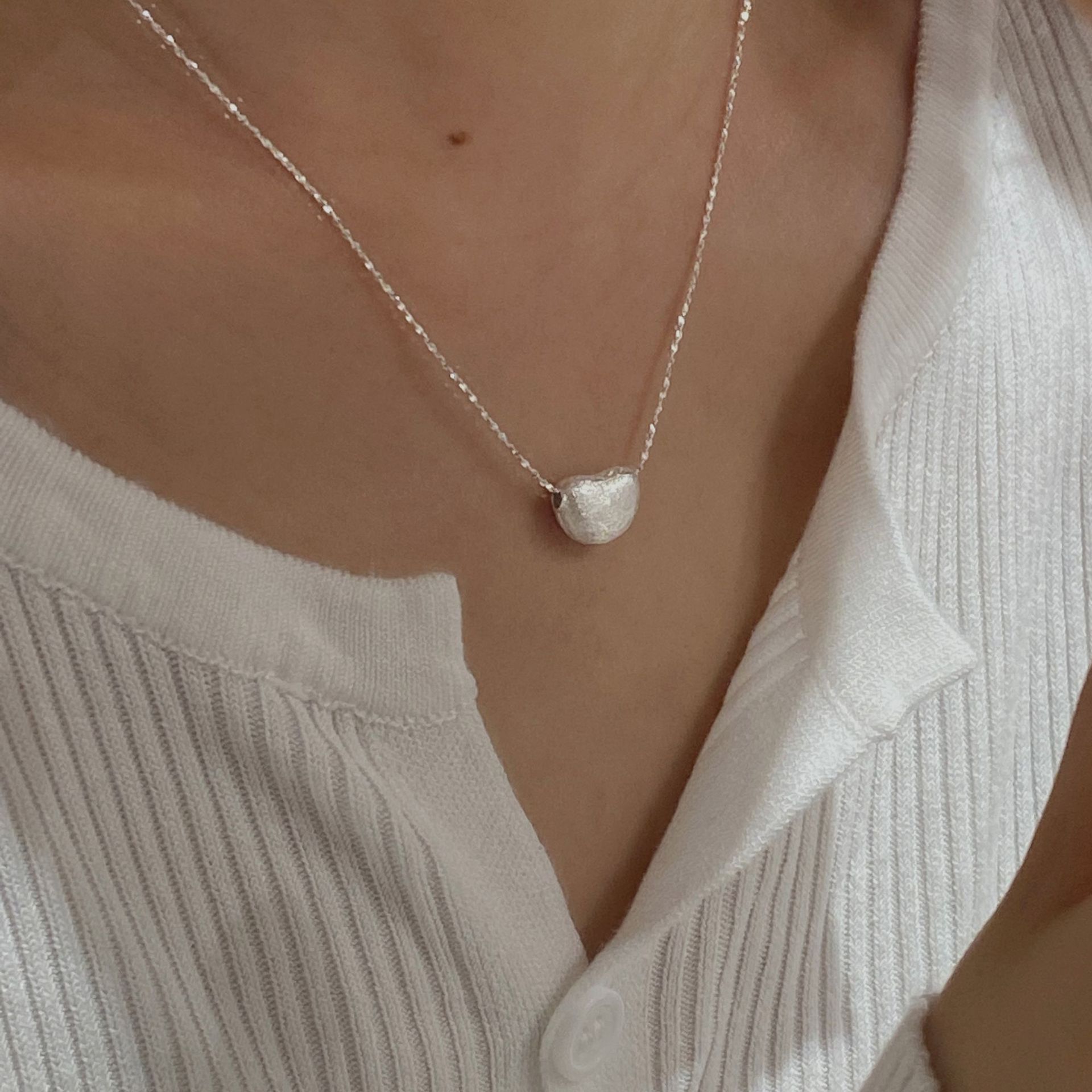 C2廠 韓國韓版拉絲隨形愛心S925純銀項鍊 批發 折扣@洽客服 25.11.W3「SN3416」